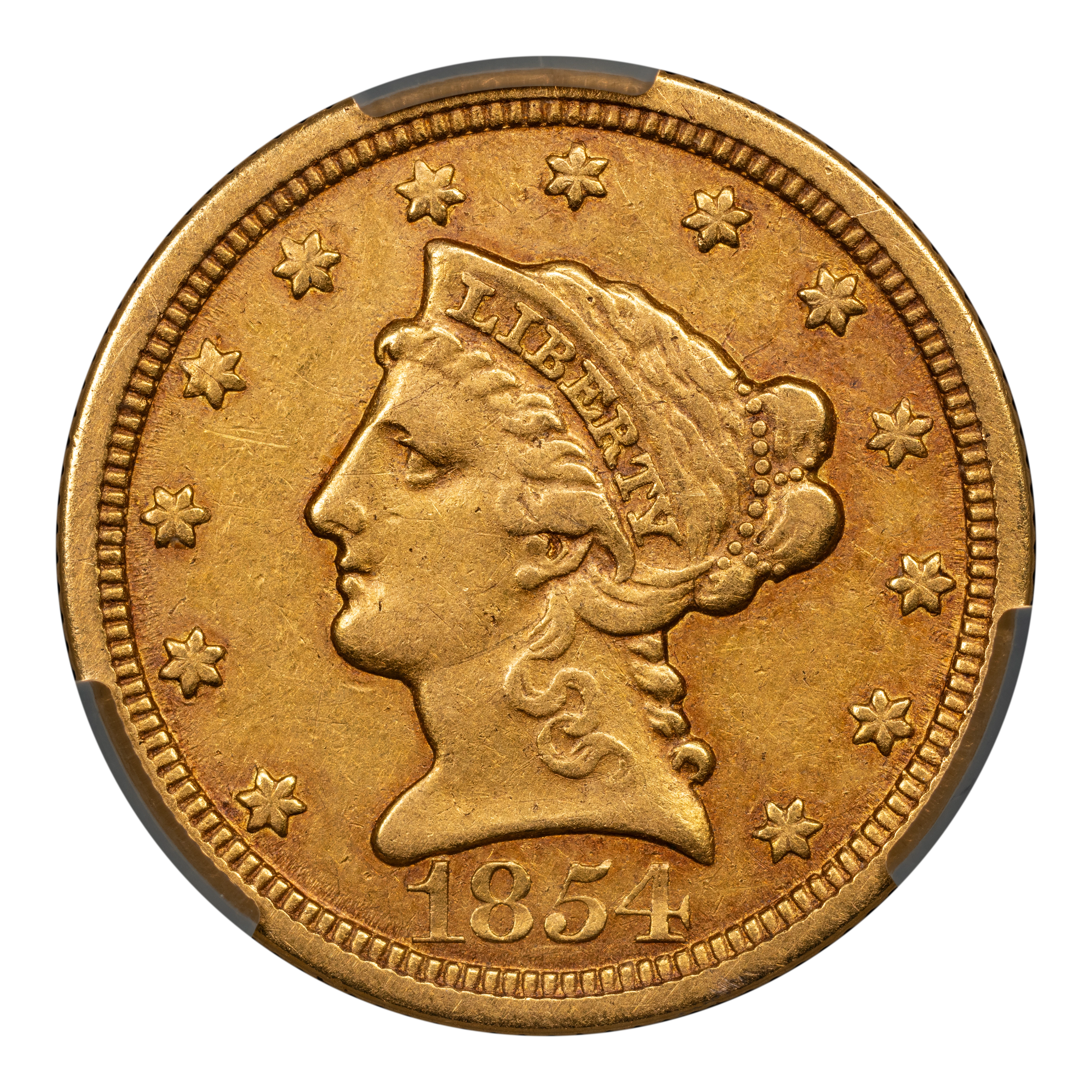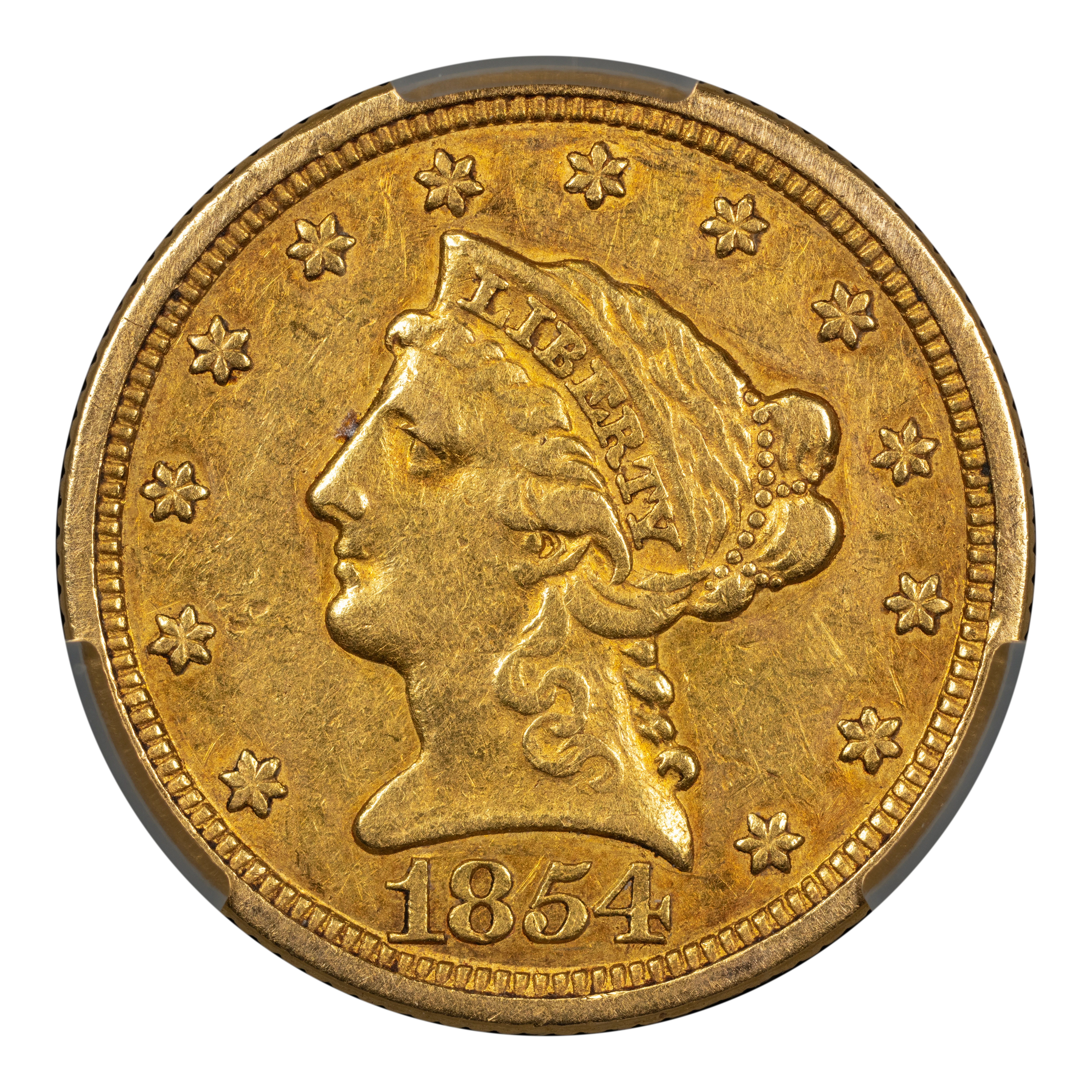 1854-O $2 1/2 NGC AU55