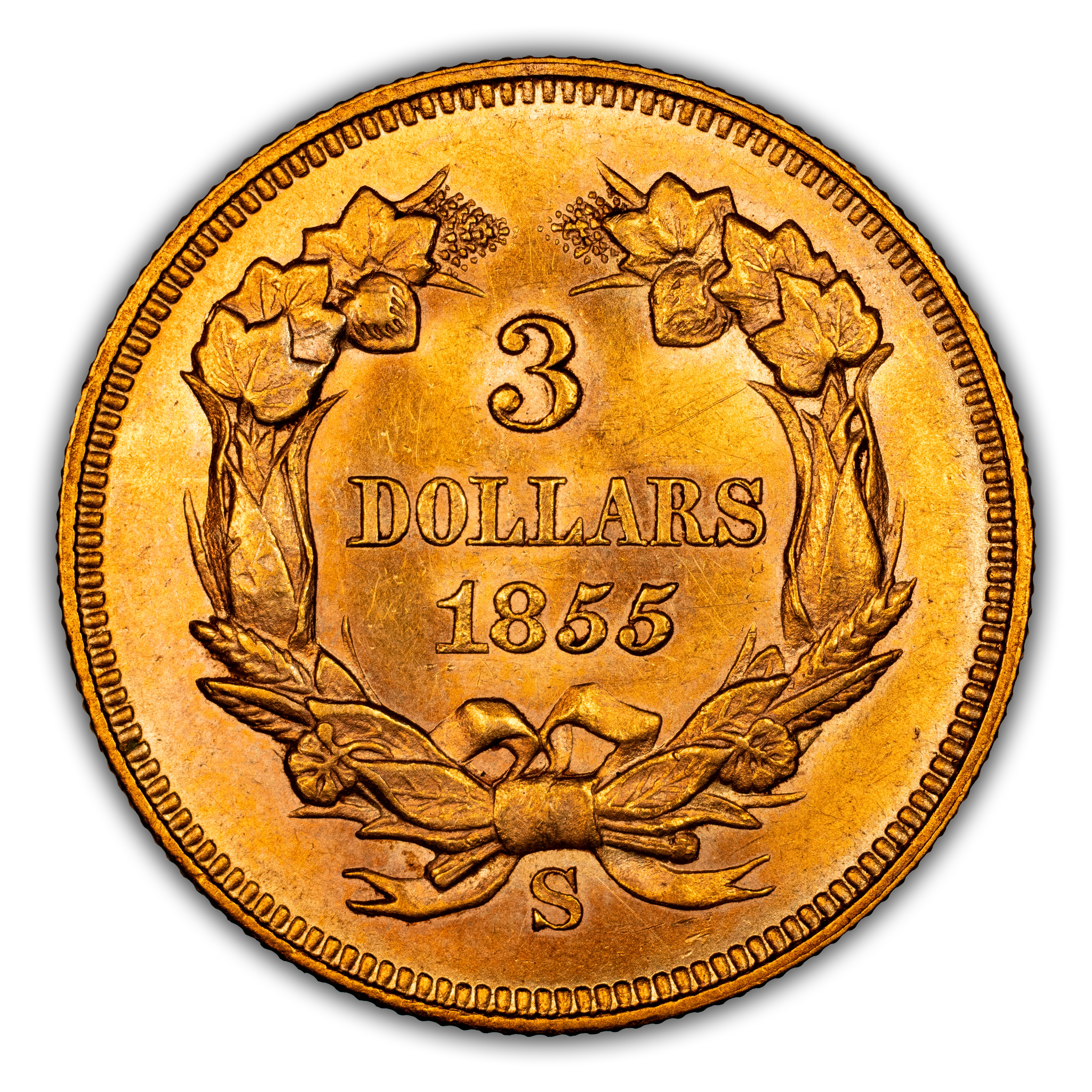 1855-S $3 PCGS/CAC AU53