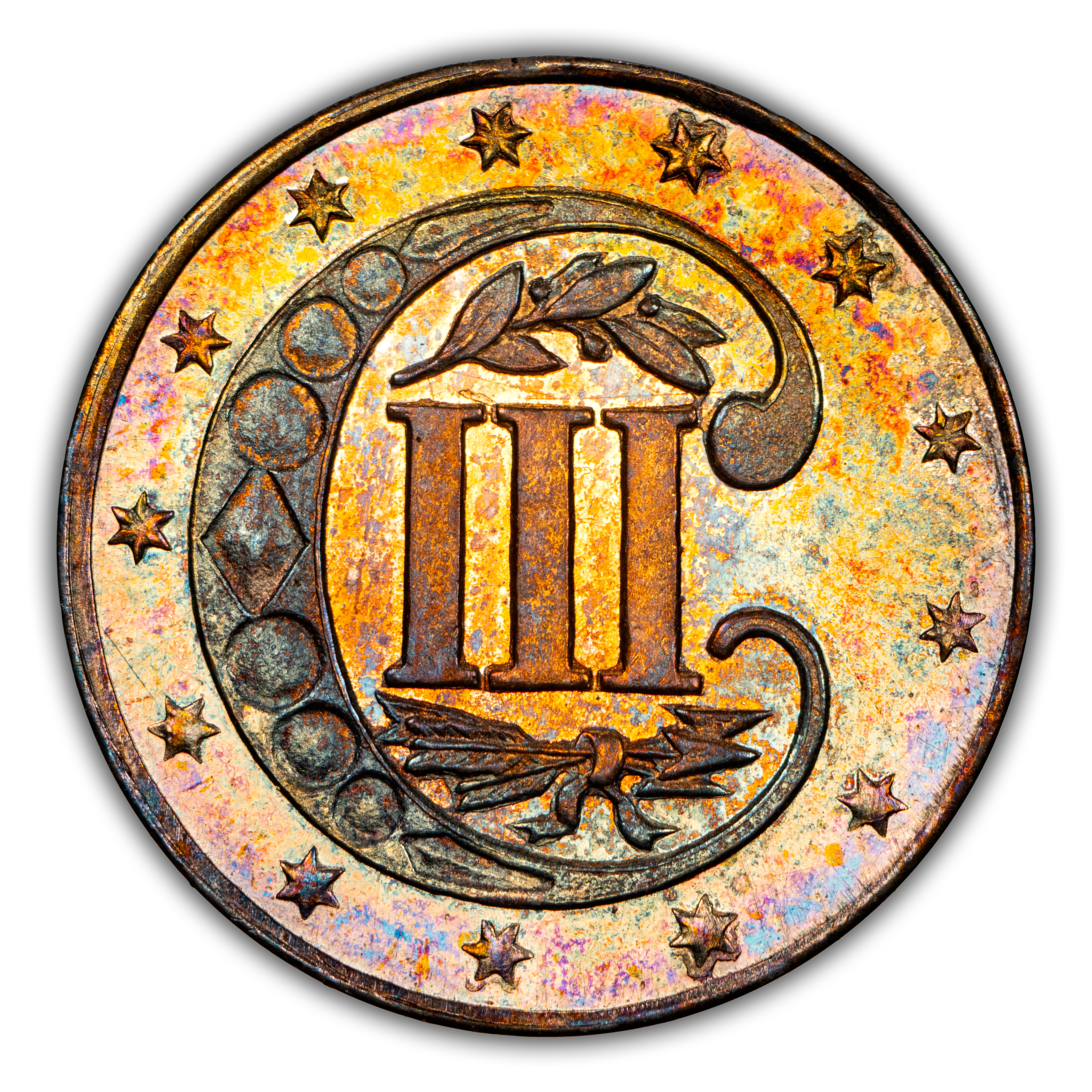 The 1856 Proof Three Cent Silver is a very desirable rarity in the series with a mintage of merely 60 coins. Rare from MS60 through MS64. MS65 is very rare with higher end gems being extreme rarities. Cameo pieces are extremely difficult to locate as only a handful exist. Look for attractive toners as there are many in this series.