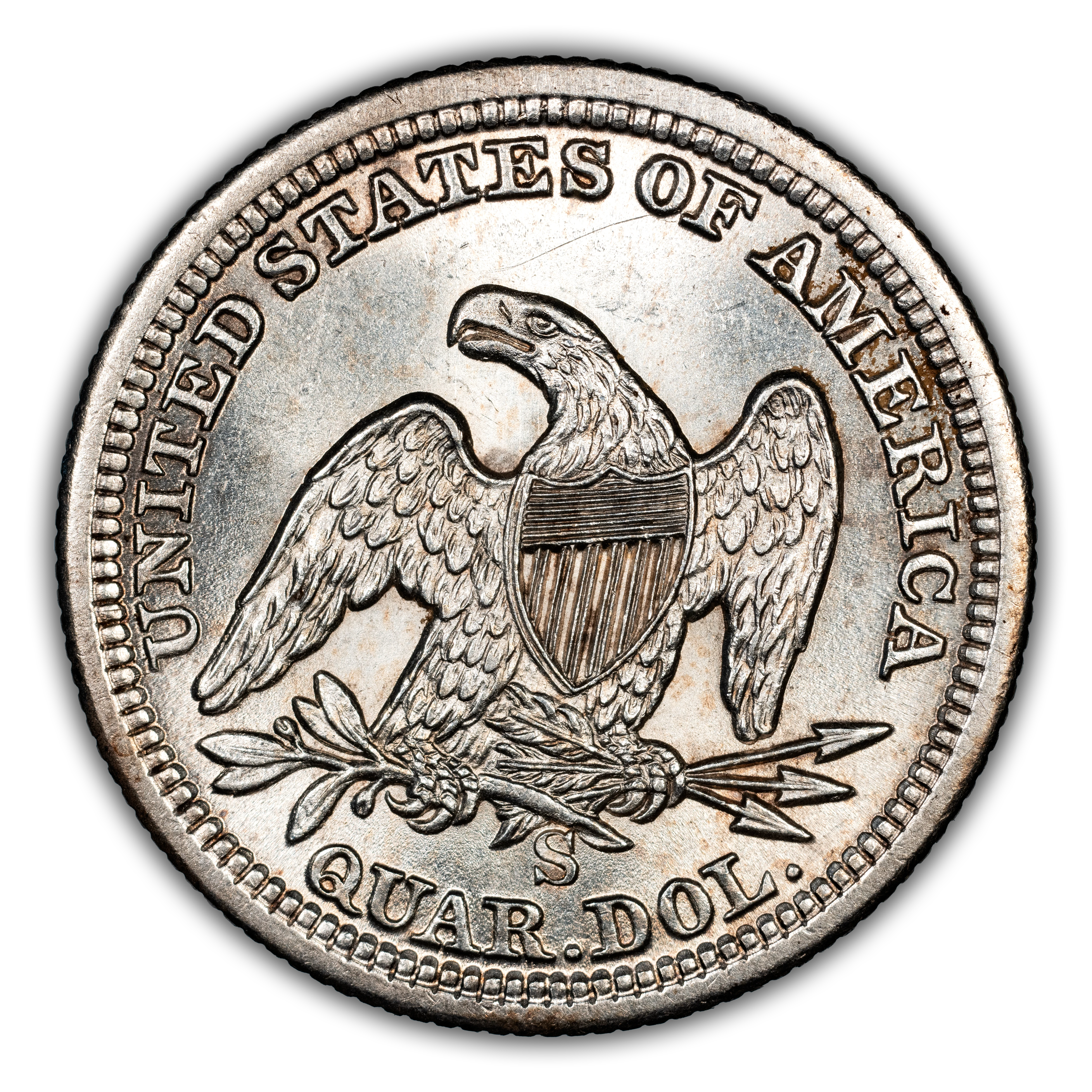 1856-S 25c PCGS/CAC MS63 - Low Mintage Rarity - Finest at CAC