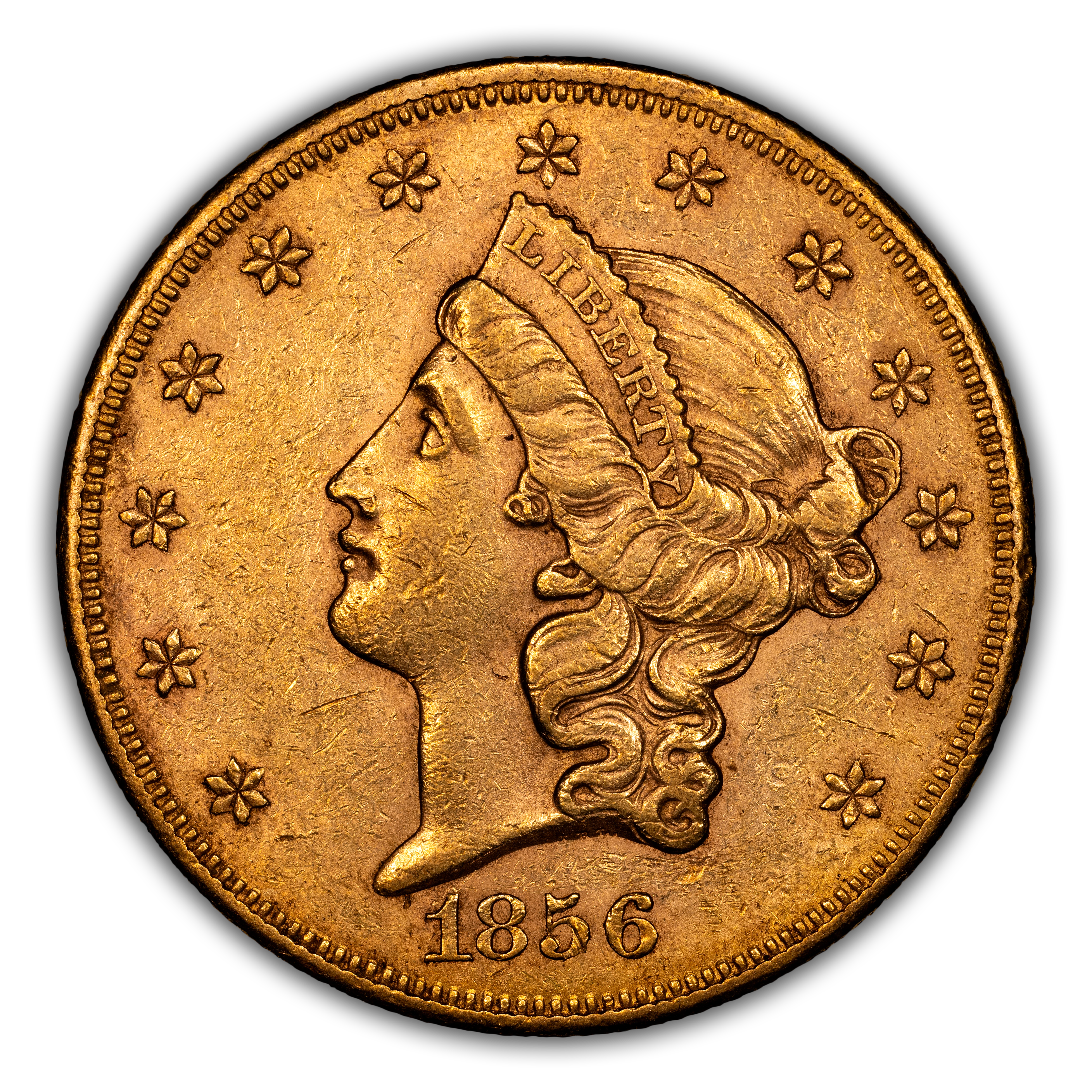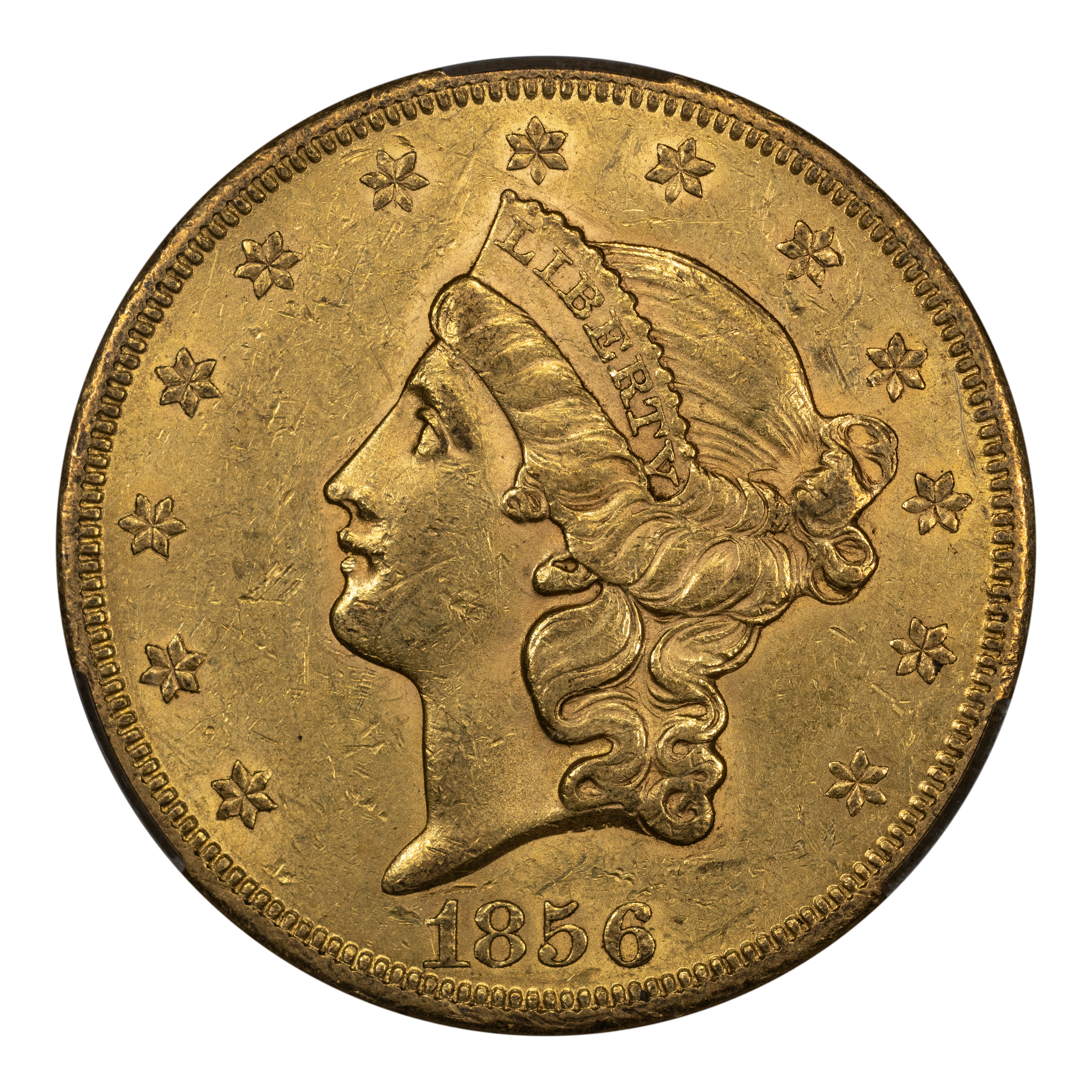 1856-S $20 MS64 PCGS. CAC. Variety 17-N....