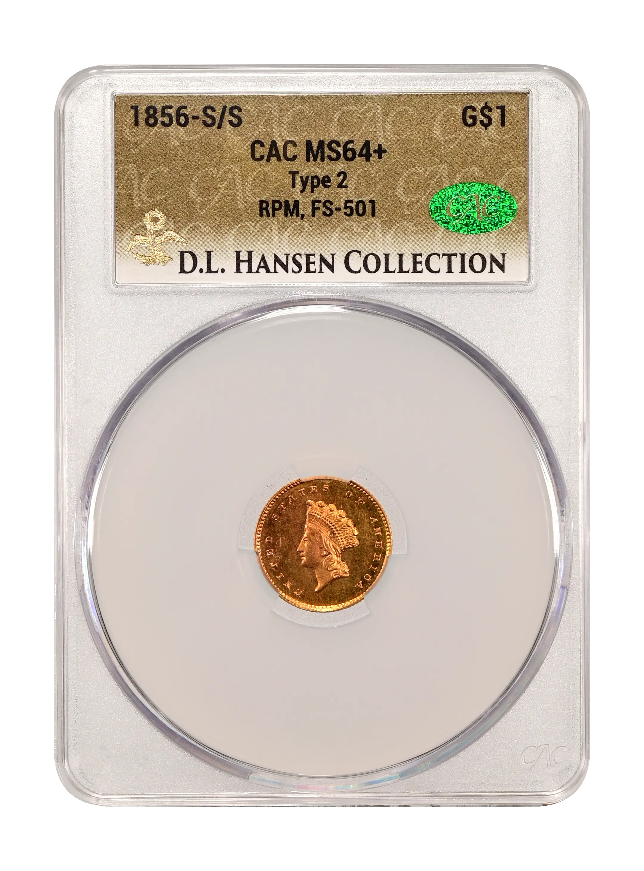 1856-S/S G$1 Type Two, FS-501, MS63 PCGS....