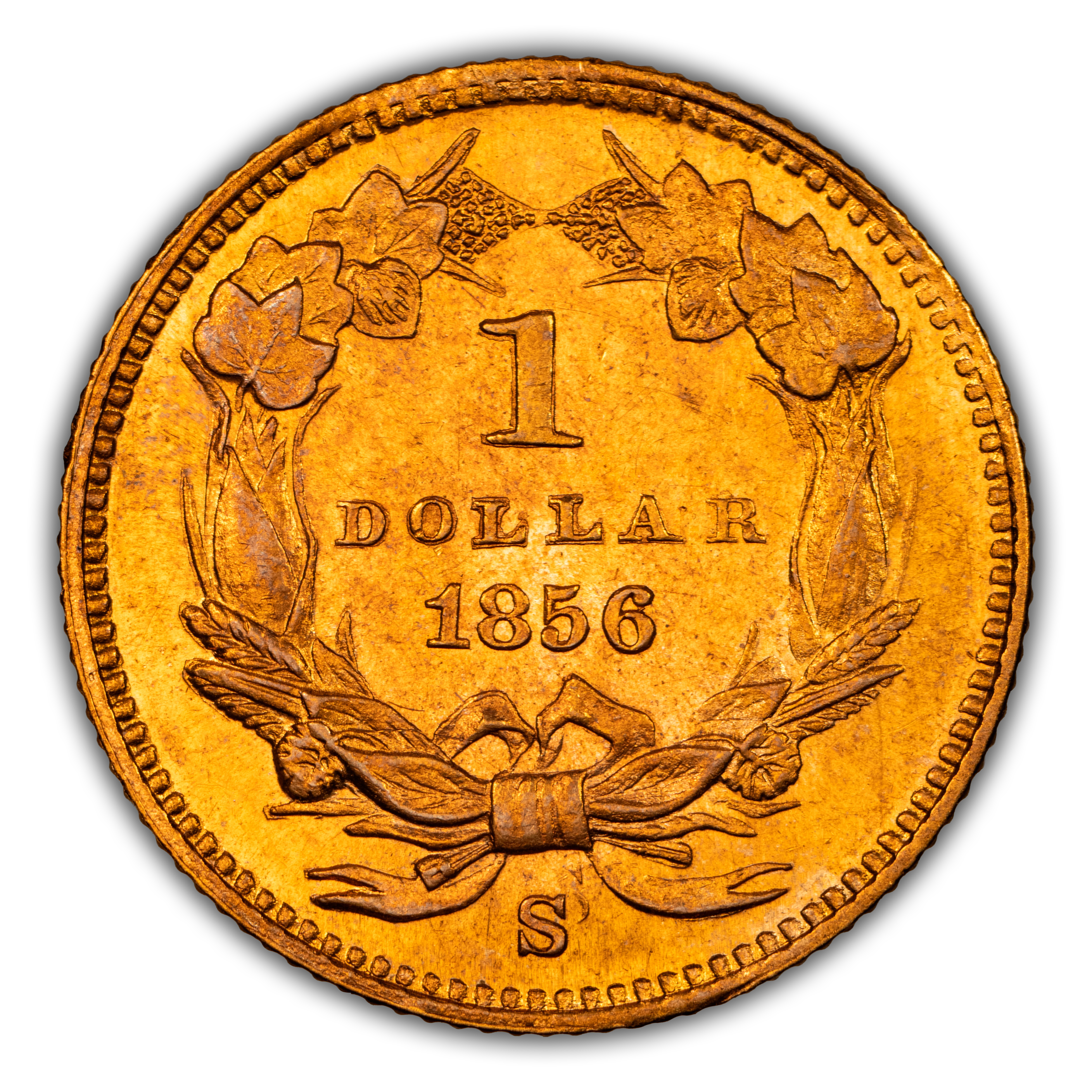 - 1856-S/S G$1 Type 2, Repunched Mintmark, FS-501 MS