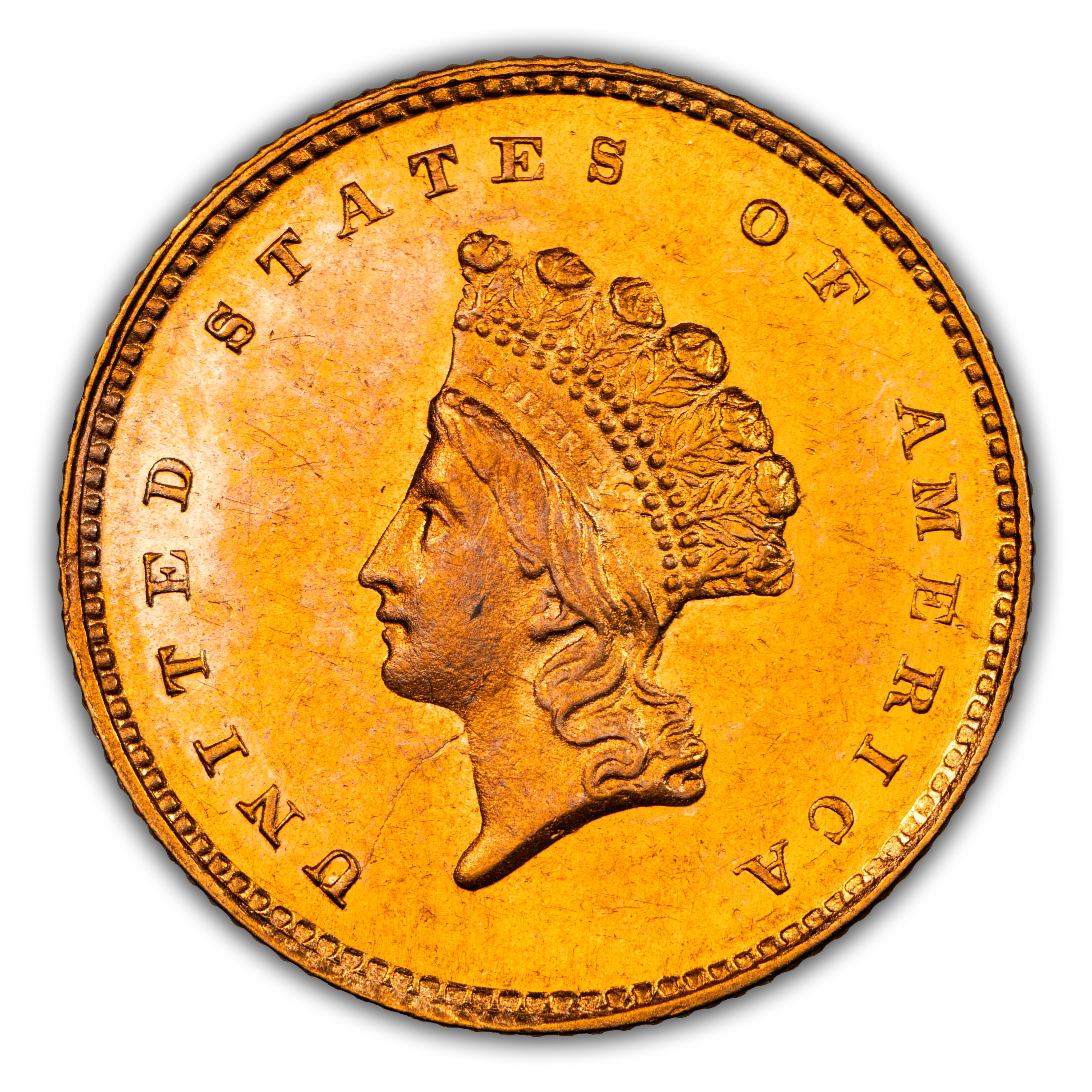 Obverse: Indian head portrait with crown centered in the design surrounded by UNITED STATES OF AMERICA around the periphery.