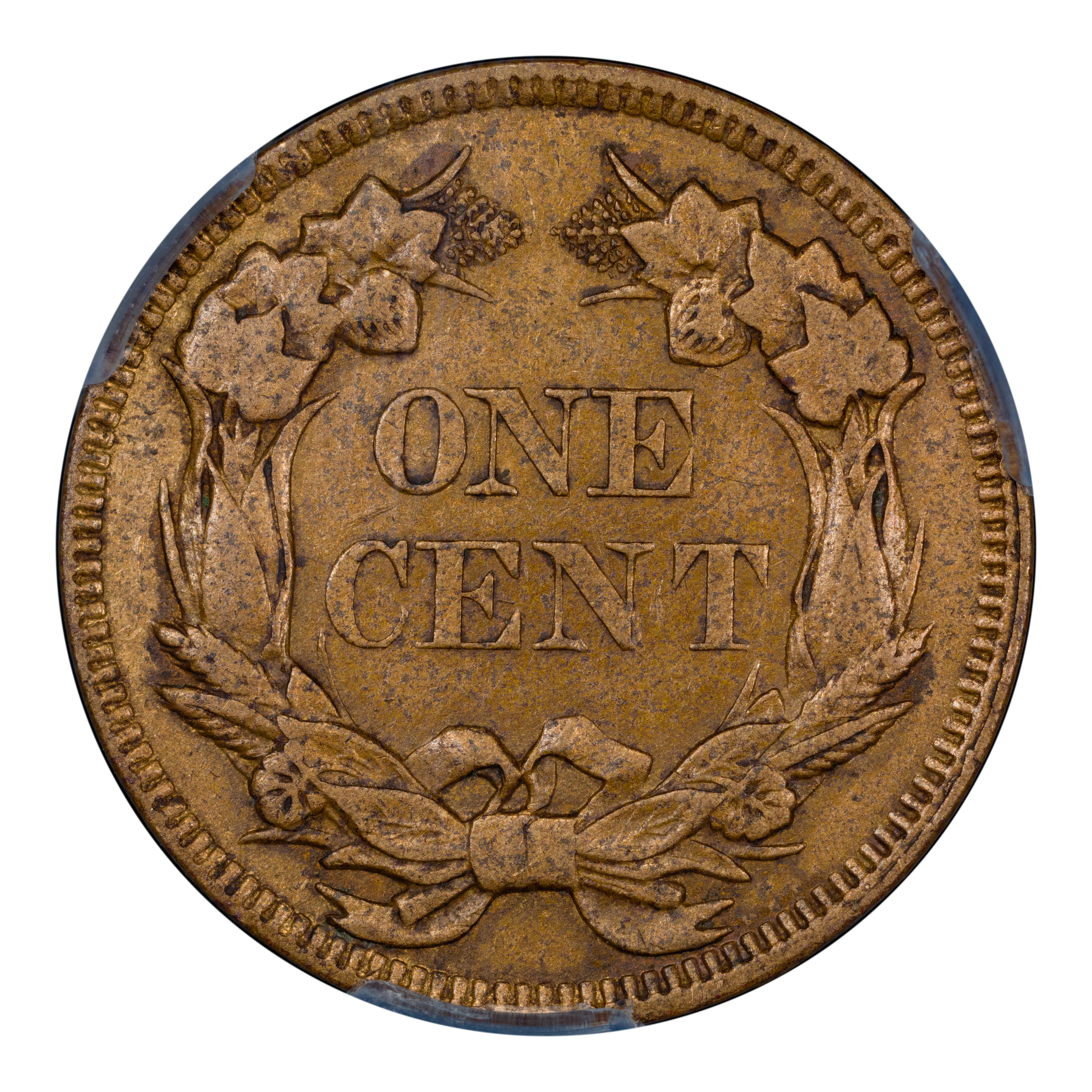 Reverse: The reverse bears the denomination of ONE CENT in the center surrounded by a wreath bearing a ribbon tied in at the bottom center.