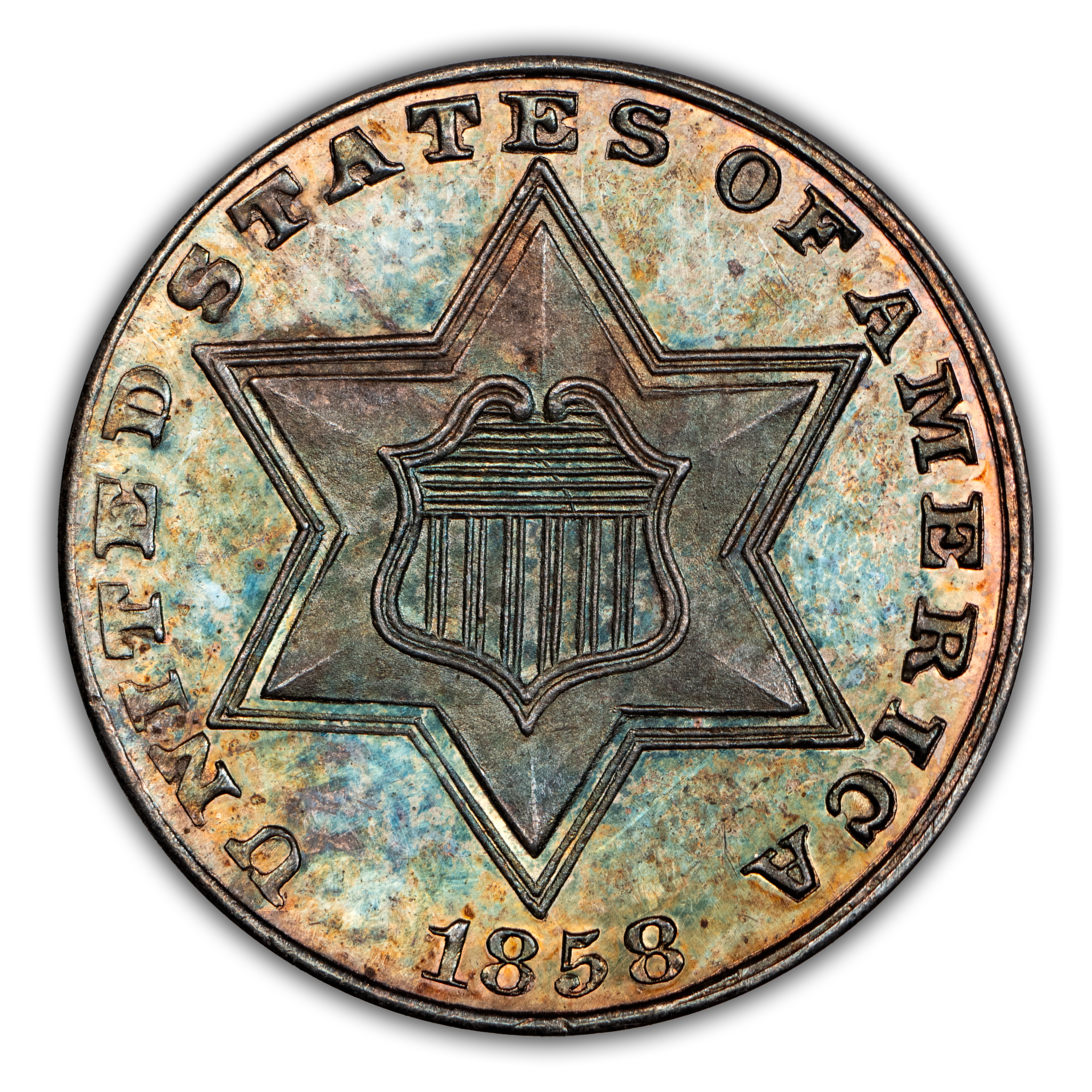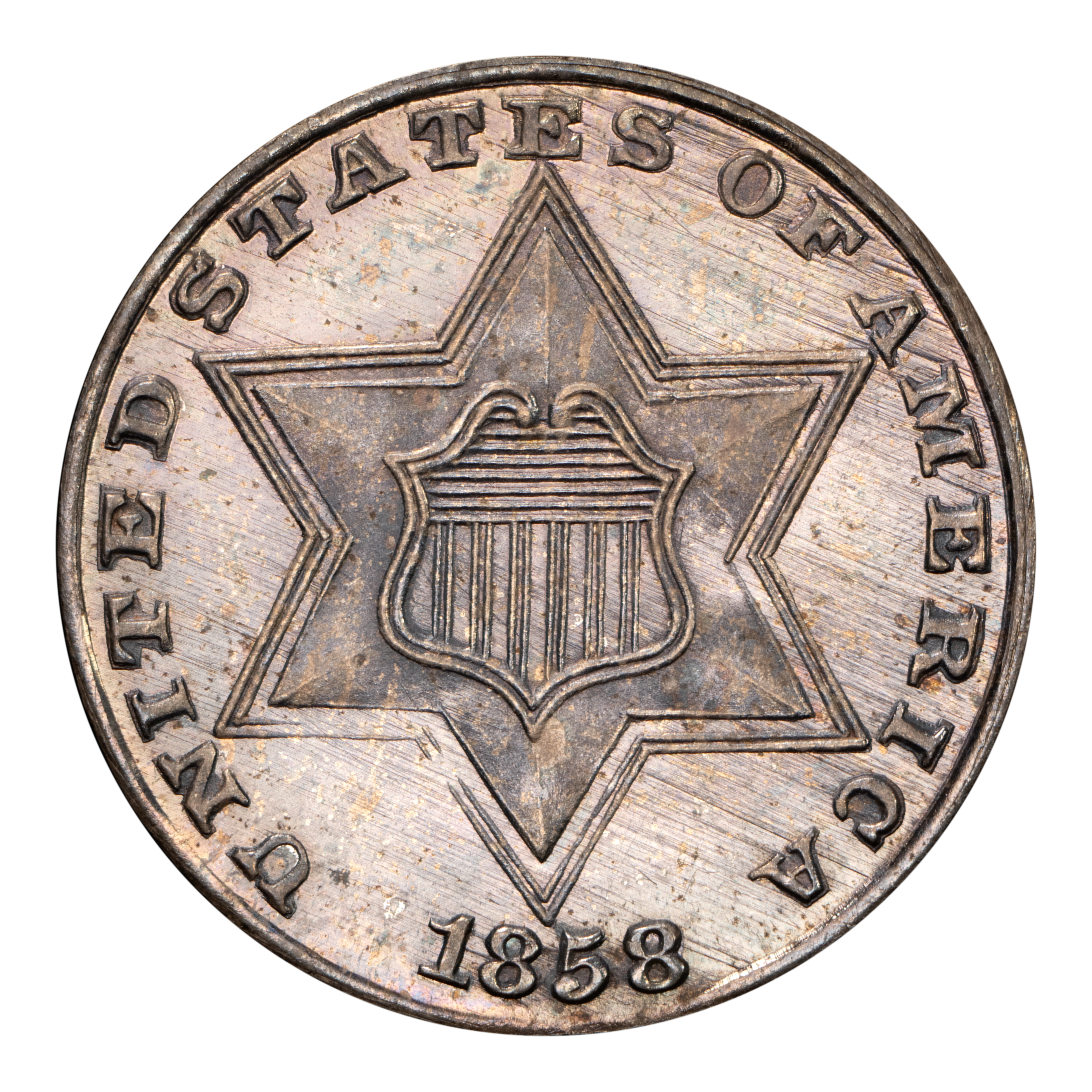 1858 3cS NGC Proof 65 * Color *