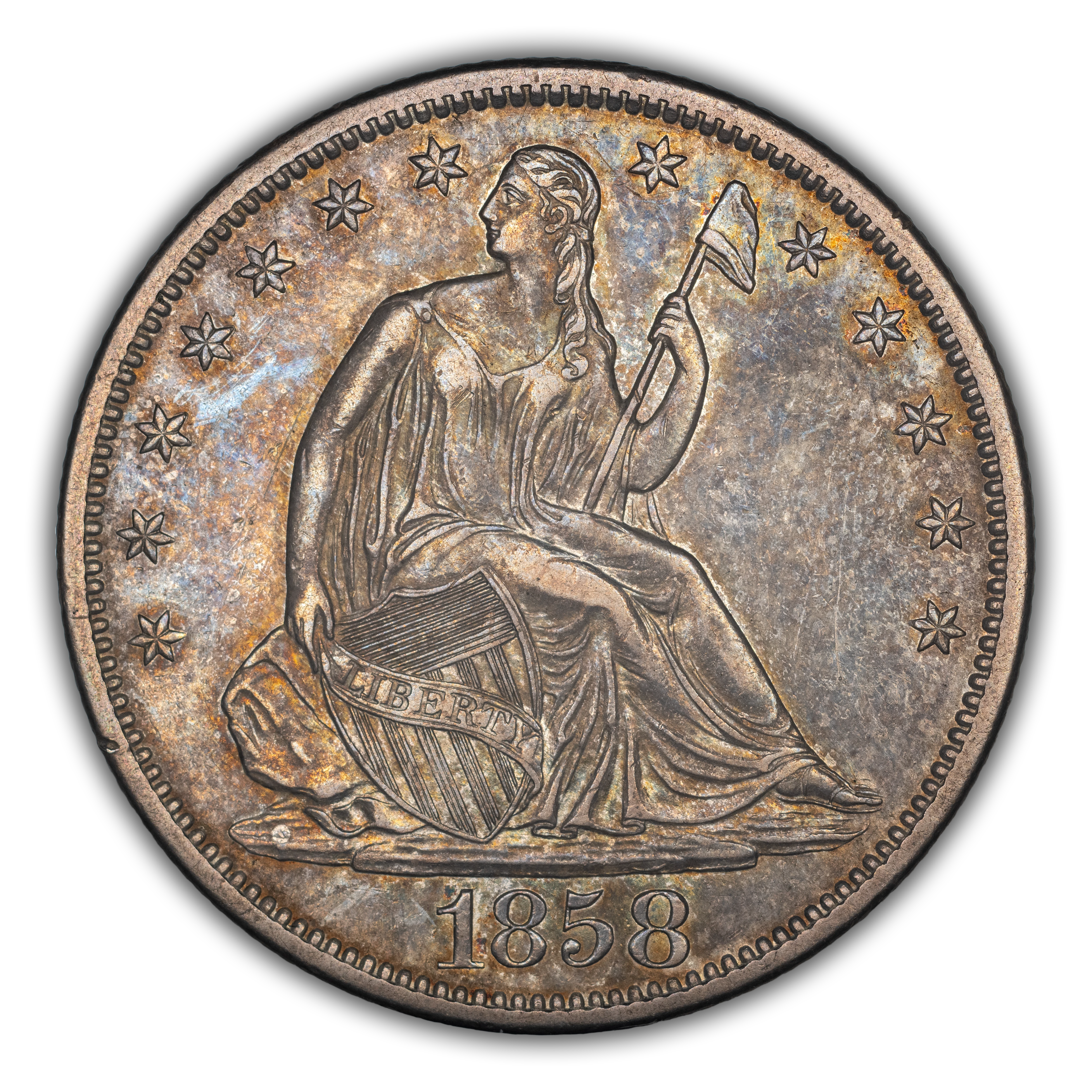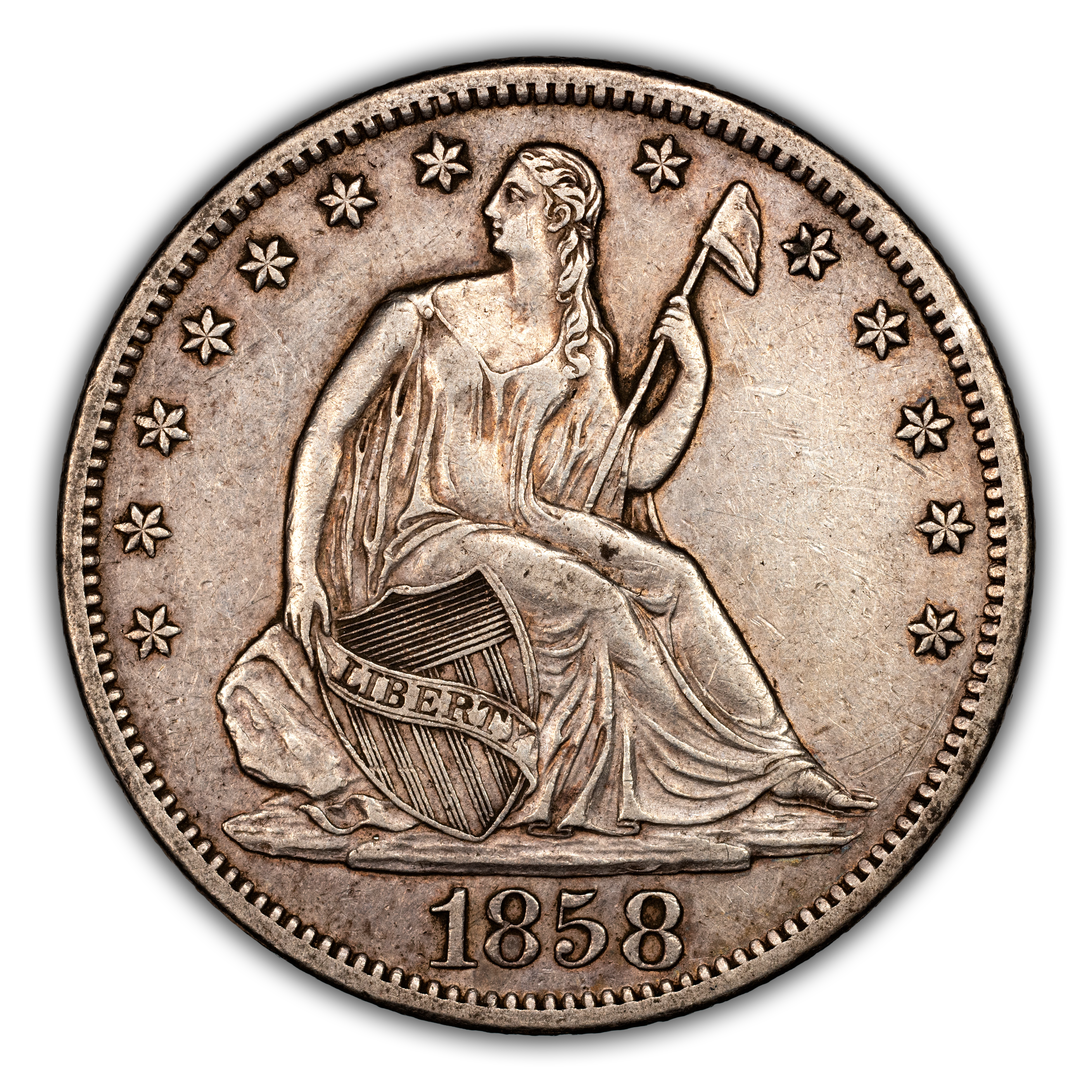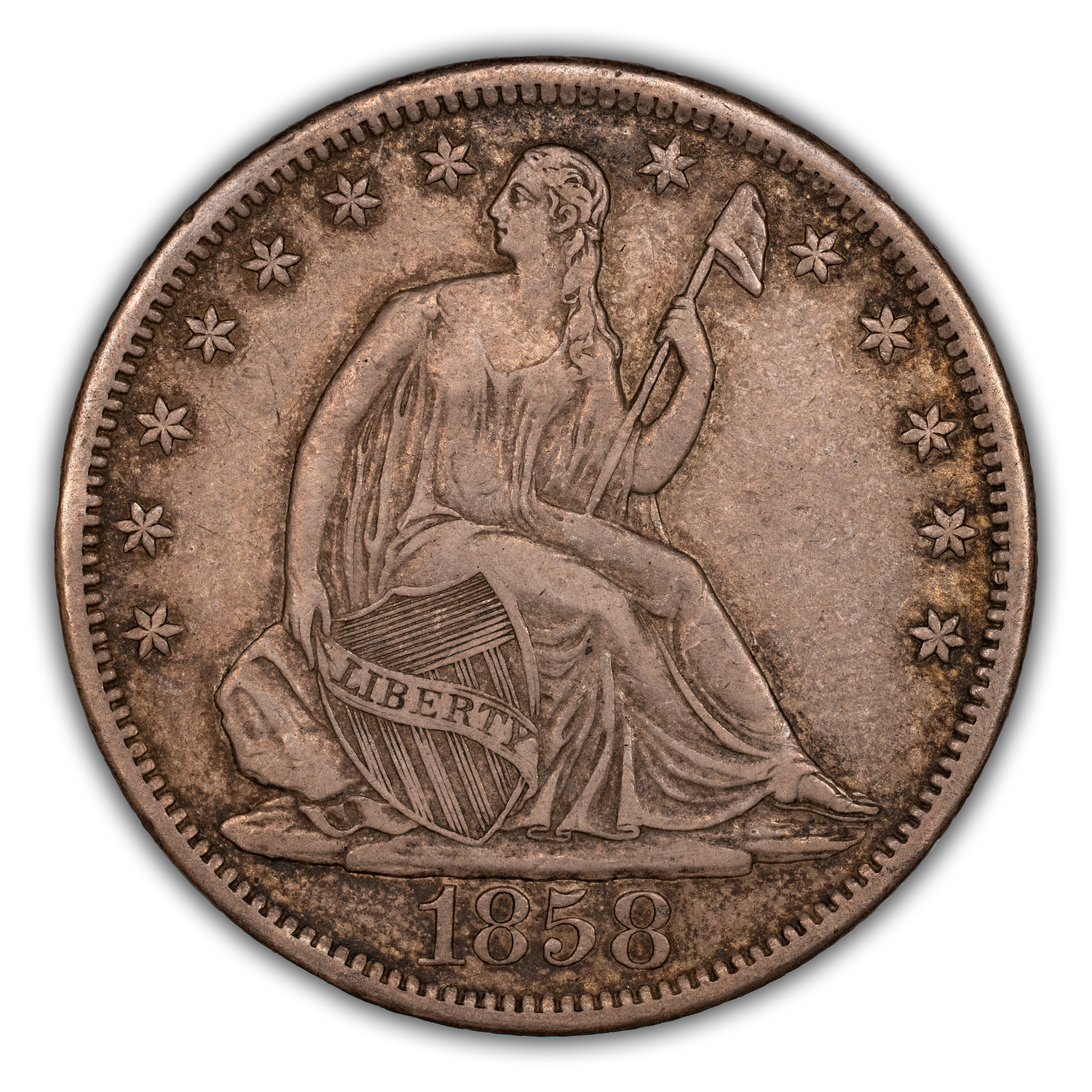 1858-S 50c DGS AU53 (Lightly Cleaned)