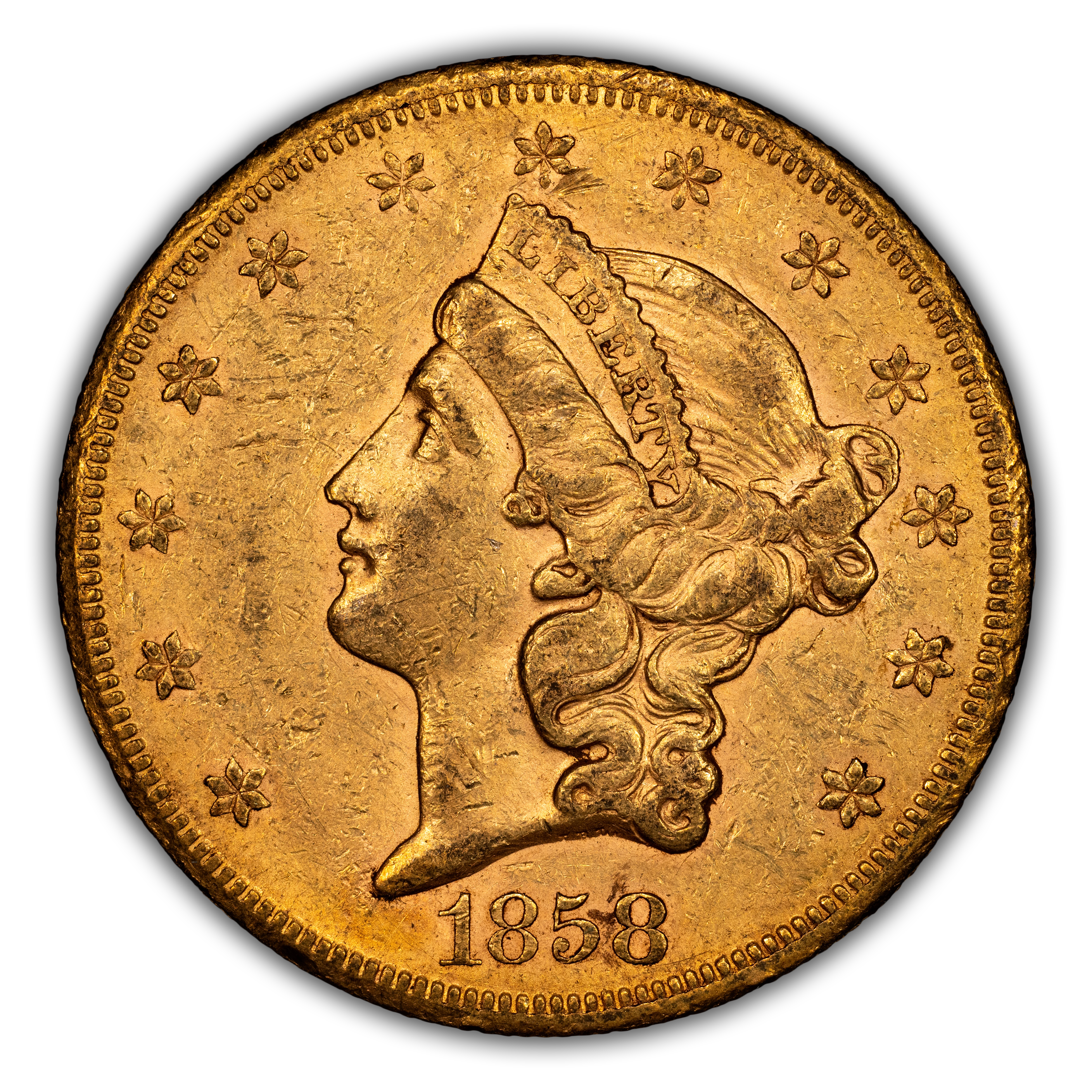 1858-S $20 PCGS AU53 - Scarce Early Double Eagle