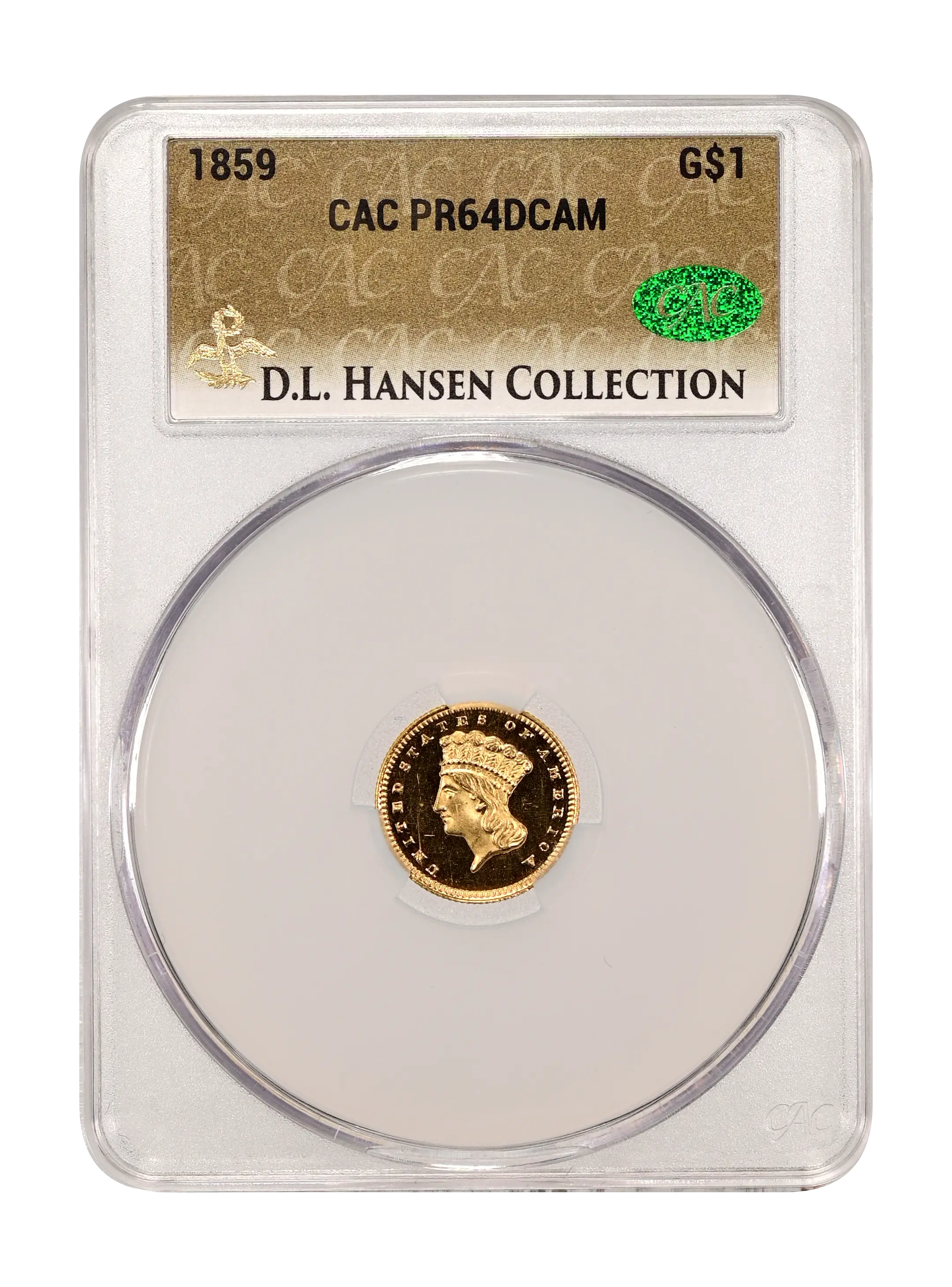 1859 G$1 DCAM (Proof) CAC PR64DCAM