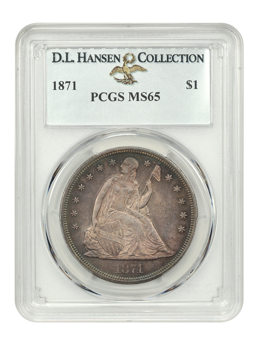 Reverse: The heraldic eagle is centered in the design with the words UNITED STATES OF AMERICA and ONE DOL. around the periphery.