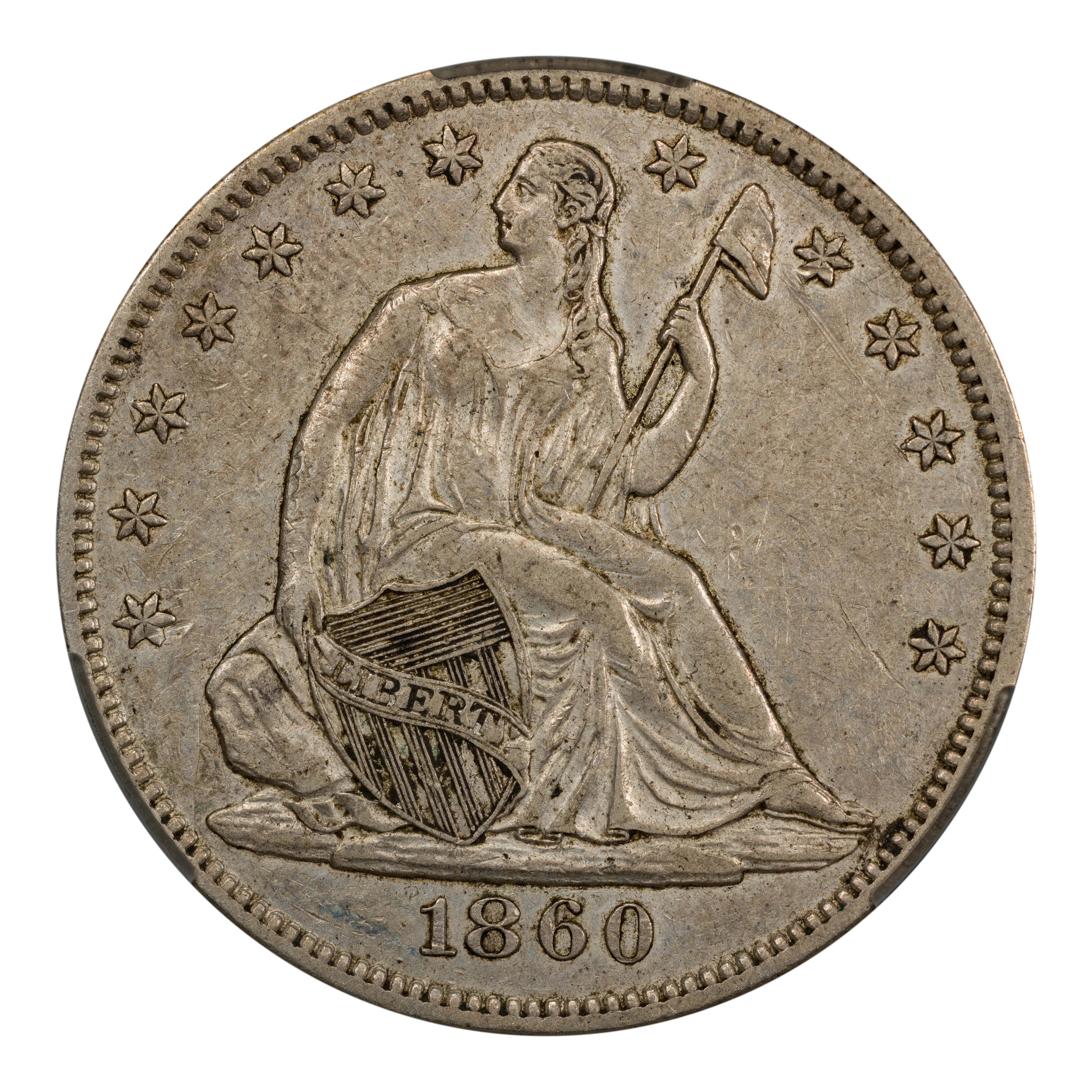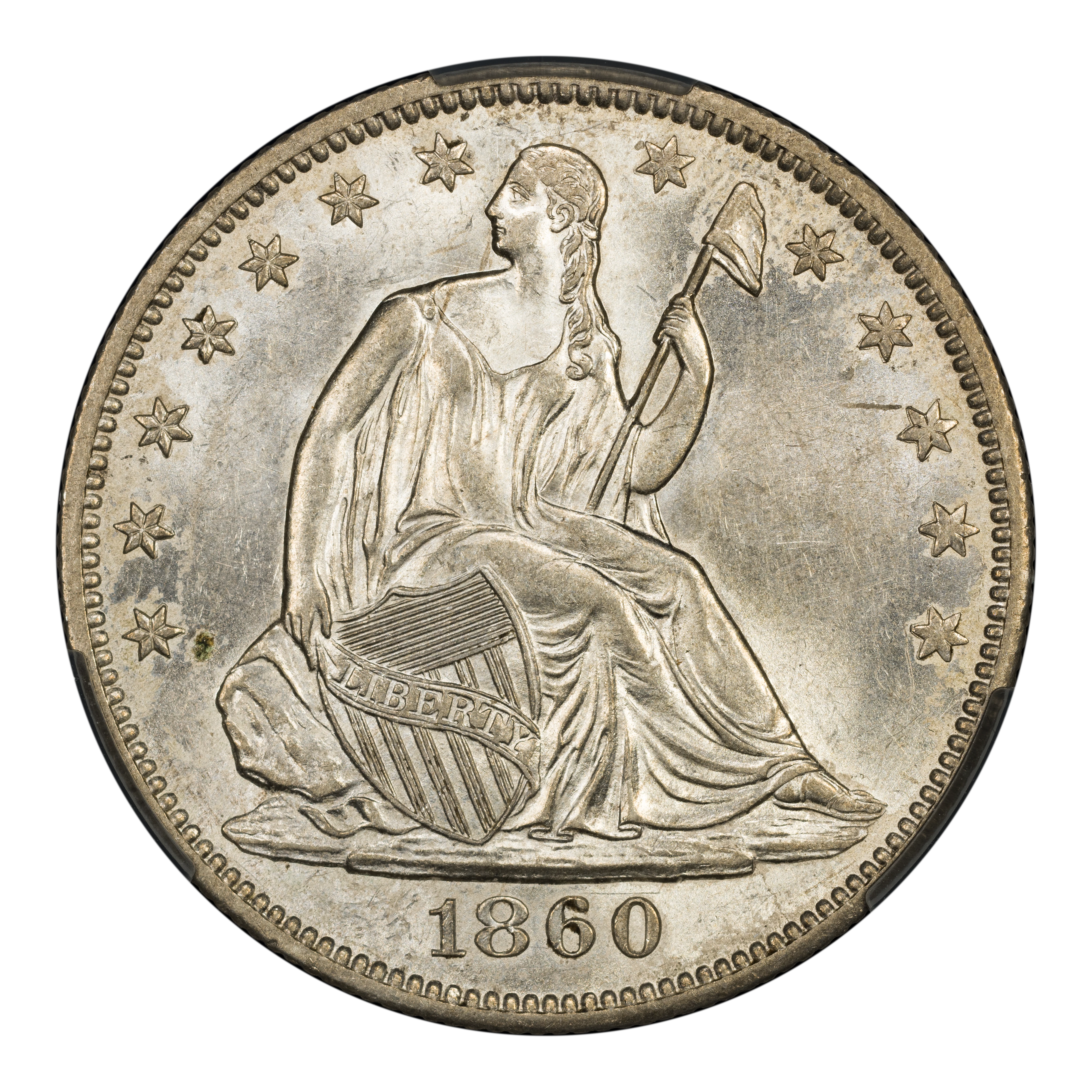 1860-O 50C MS63 PCGS. PCGS Population: (23/55 and 0/5+). NGC Census: (17/23 and 0/2+). CDN: $1,000 Whsle. Bid for NGC/PCGS ...