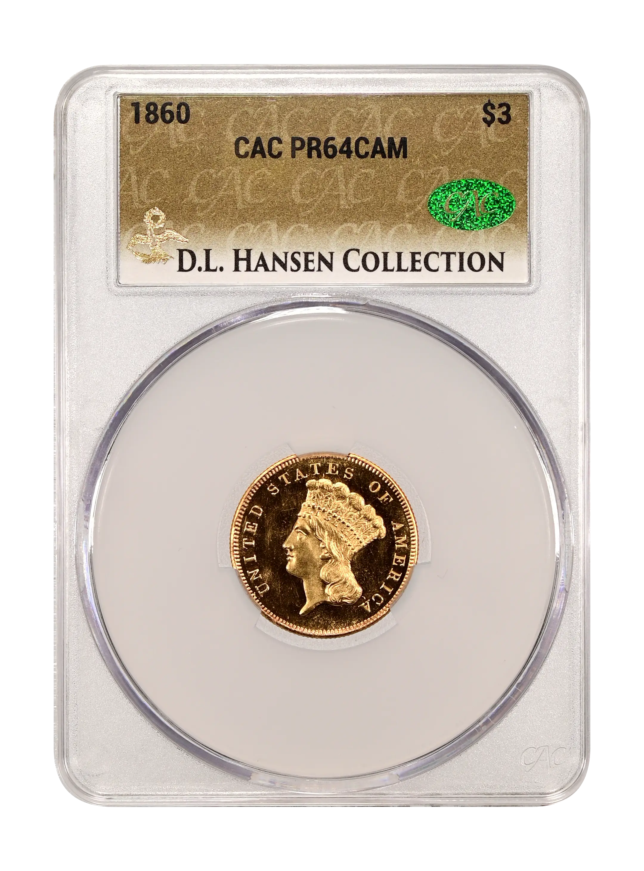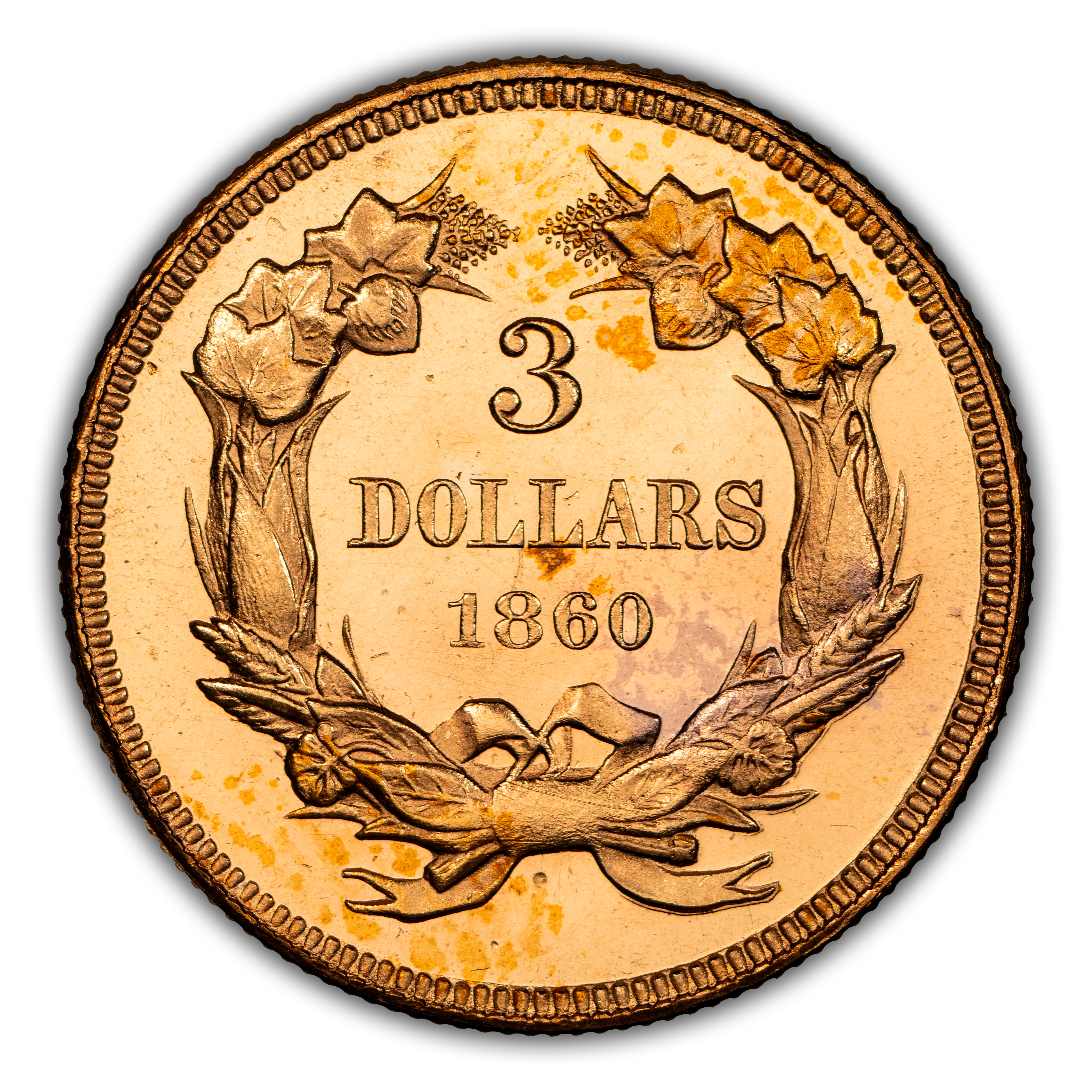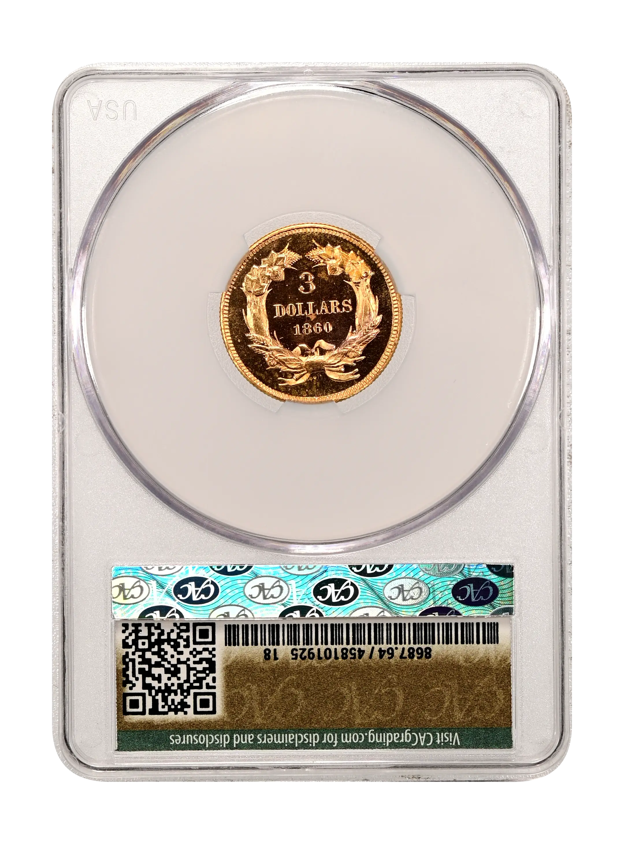 1860 Three-Dollar Gold Piece. JD-1. Rarity-7-. Proof-64 Cameo (PCGS). CAC. CMQ.