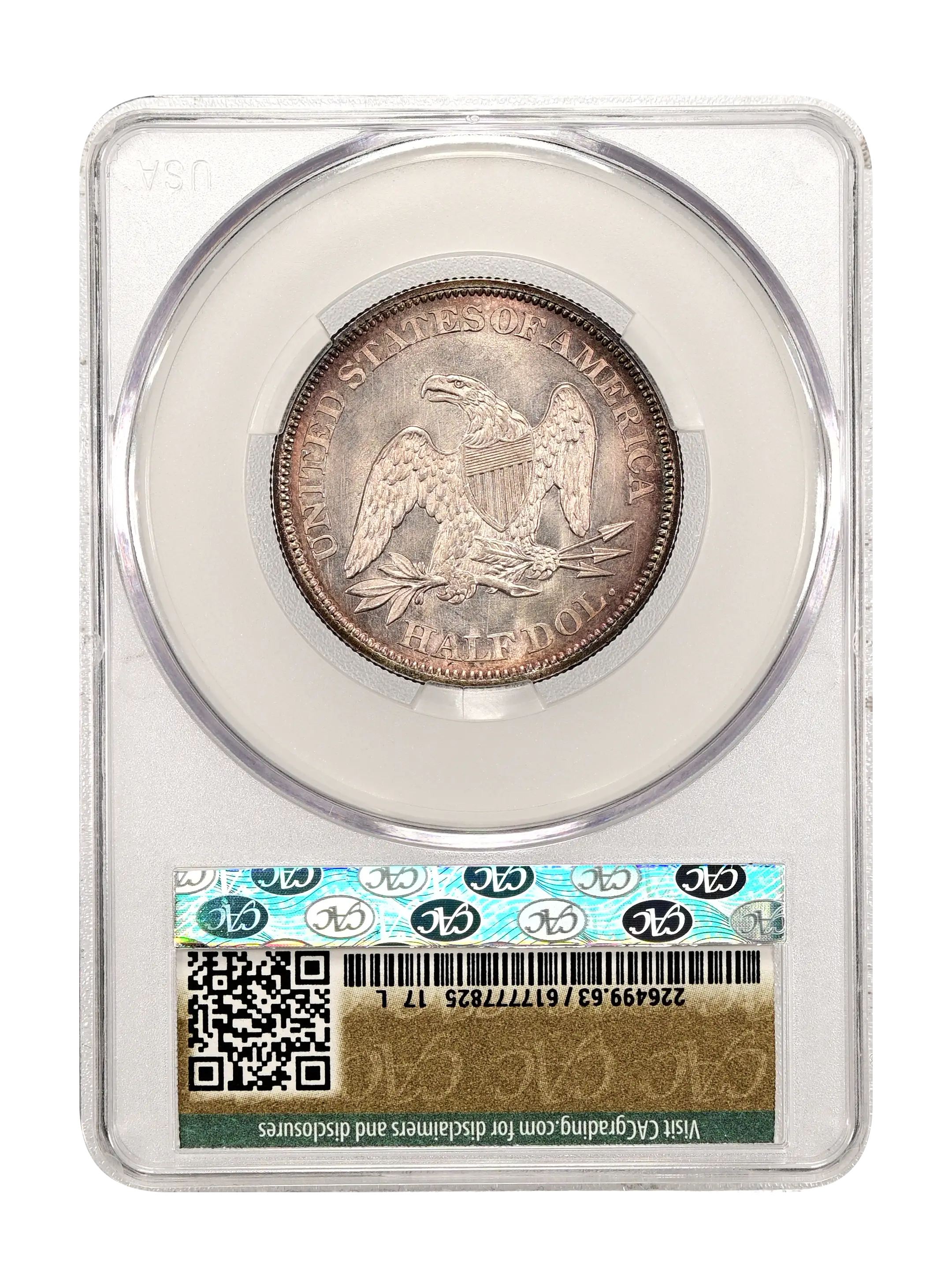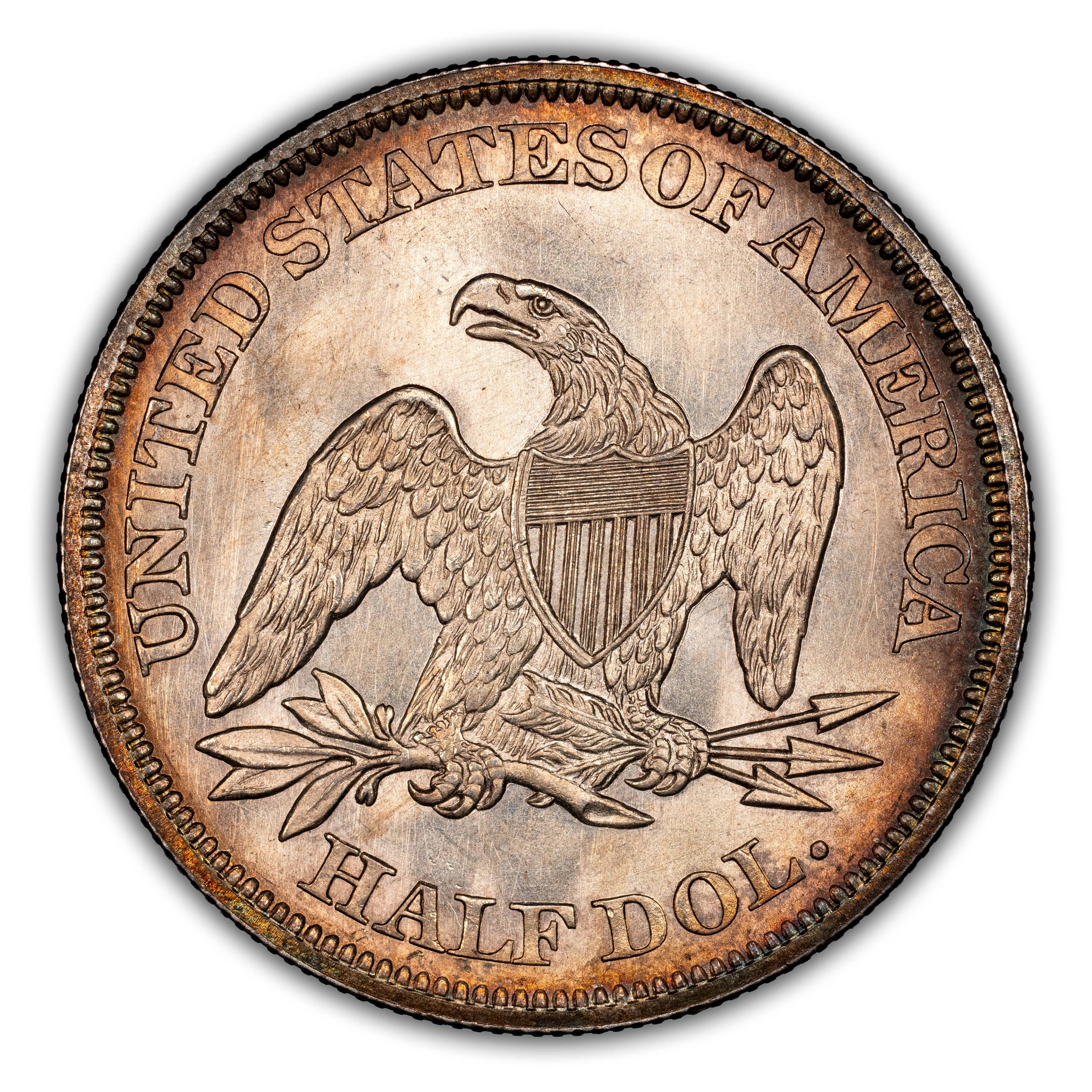 Reverse: The heraldic eagle is centered in the design with the words UNITED STATES OF AMERICA and HALF DOL. around the periphery.