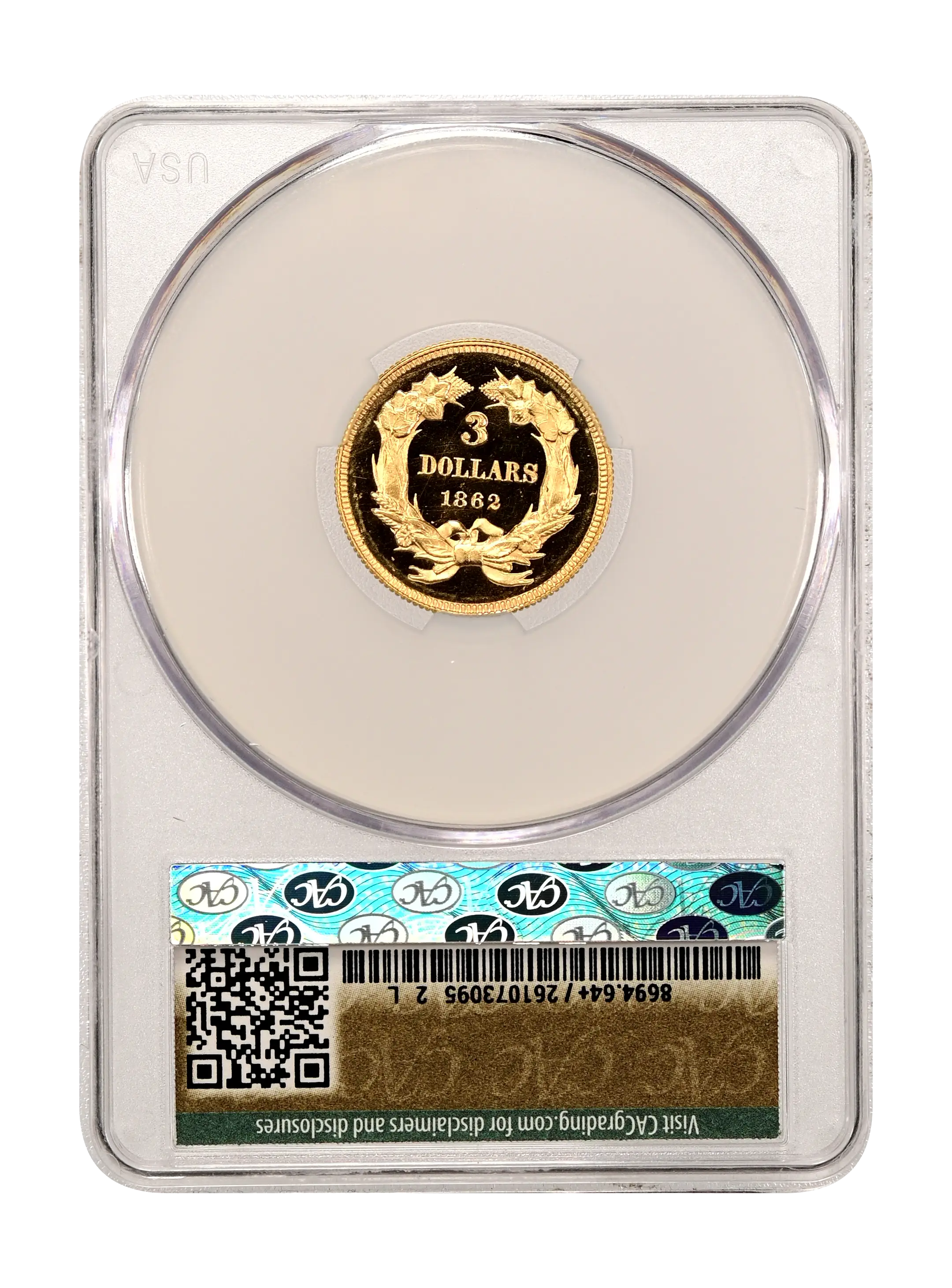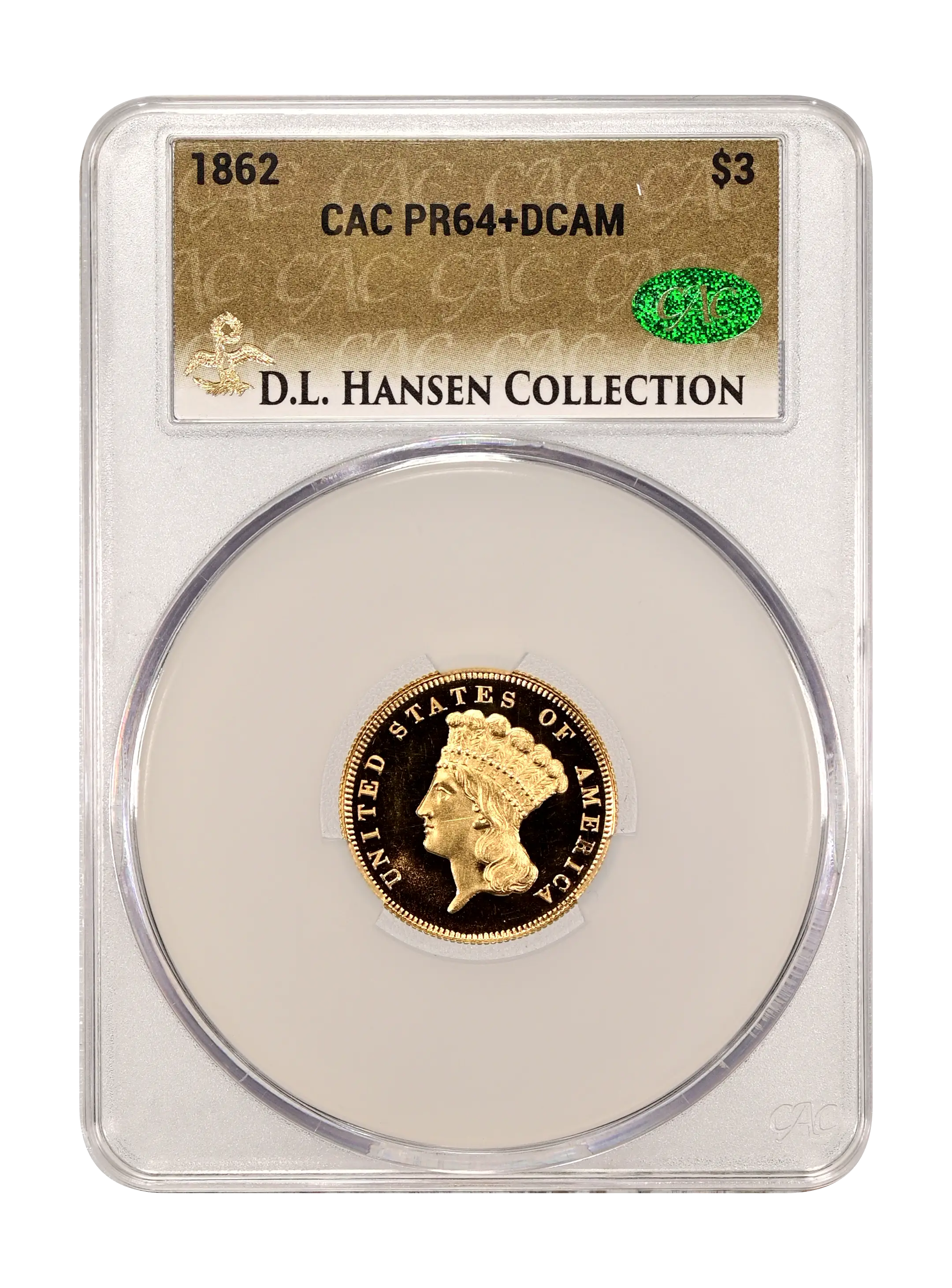 1862 $3 DCAM (Proof) CAC PR64+DCAM