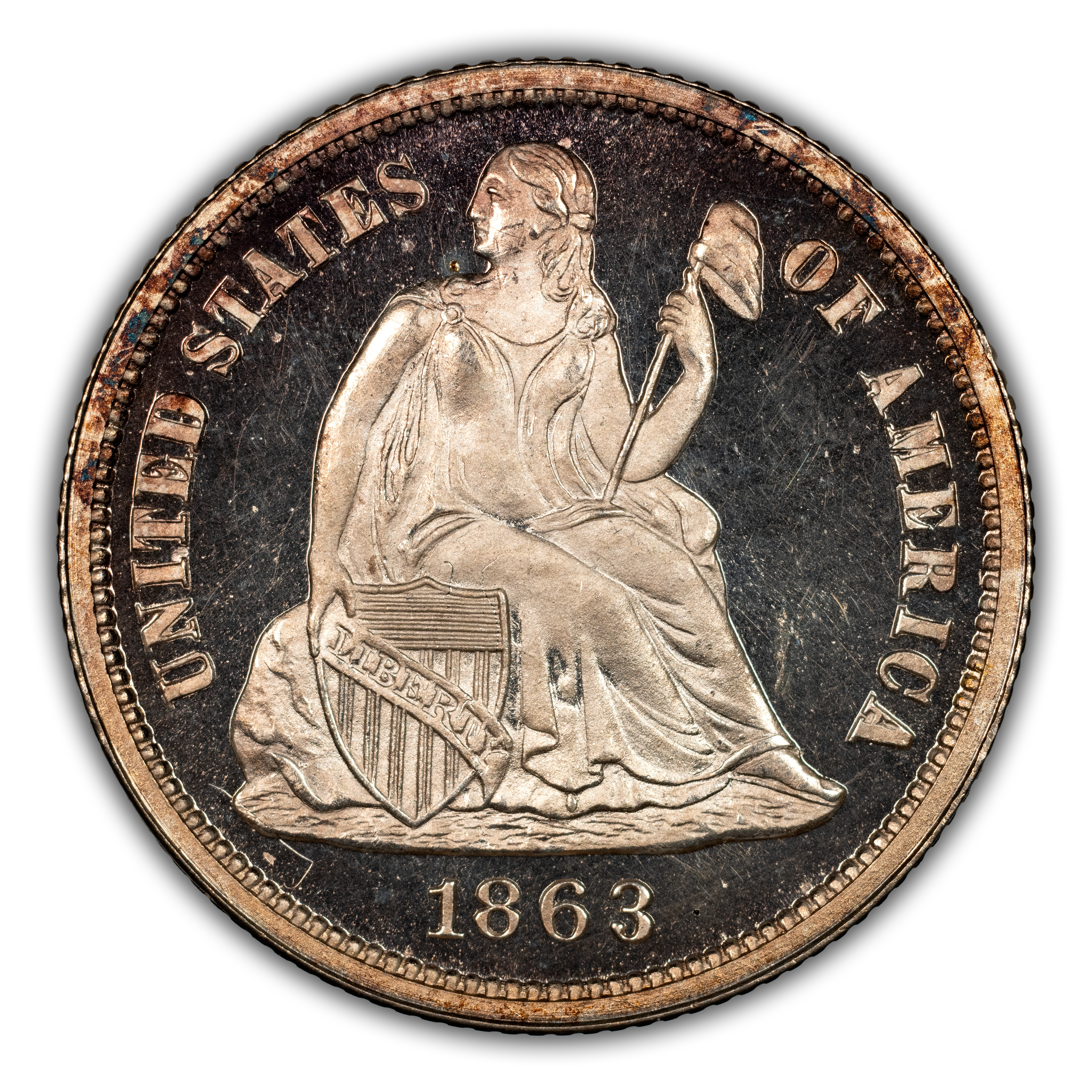 1863 10c DCAM (Proof) CAC PR66+DCAM