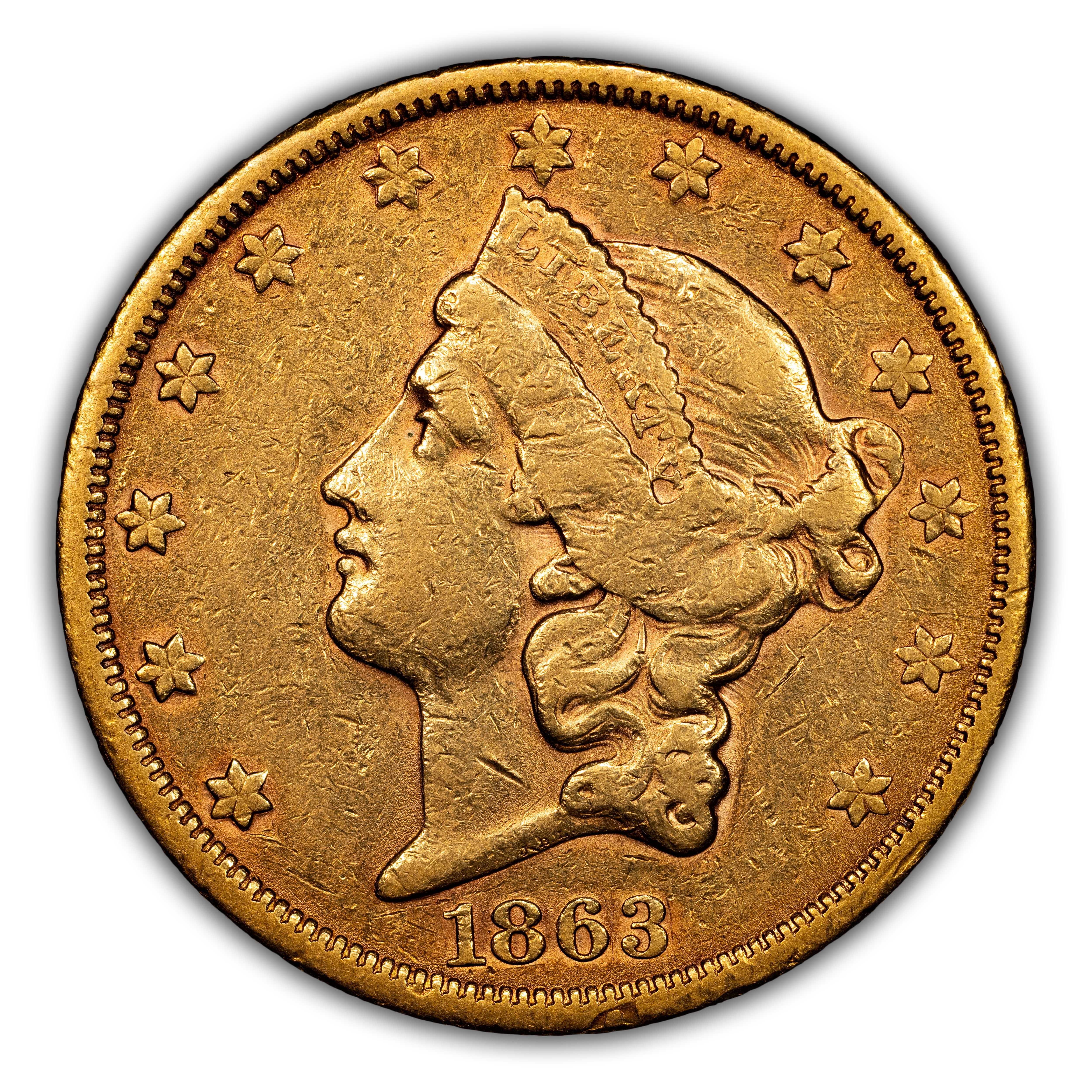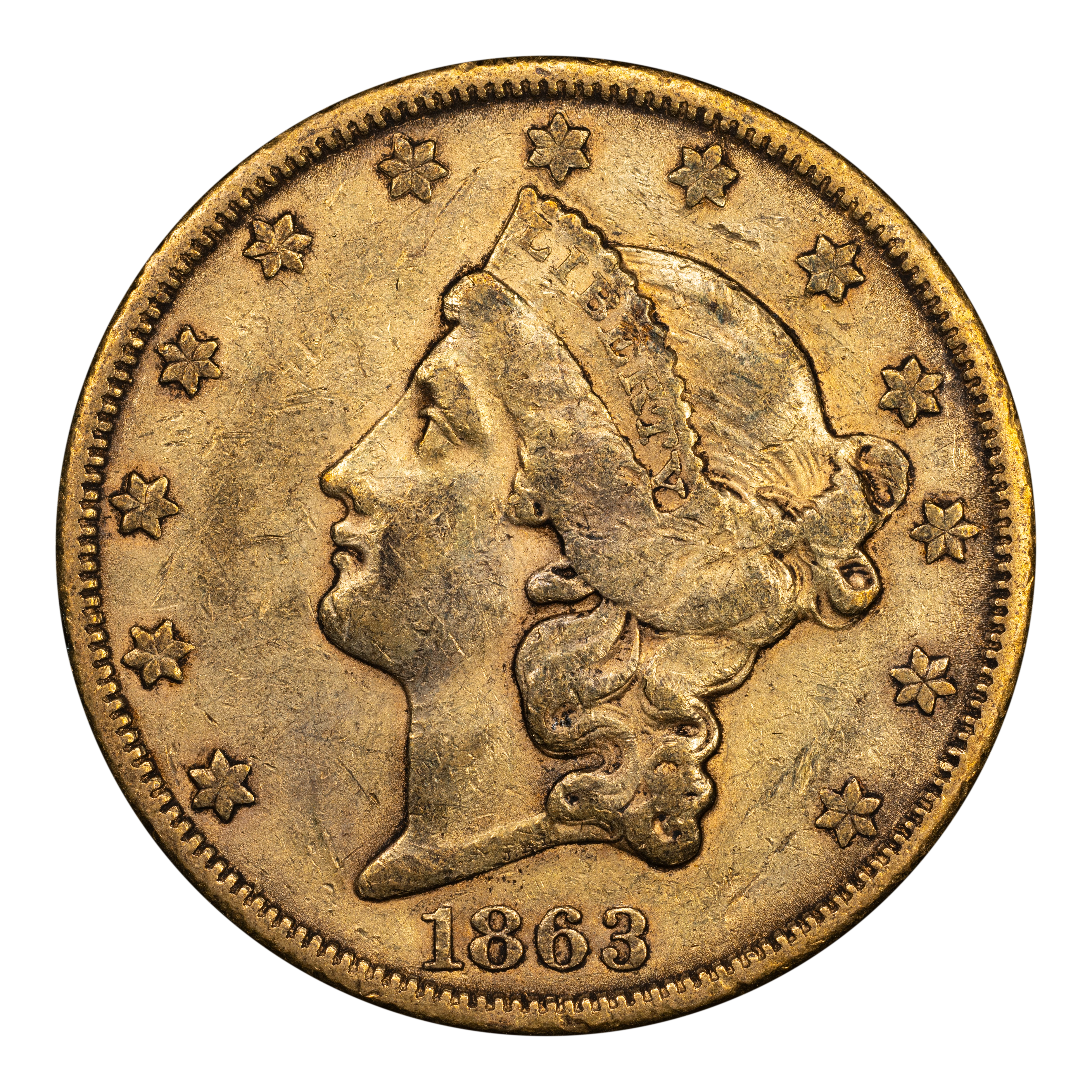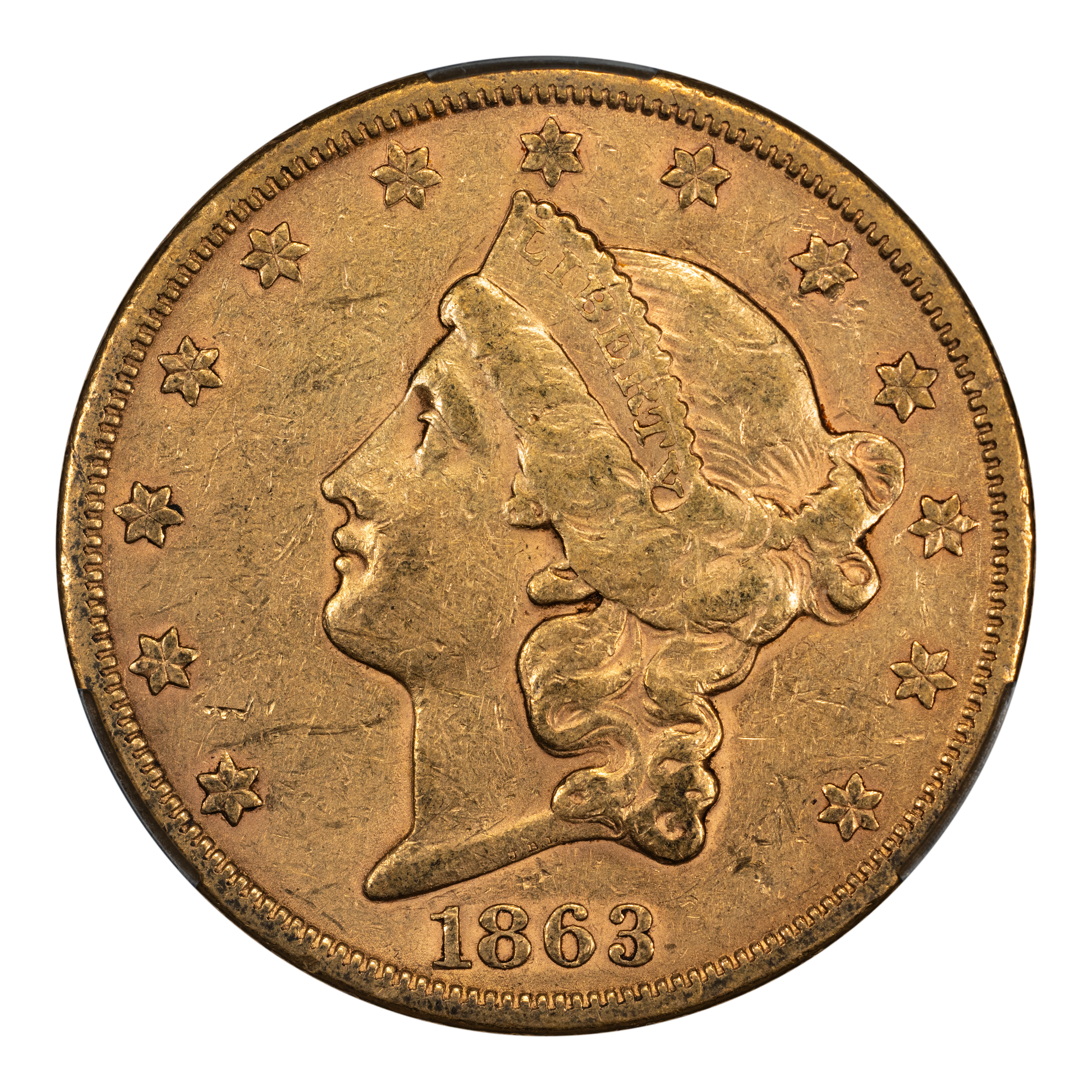 1863-S $20 CAC XF DETAILS