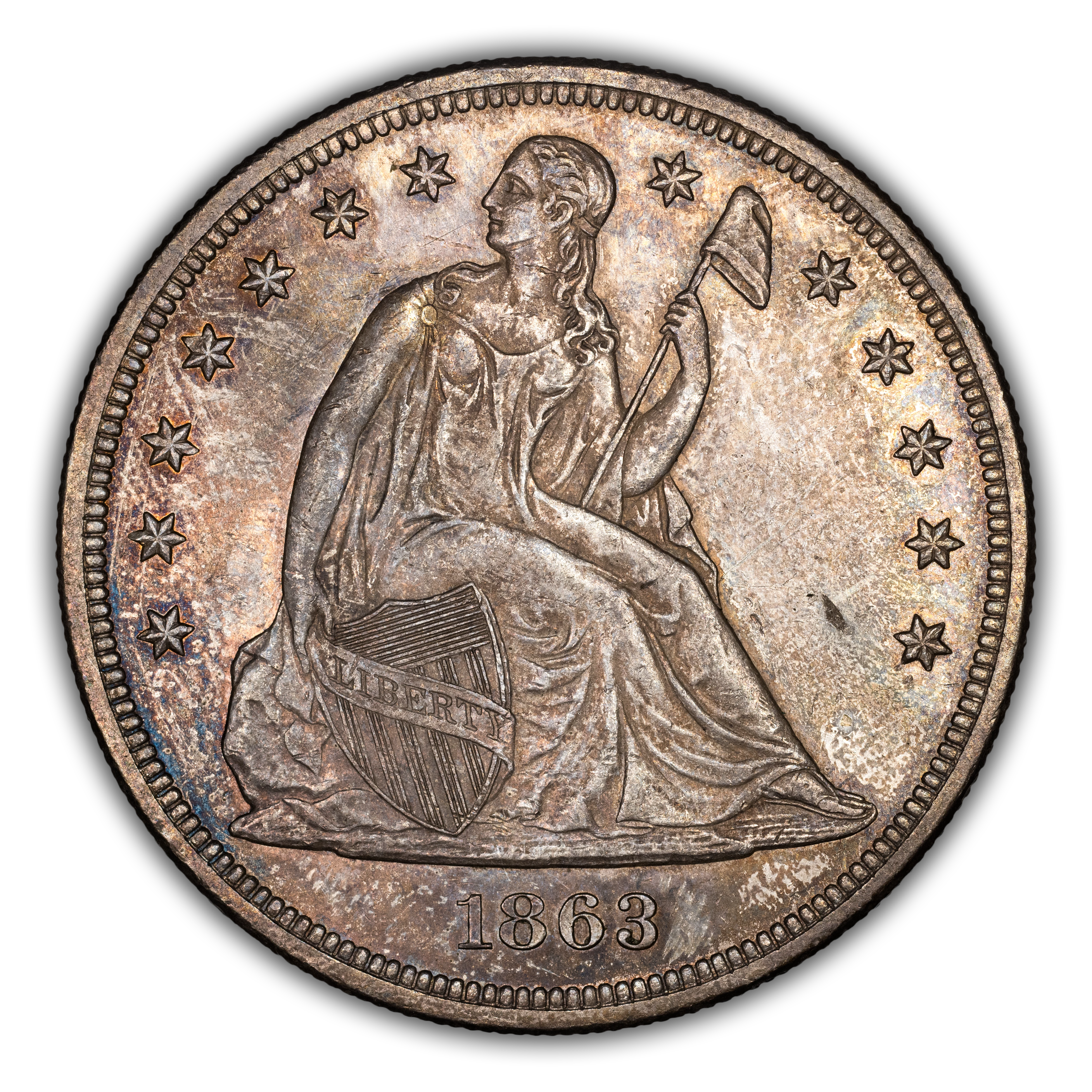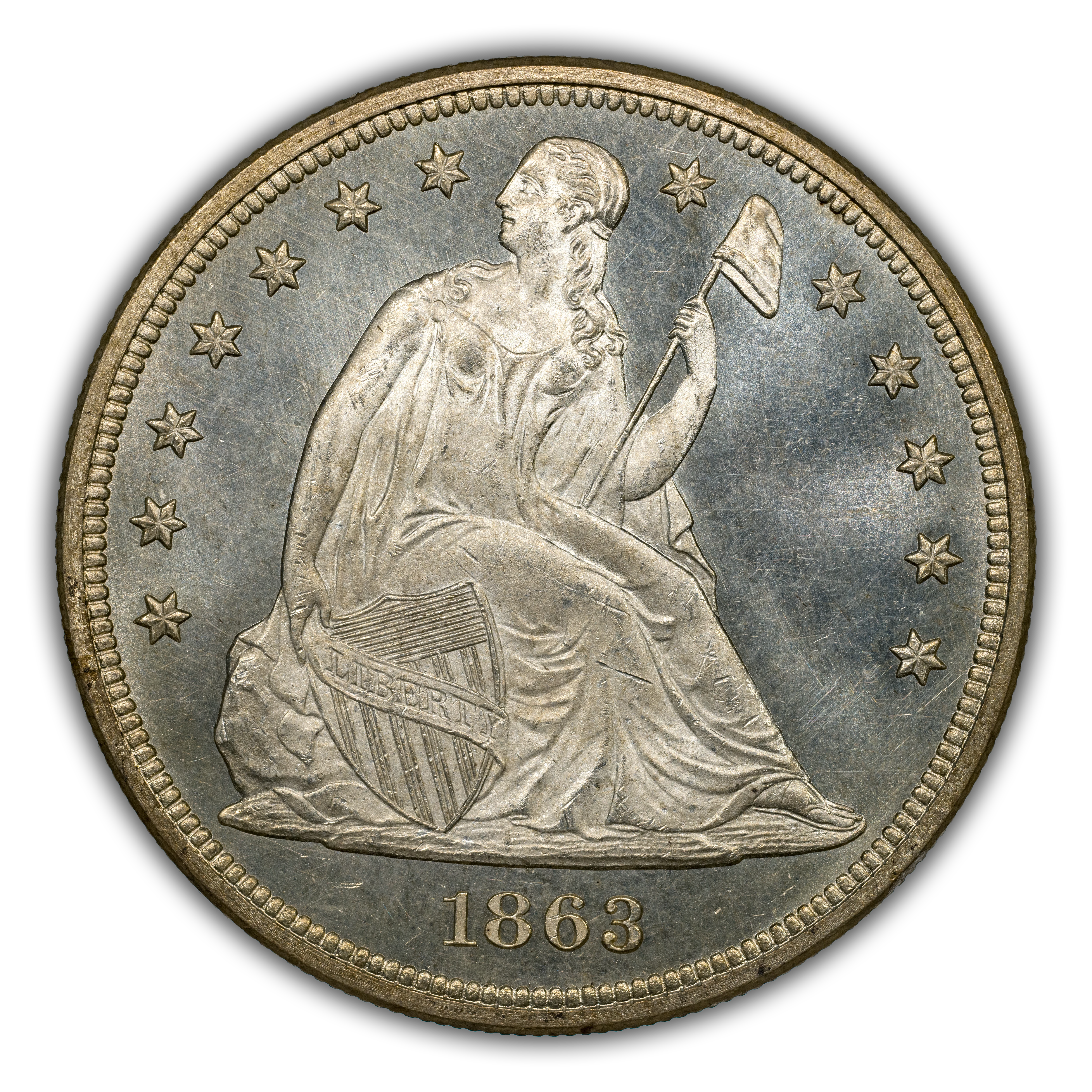 1863 Liberty Seated Silver Dollar. OC-1. Rarity-3-. MS-67 (PCGS).