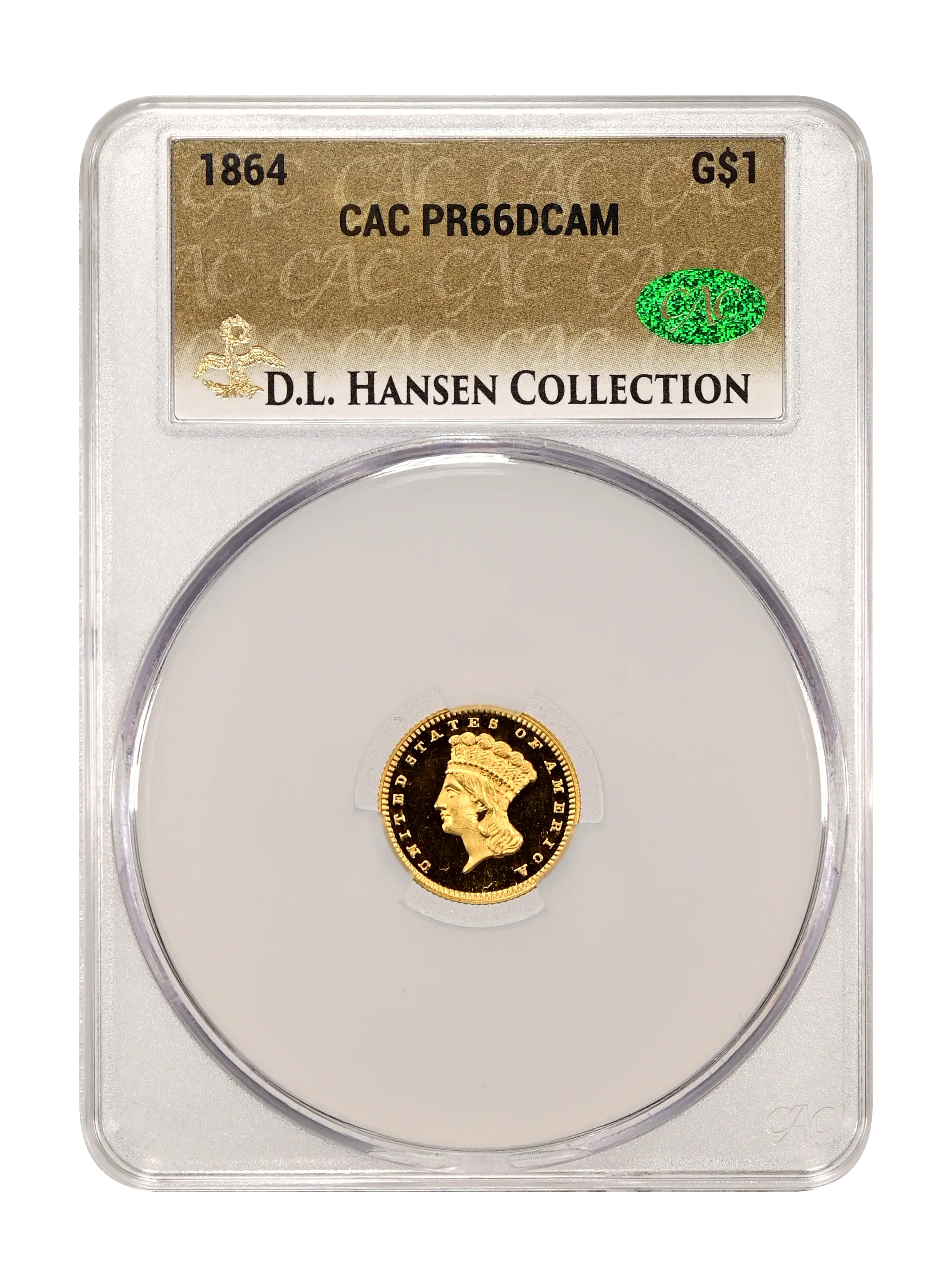 1864 G$1 DCAM (Proof) CAC PR66DCAM