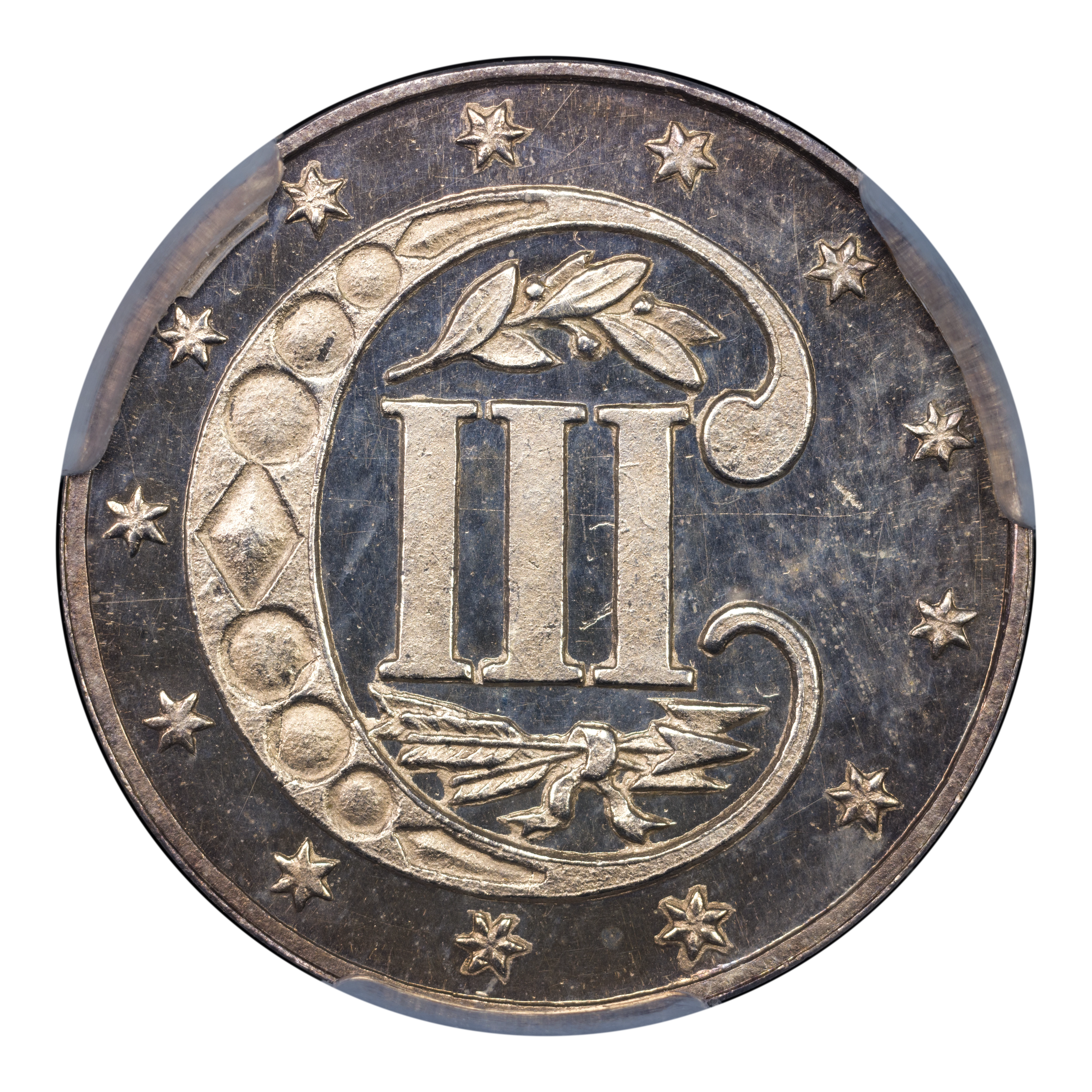 The 1865 Proof Three Cent Silver comes from a low mintage for its series of just 500 coins; most of which were saved leaving the issue readily available to collectors and relatively affordable. Scarce only in gem condition. Cameo pieces are far more difficult to locate in all grades and deep cameos are a rarity. Look for attractive toners as there exists many in this series.