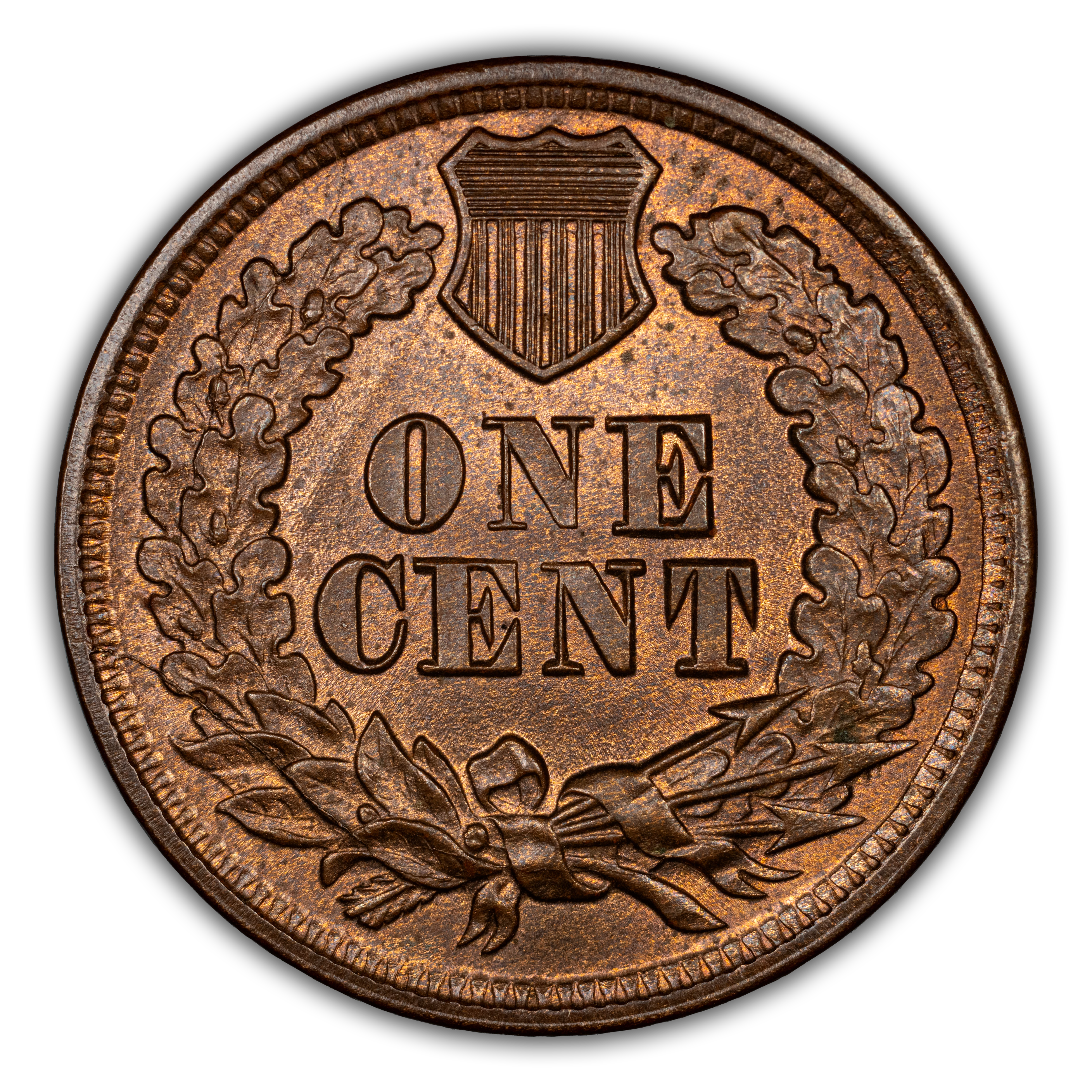 The 1865 Indian Cent comes with two varieties which are the Fancy 5 (almost looks italicized) and the Plain 5 (appears very dull and straight). The Fancy 5 is actually the type coin for the year but is still quite scarce. An overall very accessible coin that is scarcer than average in circulated grades and tough to find in Mint State, especially gems.