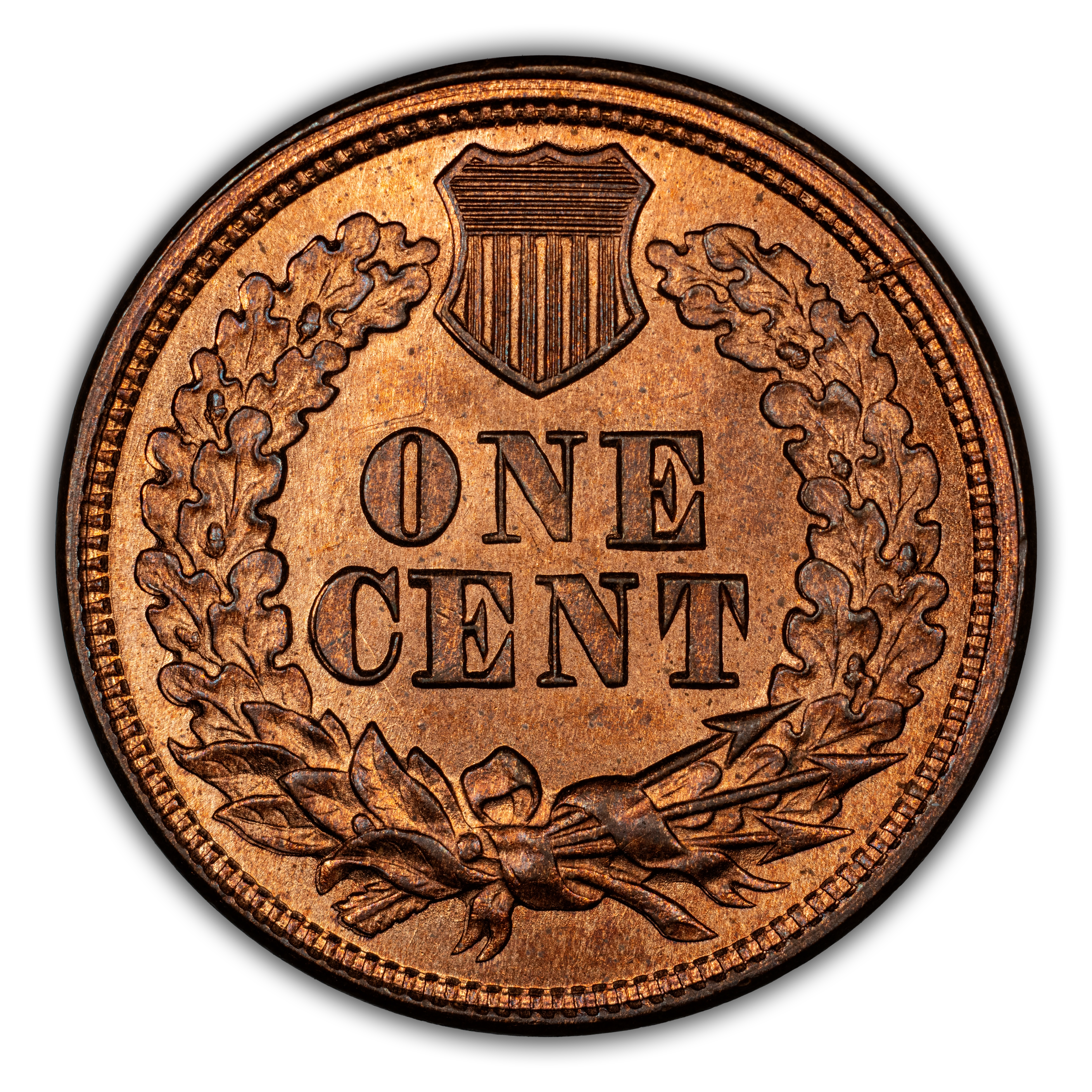 The 1865 Indian Cent comes with two varieties which are the Fancy 5 (almost looks italicized) and the Plain 5 (appears very dull and straight). The Plain 5 is the scarcer of the two. It is tough to locate this issue in all grades and is rare in Mint State. Red gem Plain 5's are very rare.