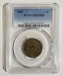<B>1865 2C Fancy 5 MS65 Brown PCGS. CAC.</B></I> CDN: $400 Whsle. Bid for NGC/PCGS MS65. Mintage 13,640,000....