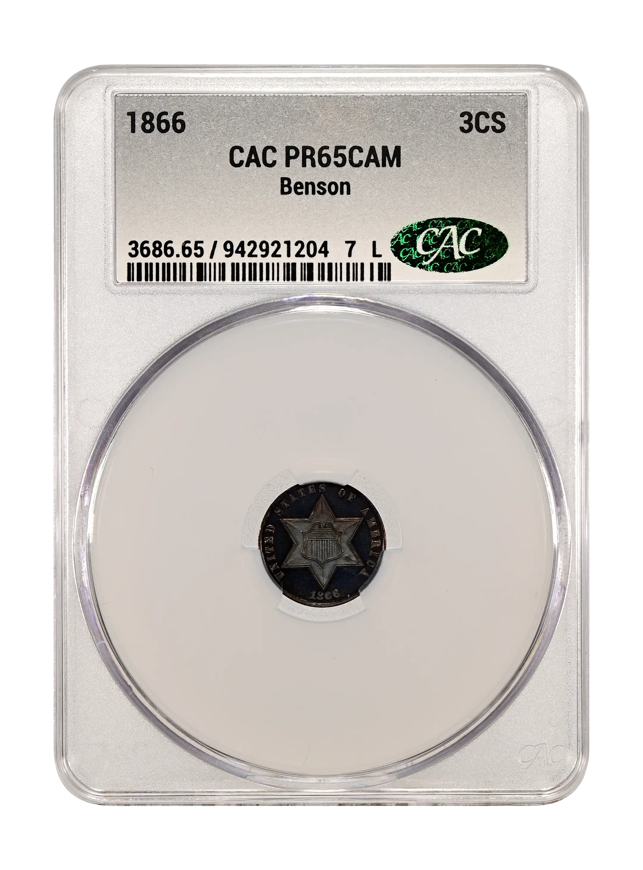 1866 3cS PCGS/CAC Proof 66 CAM ex: D.L. Hansen
