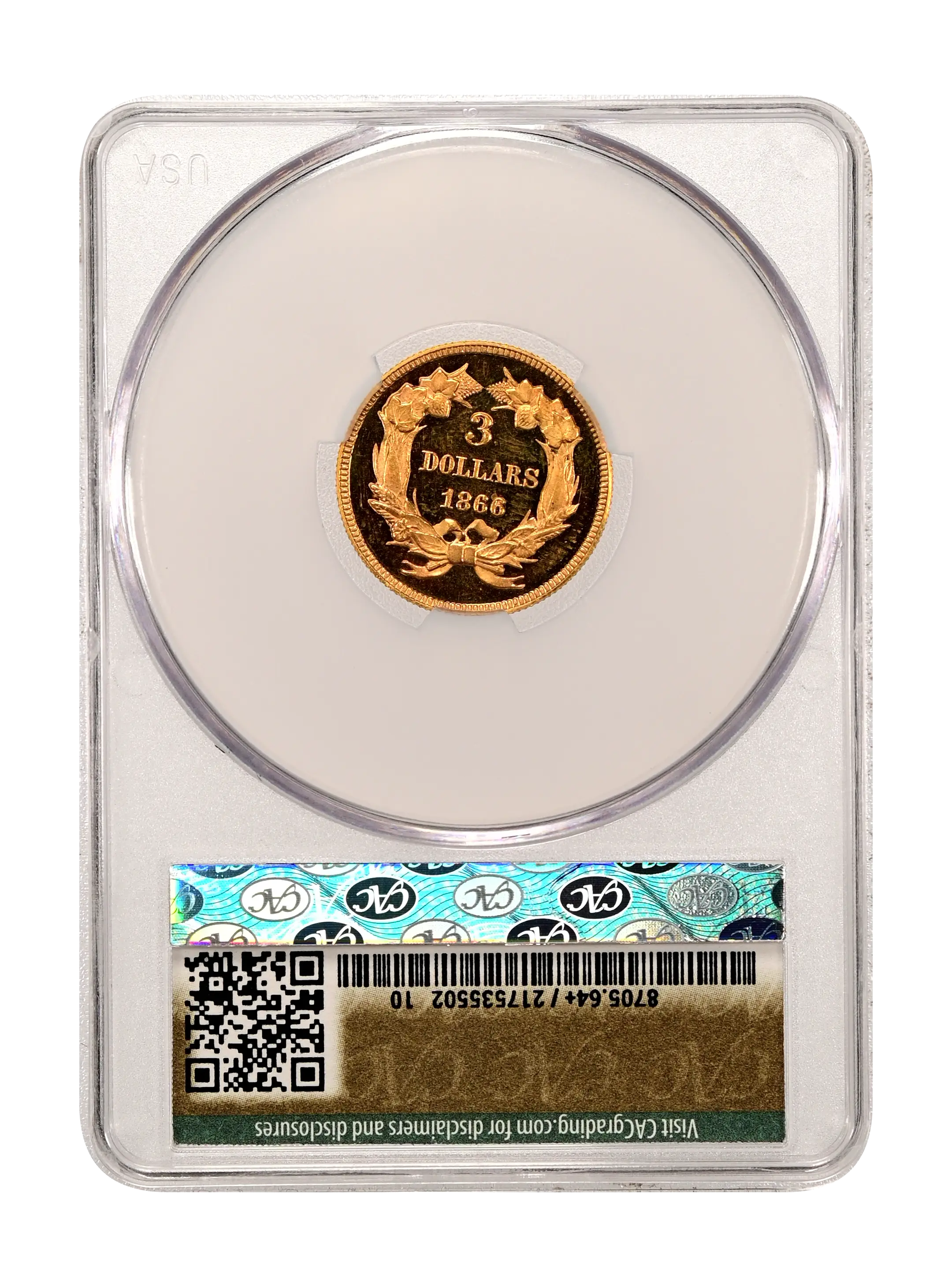 1866 $3 DCAM (Proof) CAC PR64+DCAM