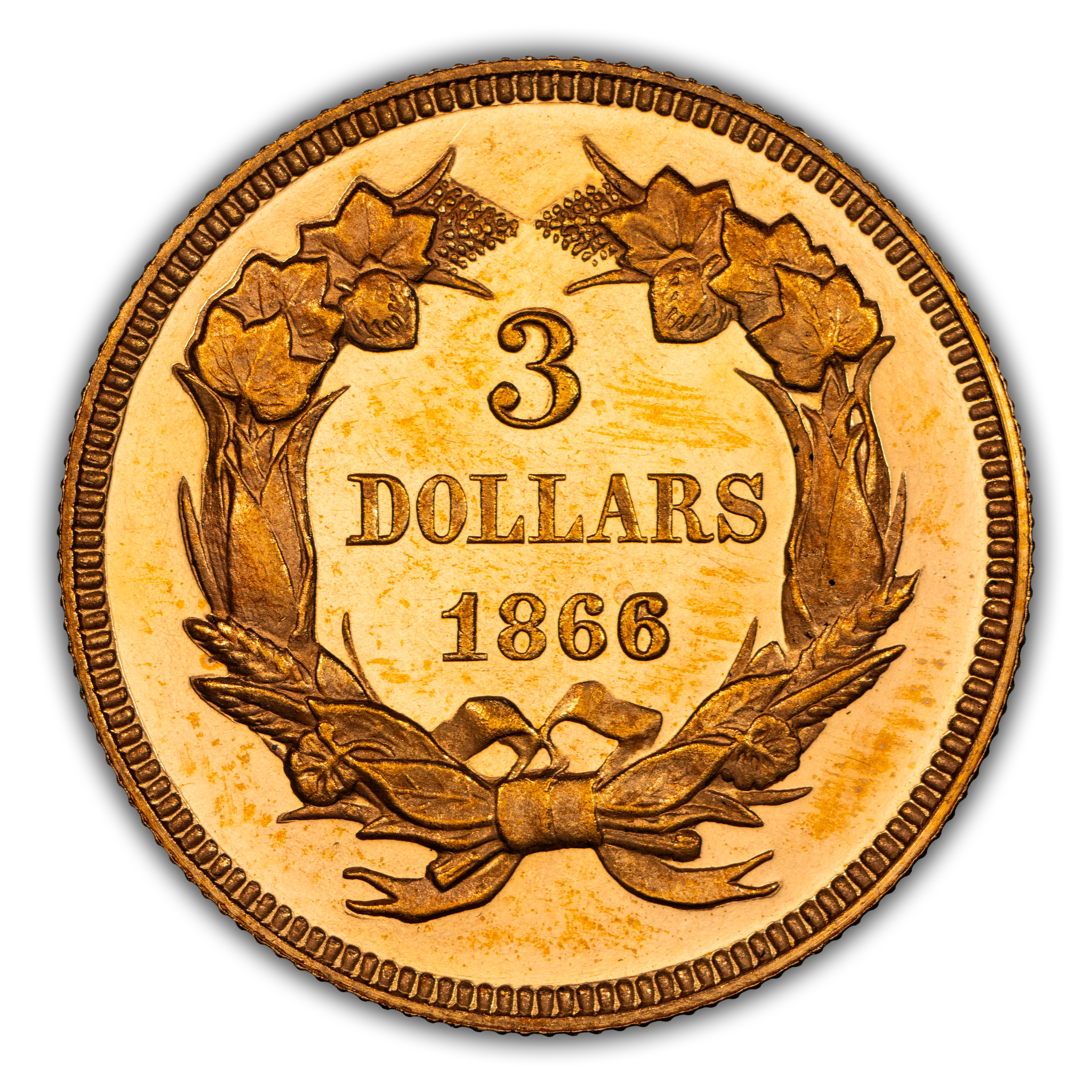 1866 $3 PR64 Deep Cameo PCGS. CAC....