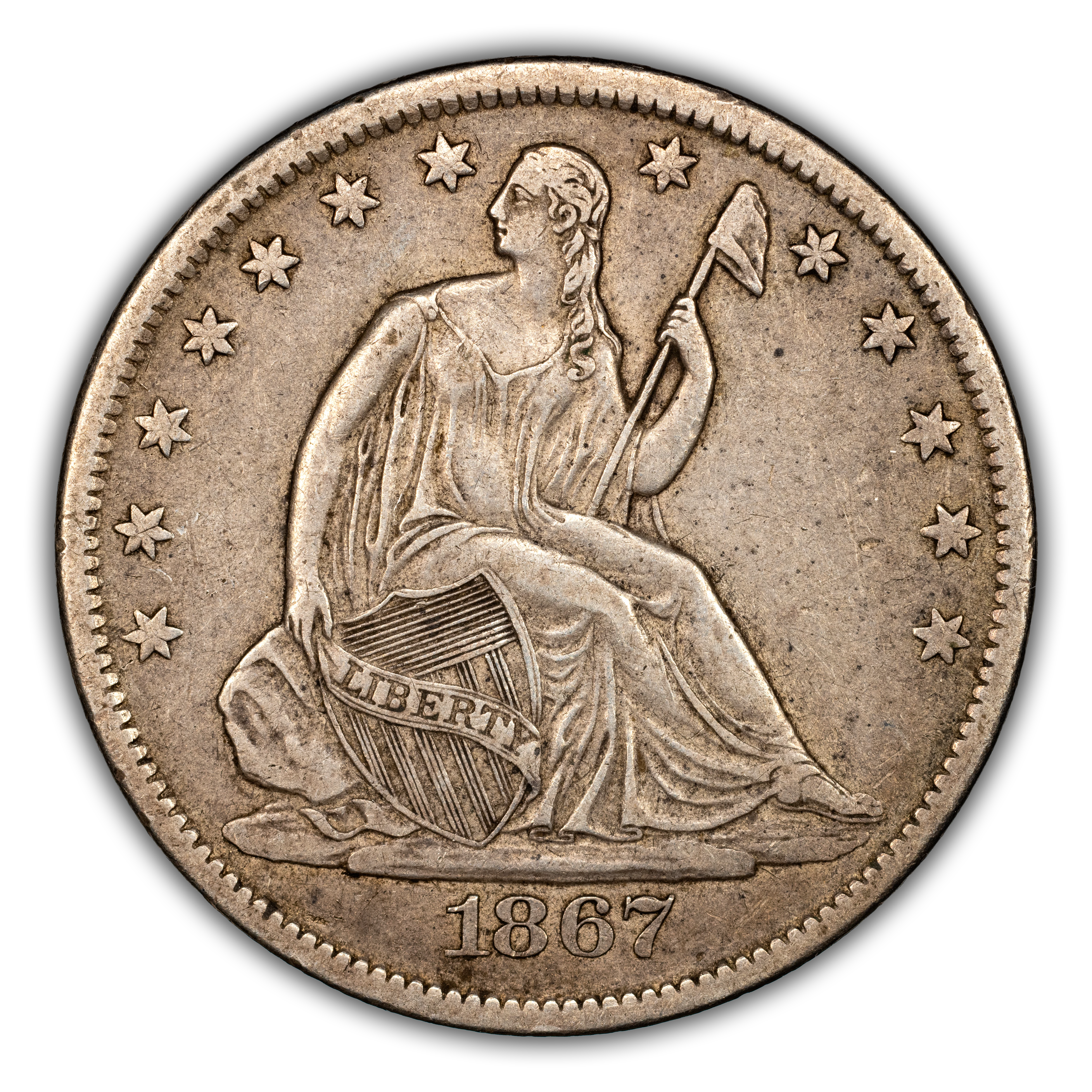 1867-S 50C XF45 PCGS. PCGS Population: (35/86 and 1/1+). NGC Census: (20/64 and 0/0+). CDN: $260 Whsle. Bid for NGC/PCGS X...
