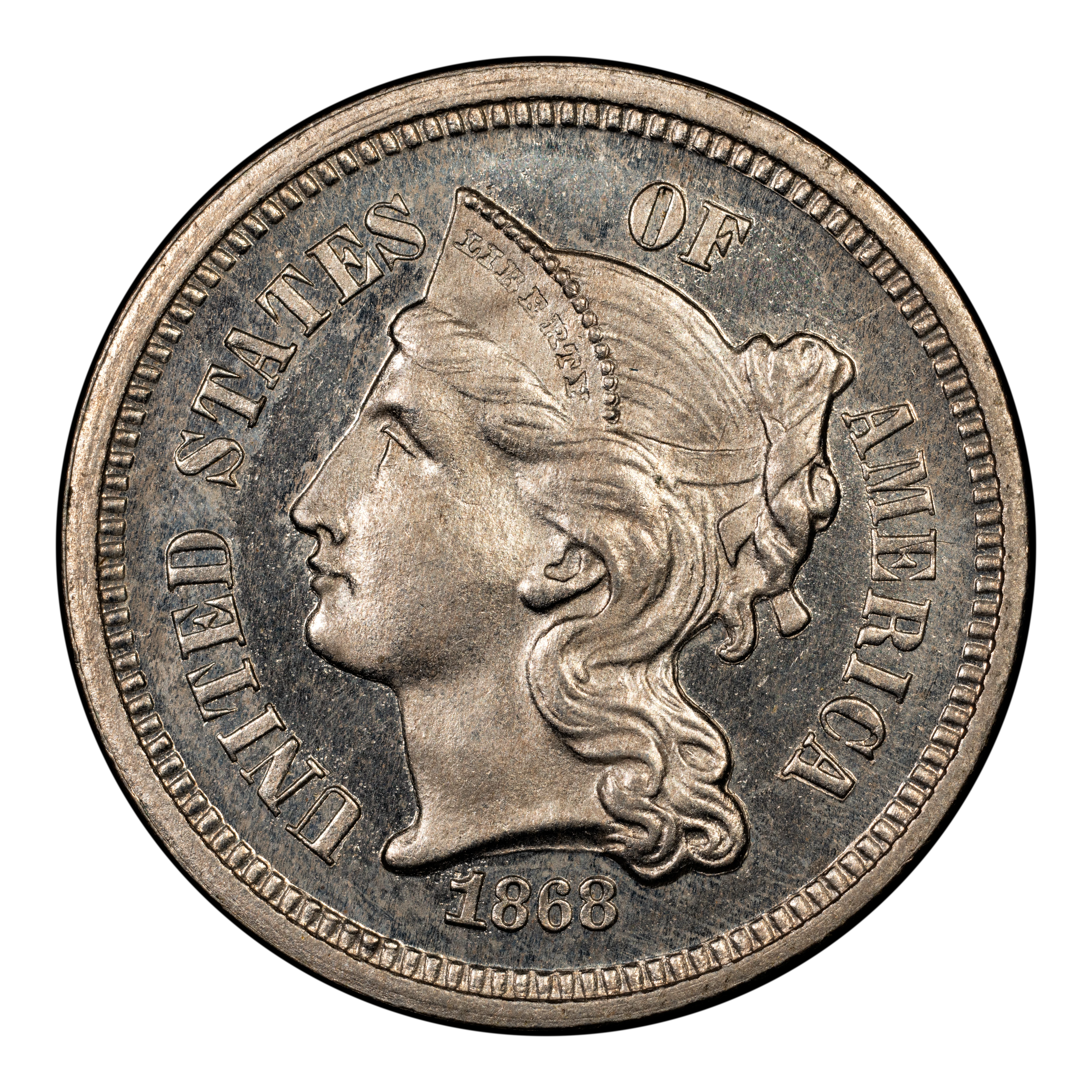 The 1868 Proof Three Cent Nickel comes from a mintage of just 600 coins, most of which still exist. Common up to the gem level. PR65 and PR66 are scarce and all grades finer are rare. Examples with eye catching color and strong strikes are out there if you're up for the hunt. There is a small, gradual premium for cameos with an increase in rarity and desirability for deep cameos.