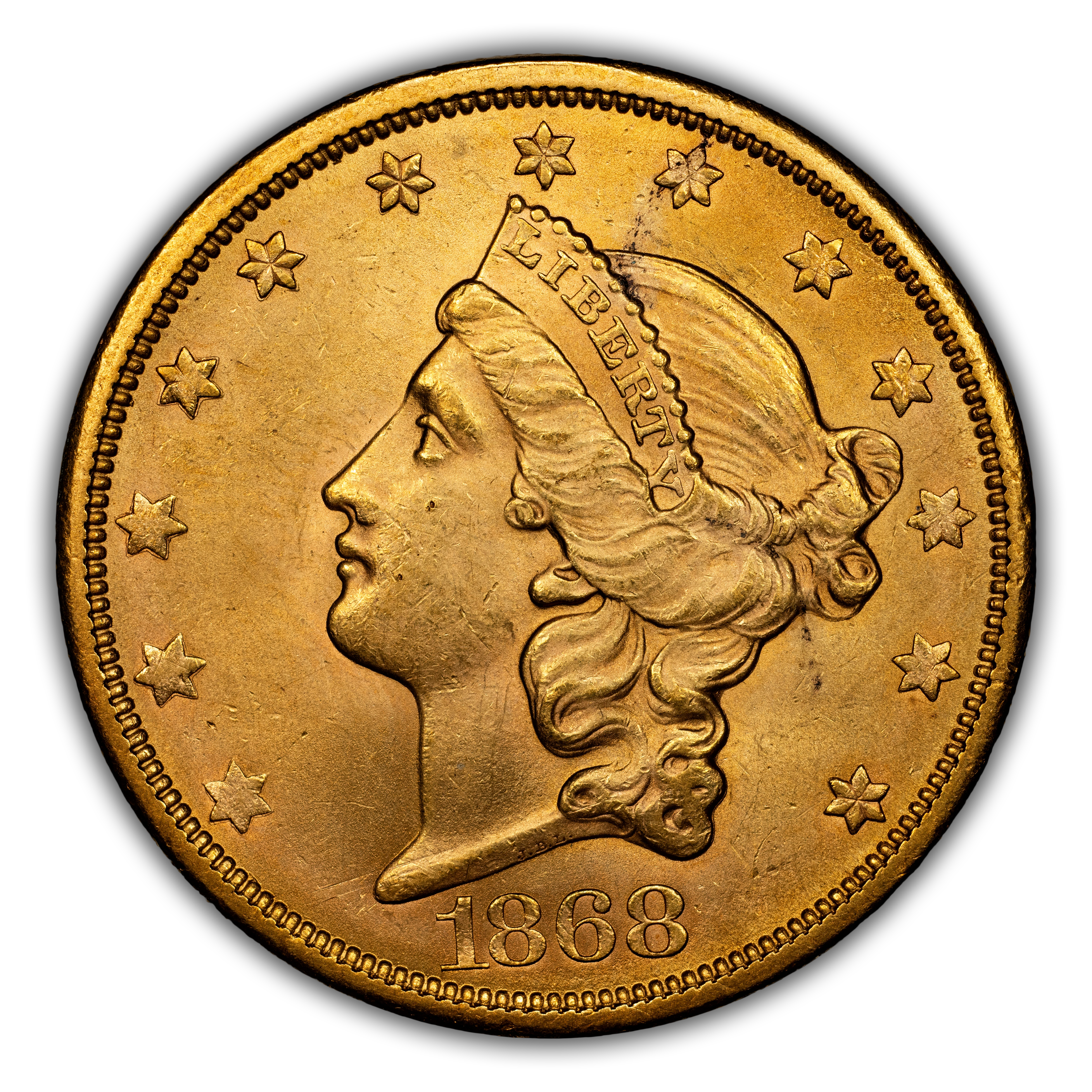 1868-S $20 AU58 NGC. CAC....