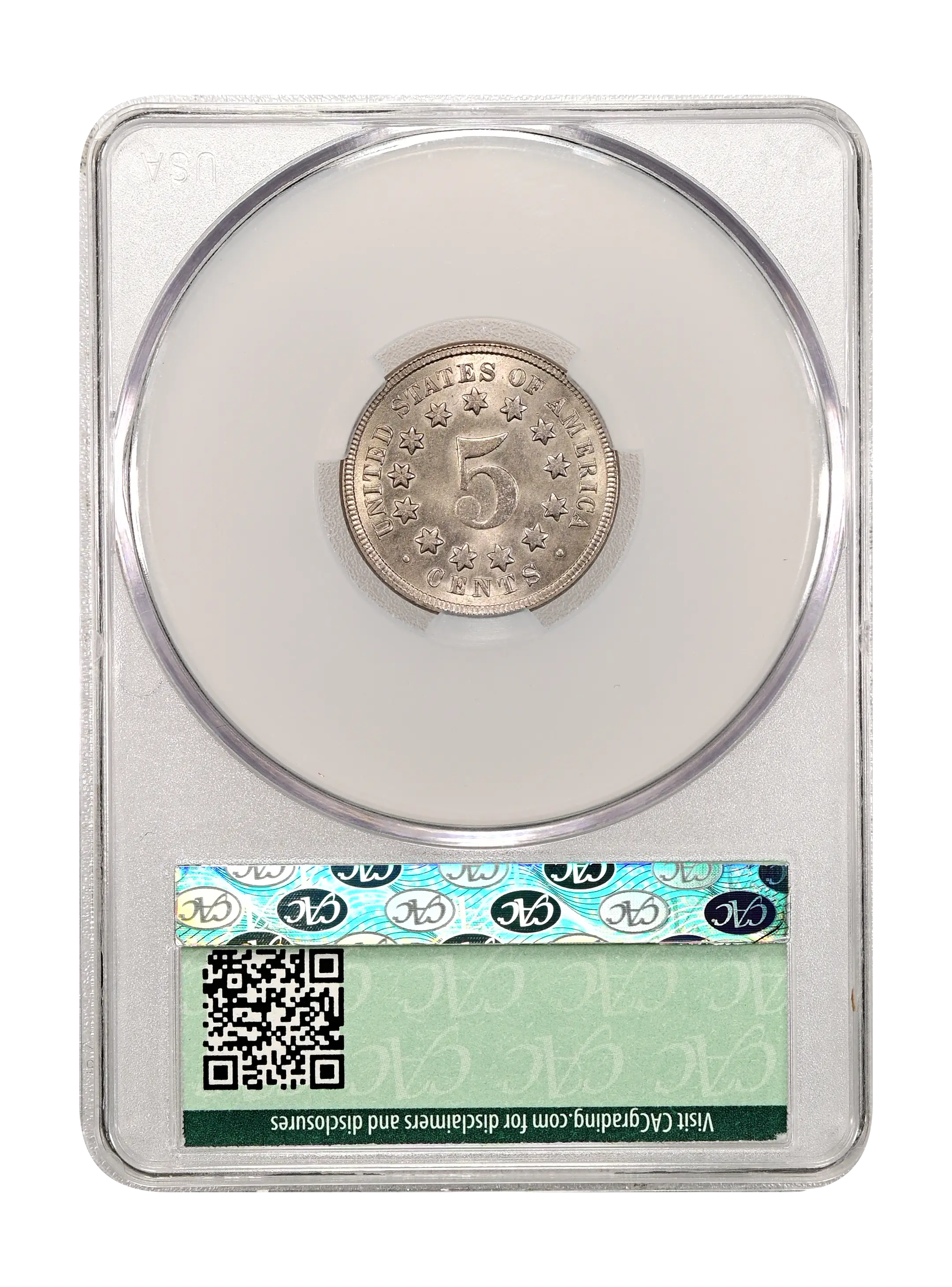 Reverse: A large numeral 5 surrounded by 13 stars centered in the design with UNITED STATES OF AMERICA * CENTS around the periphery.