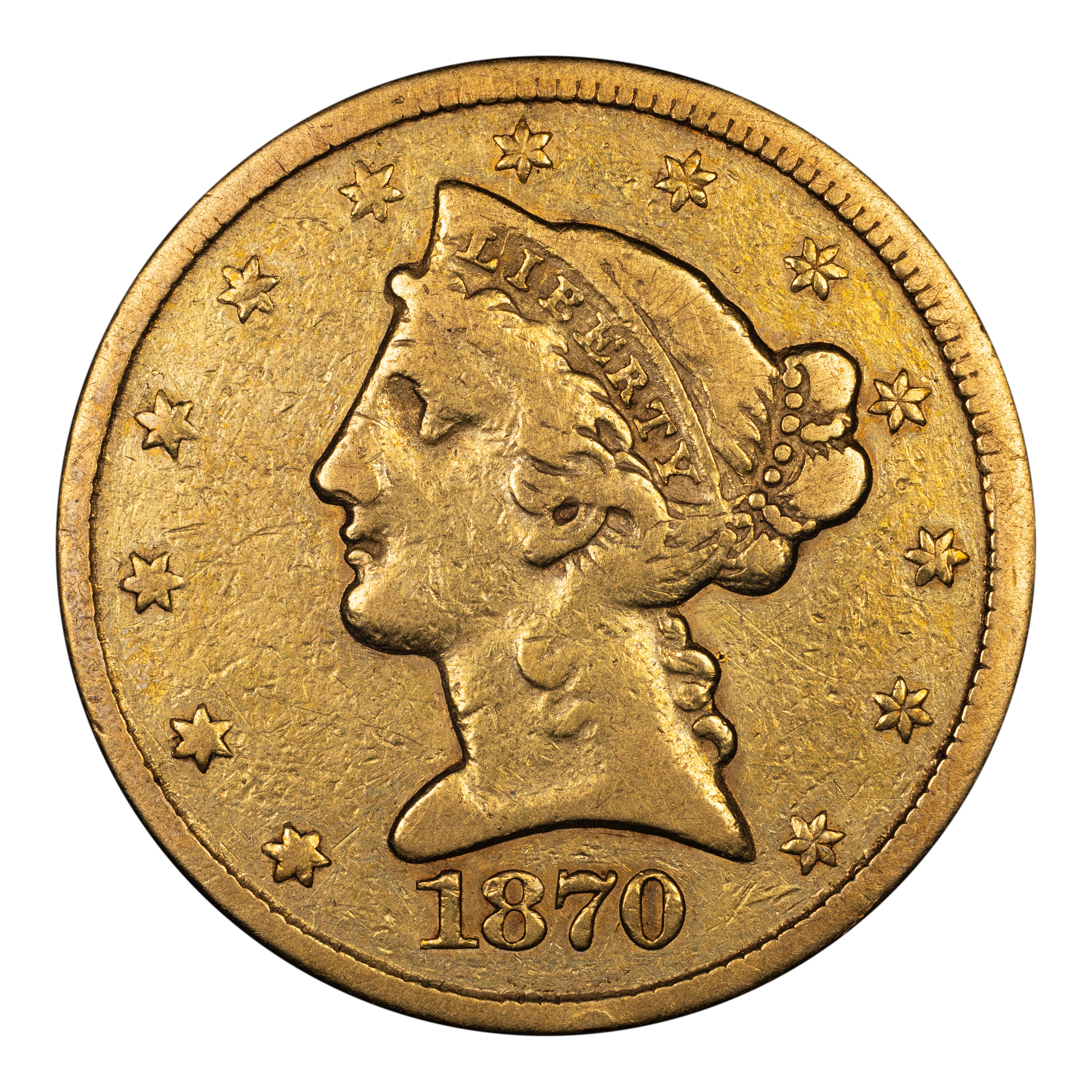 1870-CC $5 XF40 PCGS. Winter 1-A....
