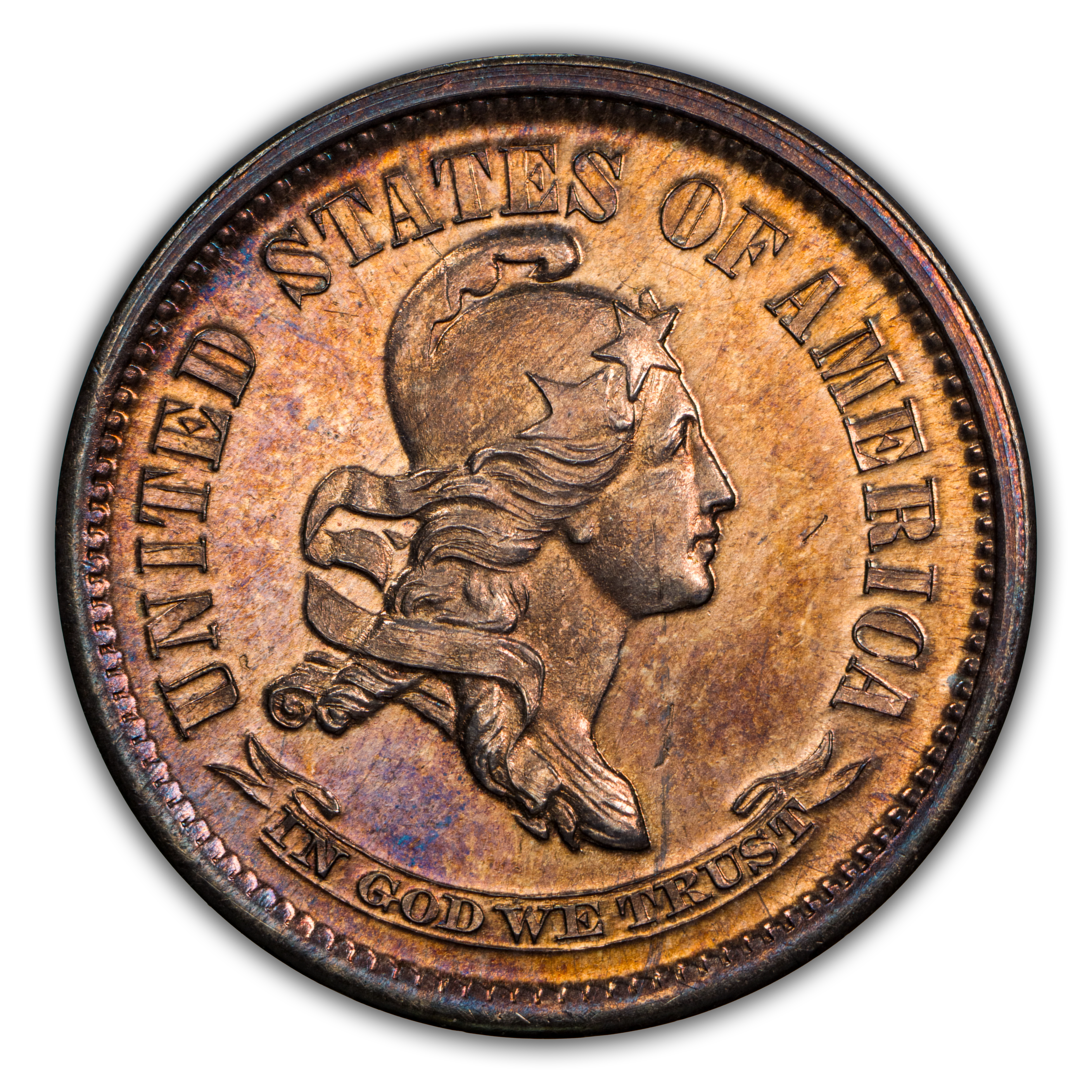 Obverse: Liberty Head with cap and three stars.