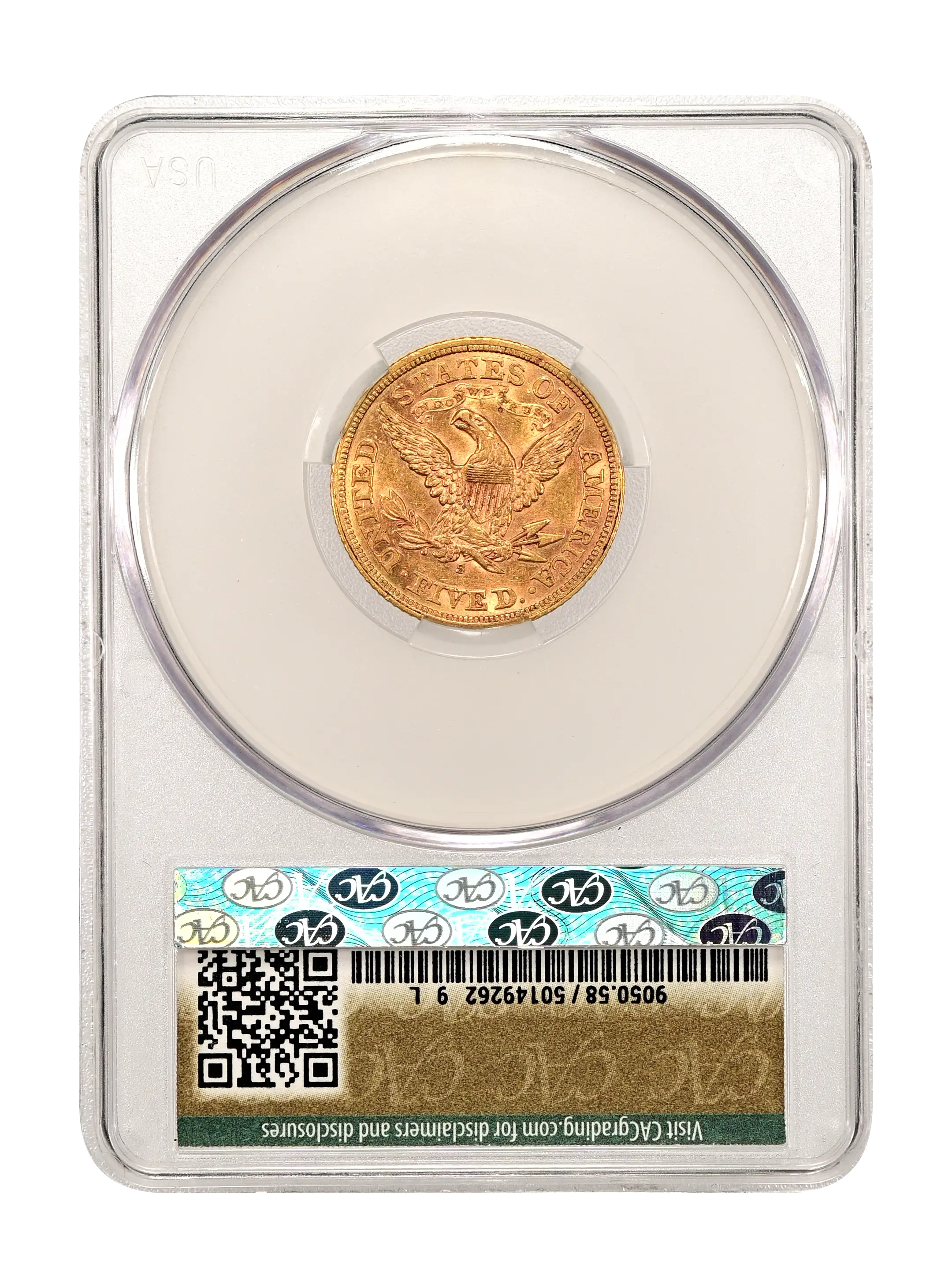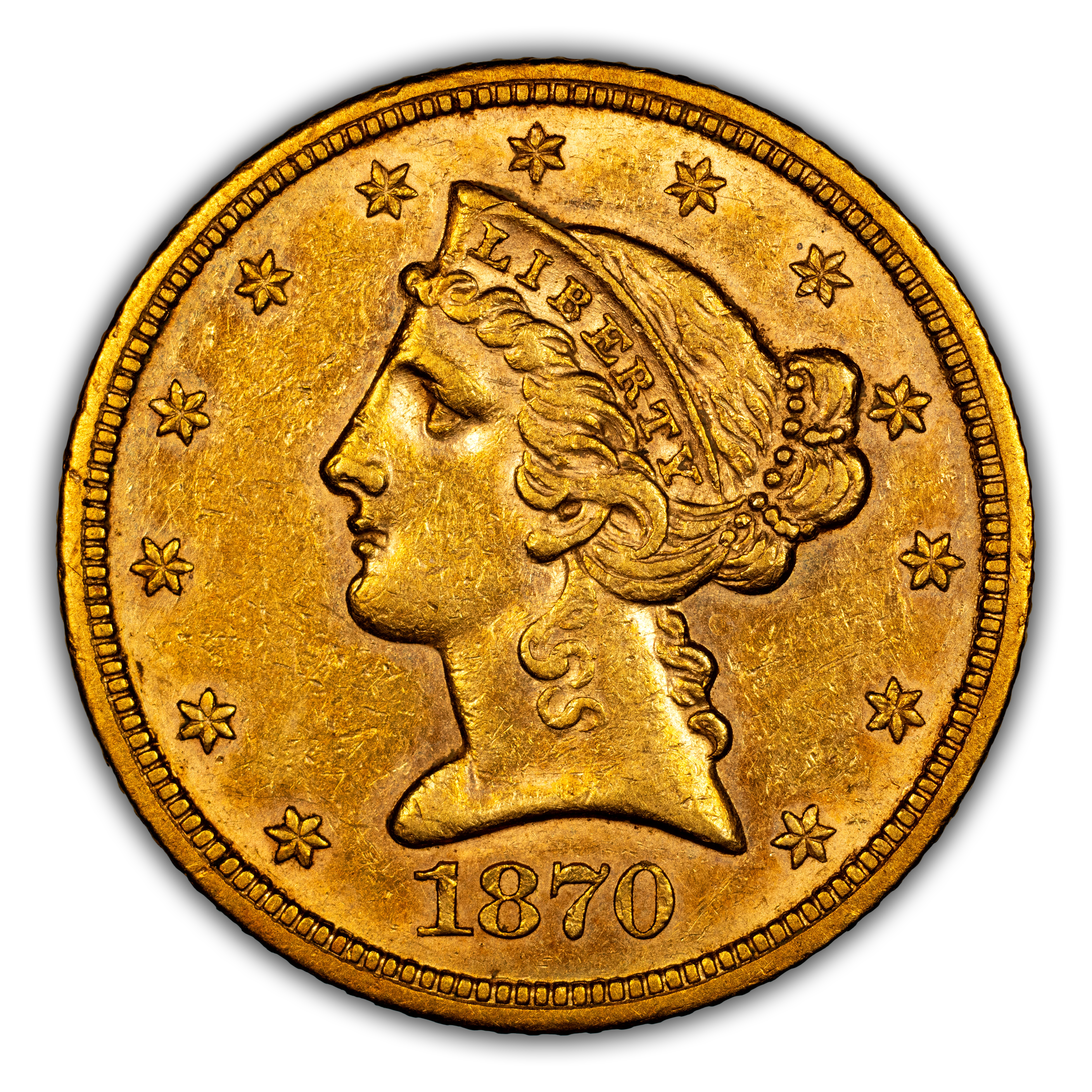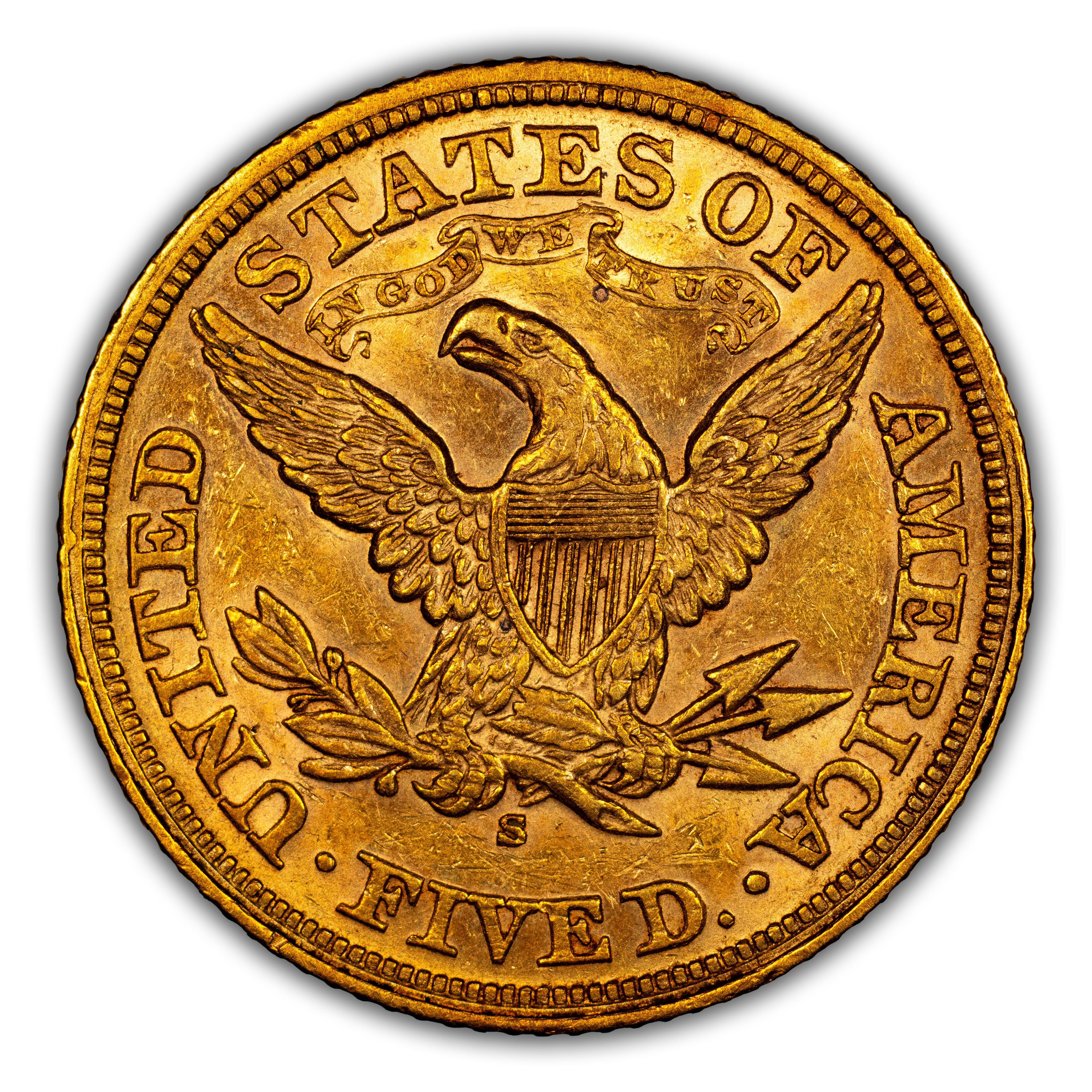 Reverse: Heraldic eagle holding arrows and branch in its claws is centered in the design with the words UNITED STATES OF AMERICA * FIVE D. around the periphery. Mintmark (if any) is located under the eagle's claws.