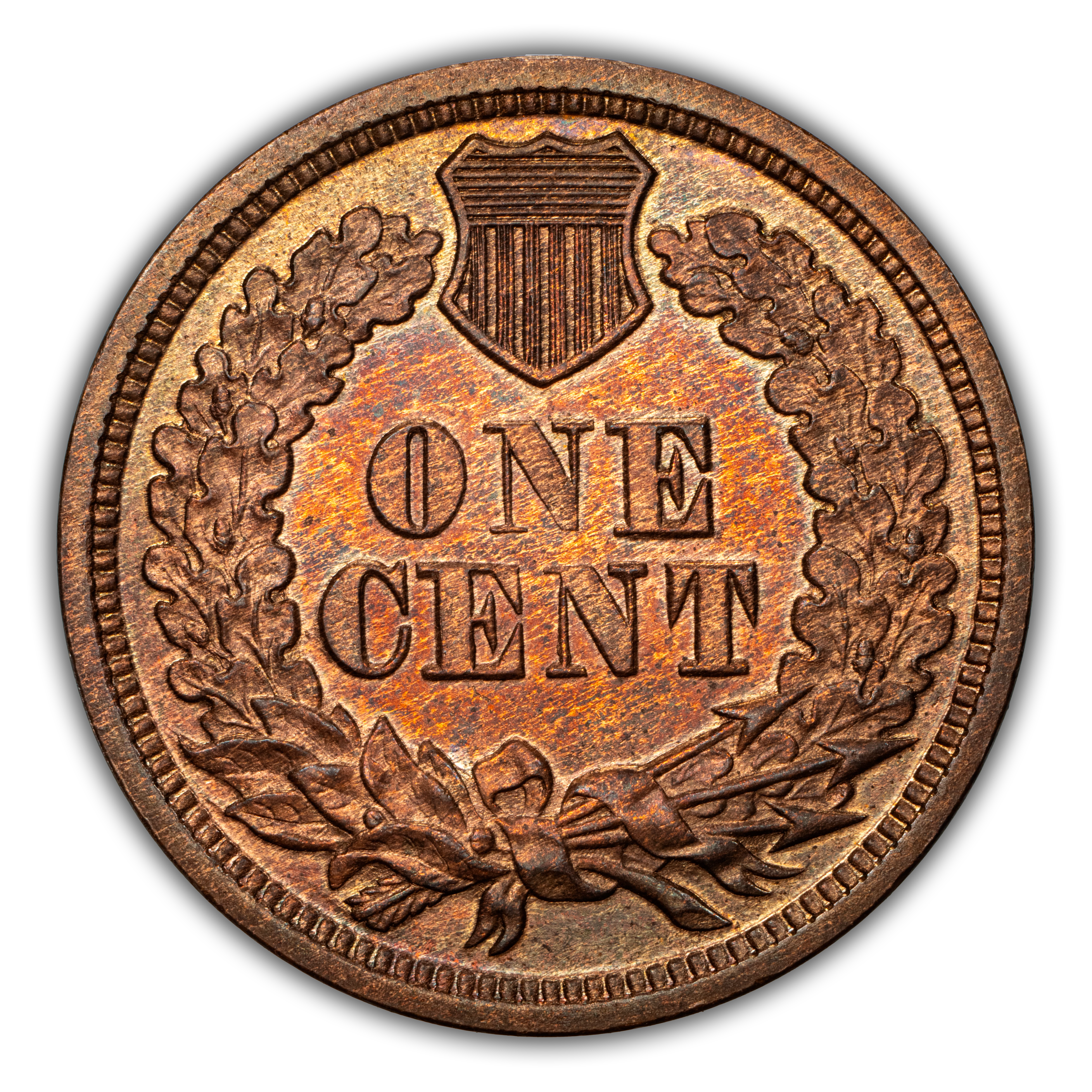 Reverse: The reverse bears the denomination of ONE CENT in the center surrounded by a wreath bearing a ribbon with arrows tied in at the bottom center.