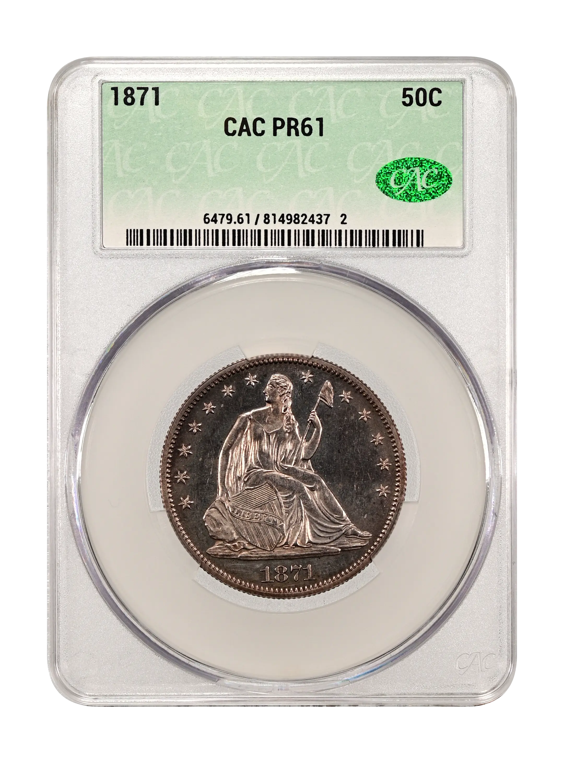 1871 Liberty Seated Half Dollar. Proof-65 (PCGS). CAC. OGH--First Generation.
