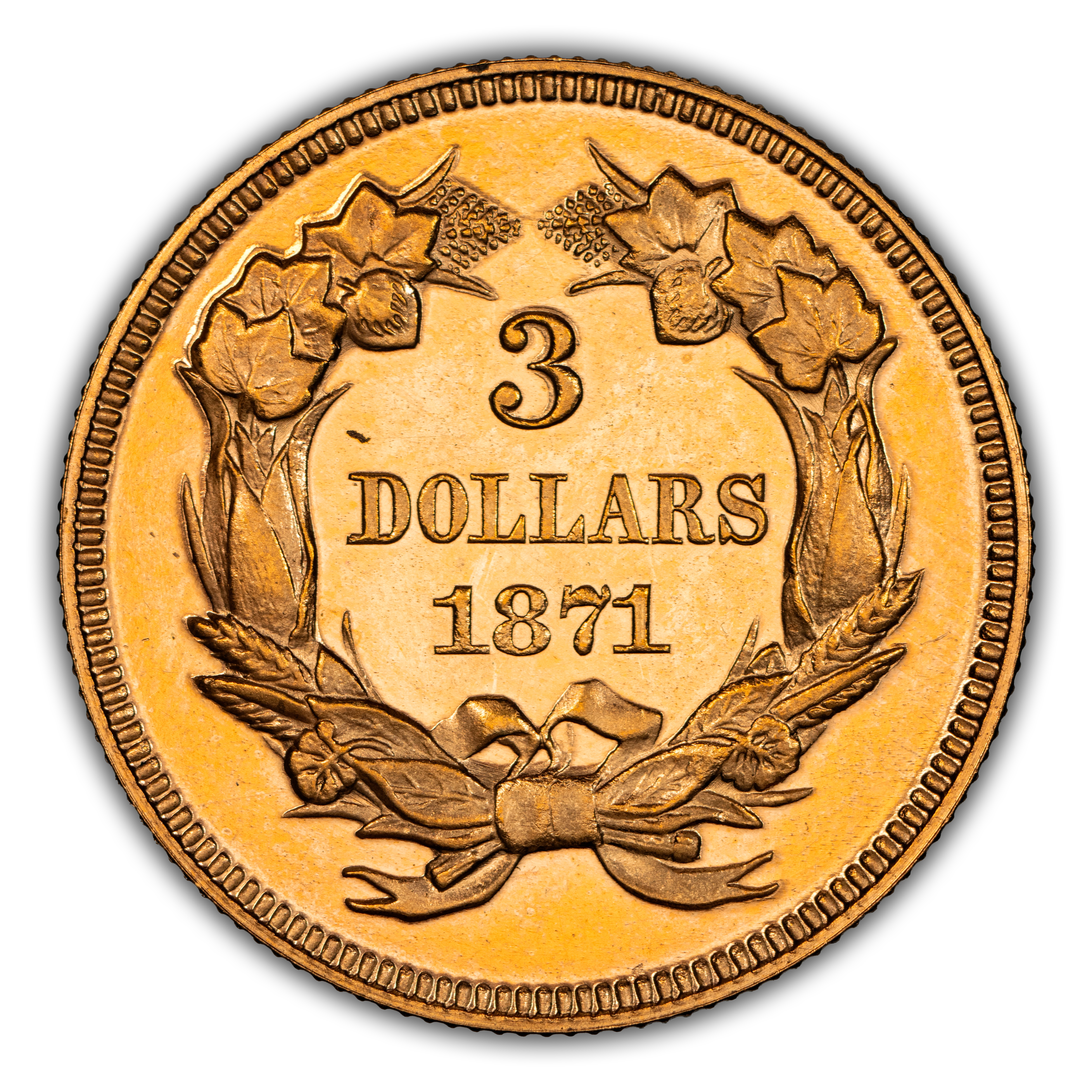 1871 Three-Dollar Gold Piece. JD-1, the only known dies. Rarity-6+. Proof-64 Cameo (PCGS). CAC.