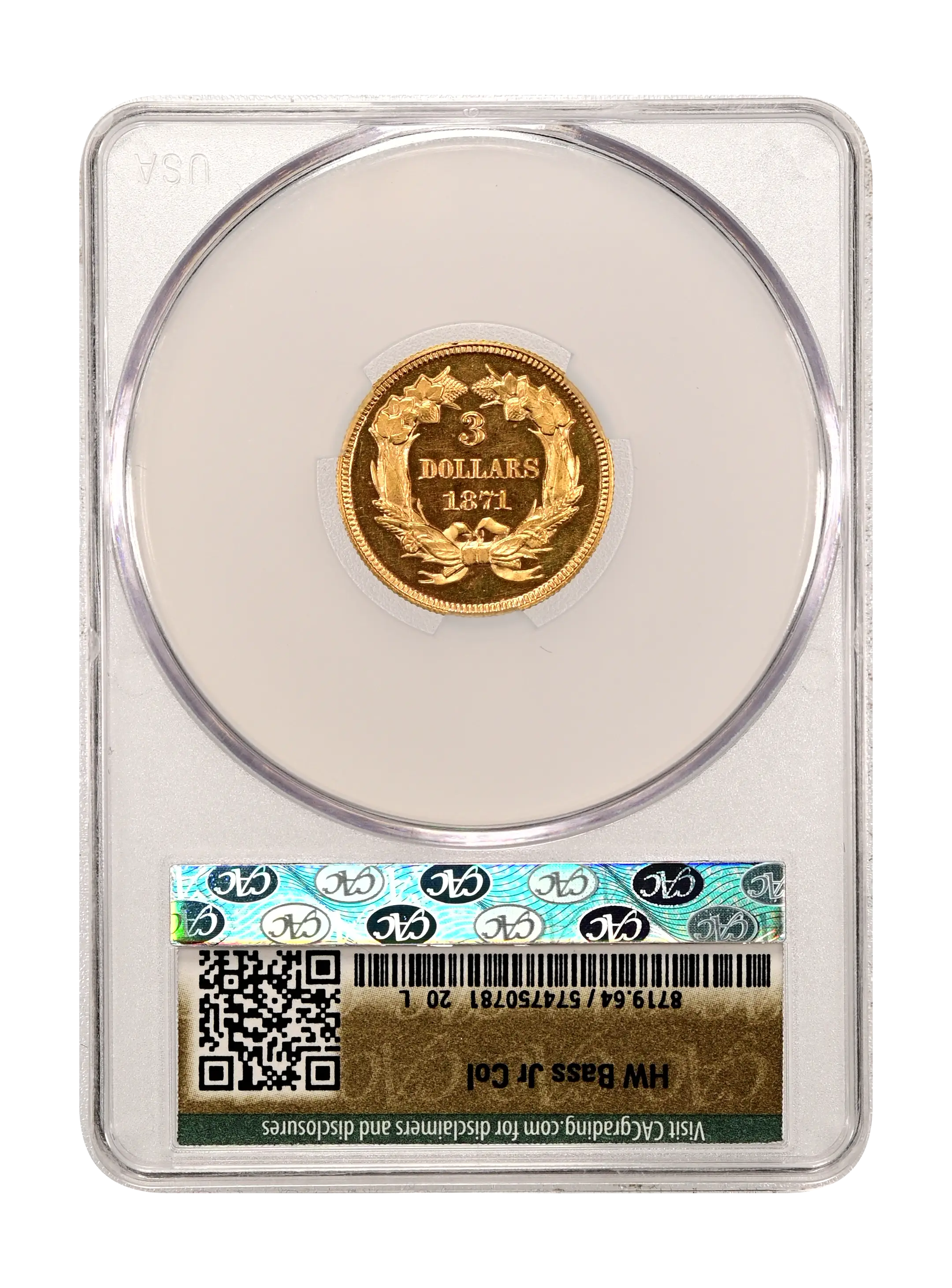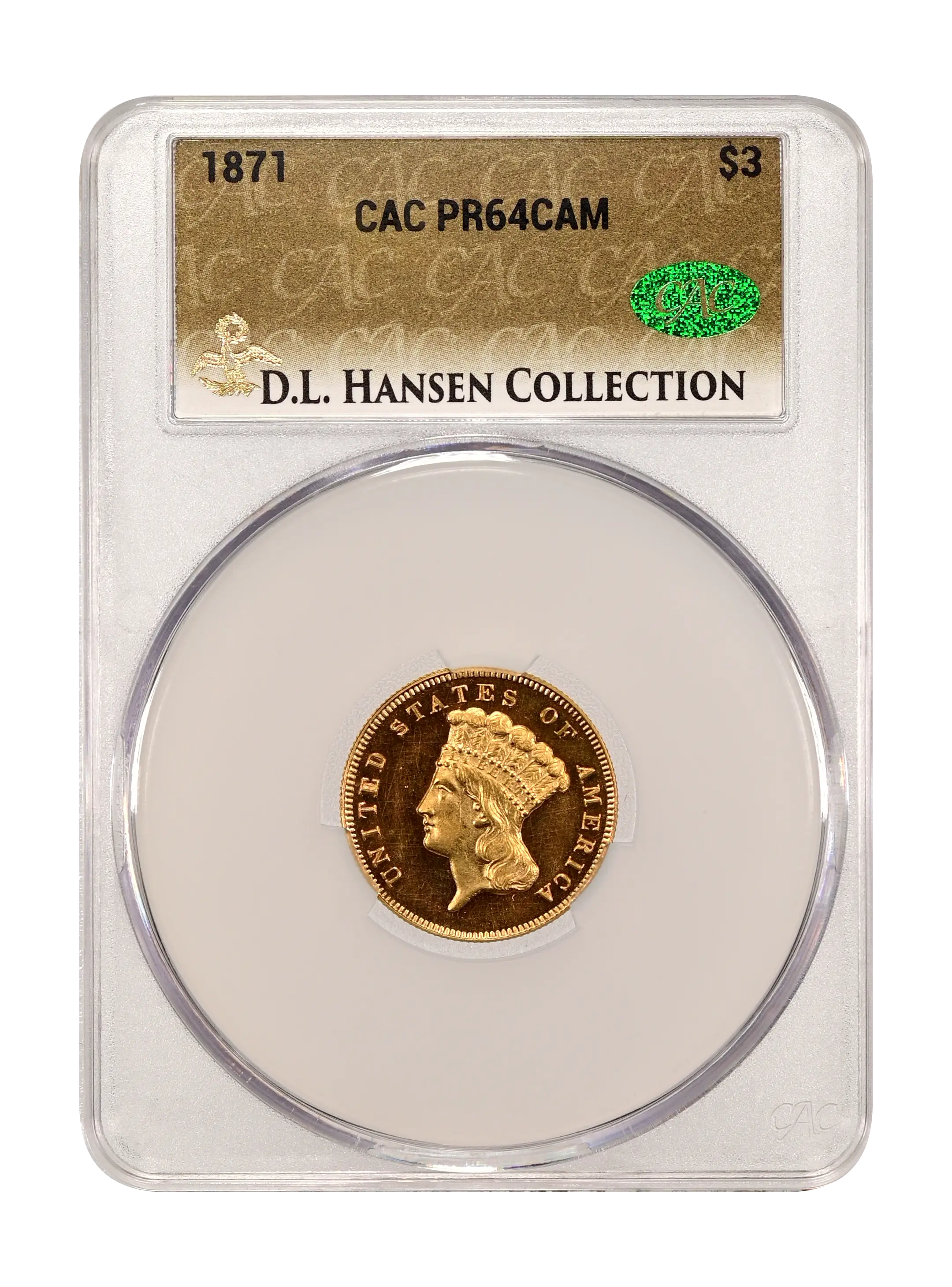1871 $3 CAM (Proof) CAC PR64CAM