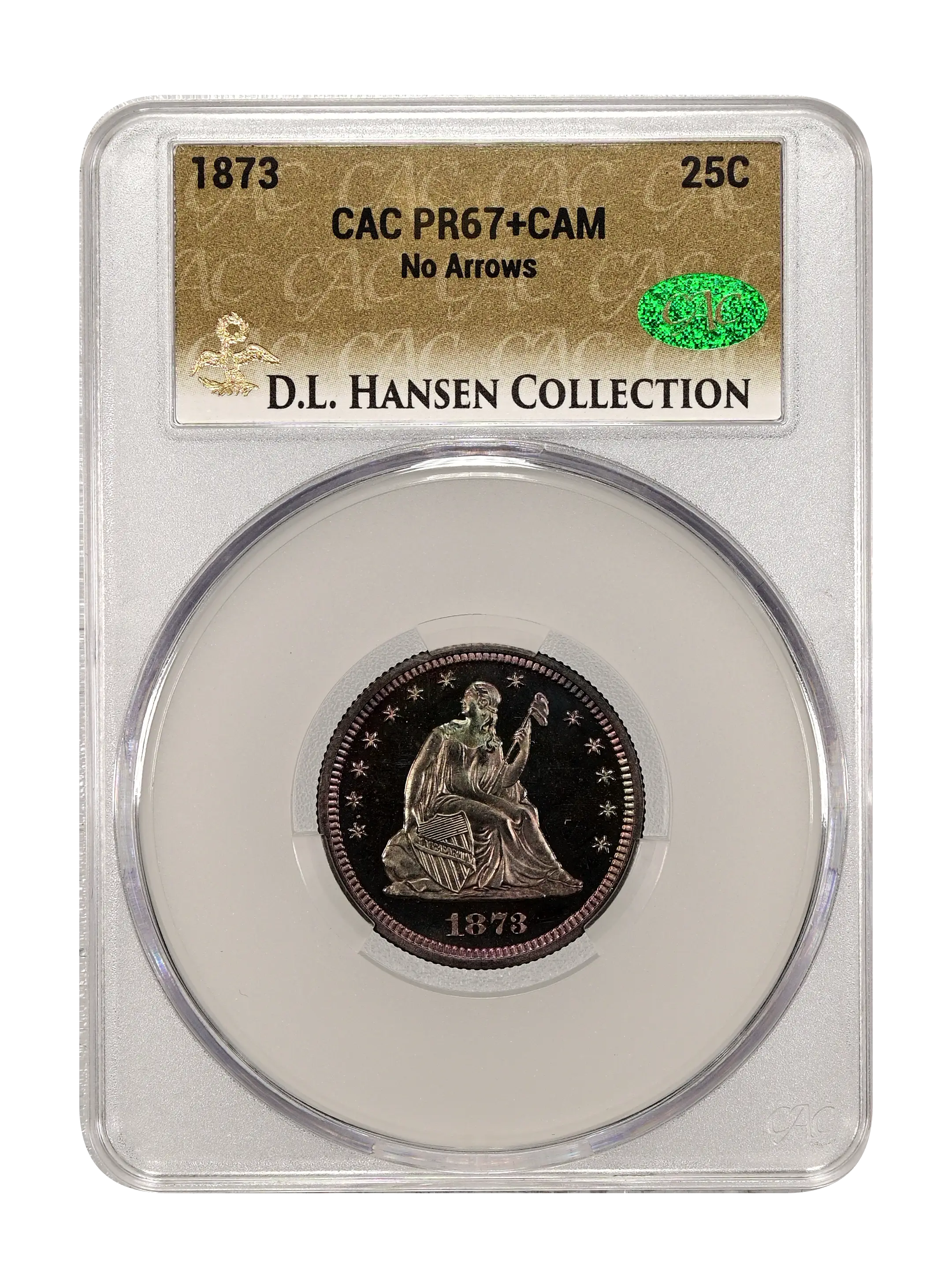 1873 No Arrows 25c CAM (Proof) CAC PR67CAM