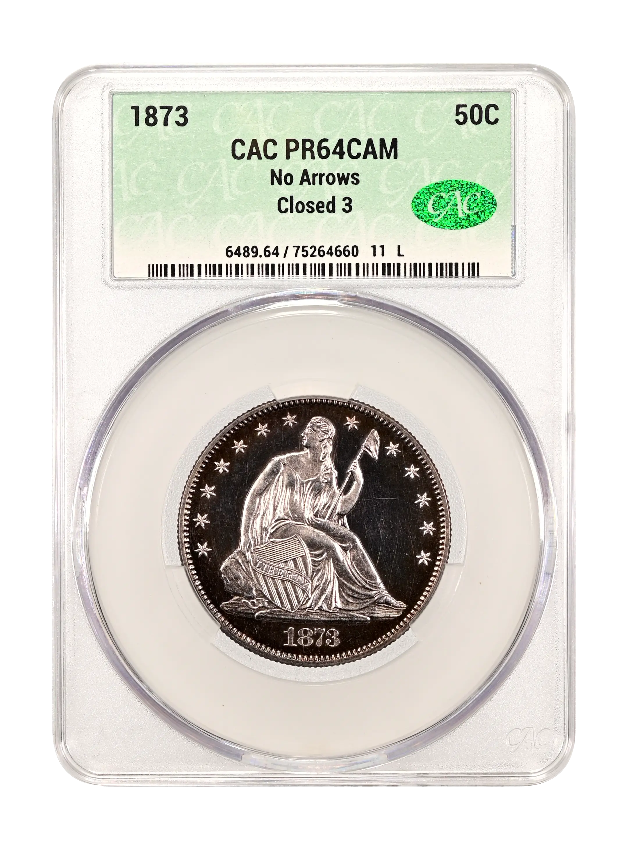 1873 No Arrows 50c Closed 3 CAM (Proof) CAC PR64CAM