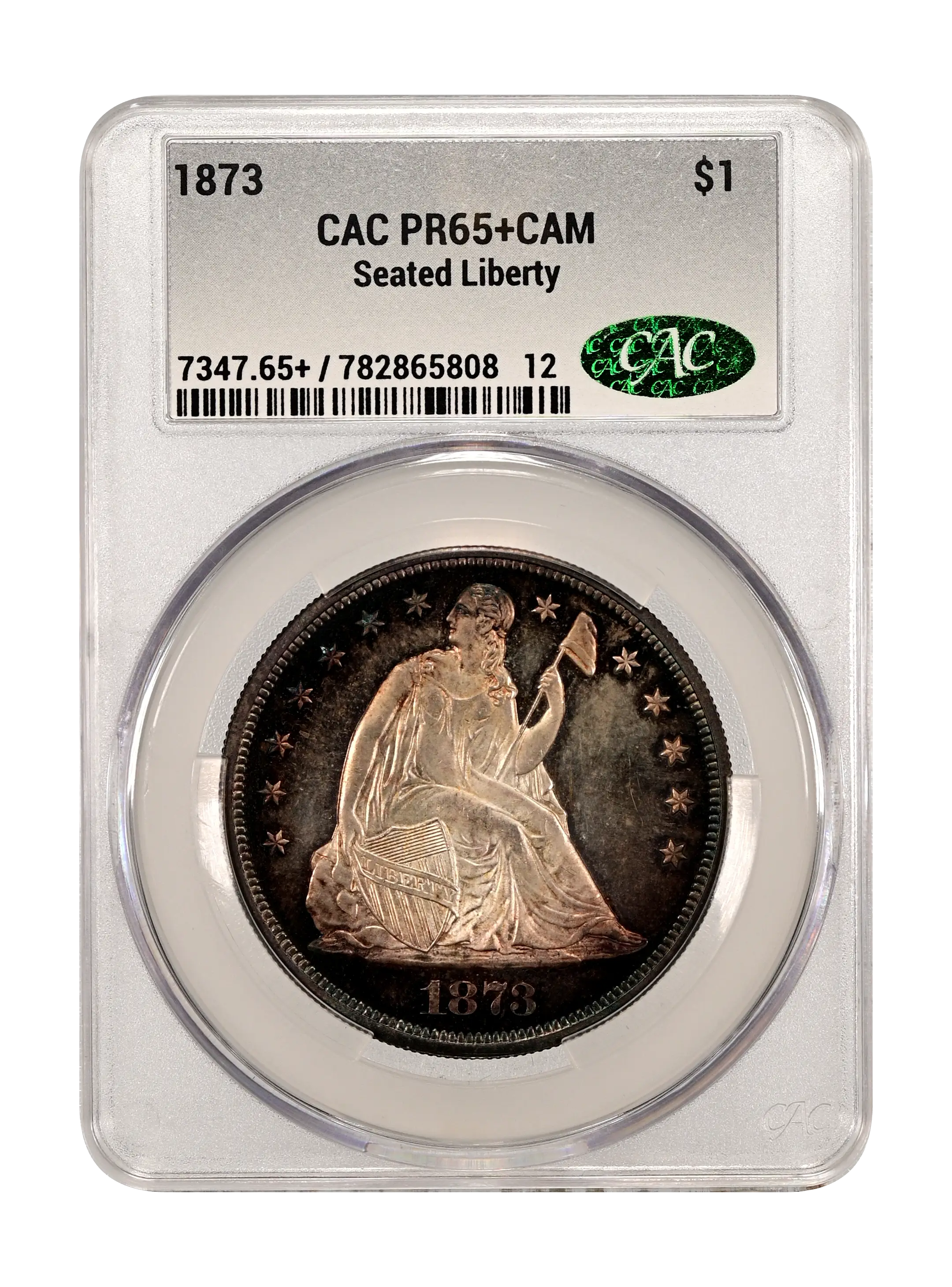 1873 Seated Liberty $1 CAM (Proof) CAC PR65+CAM