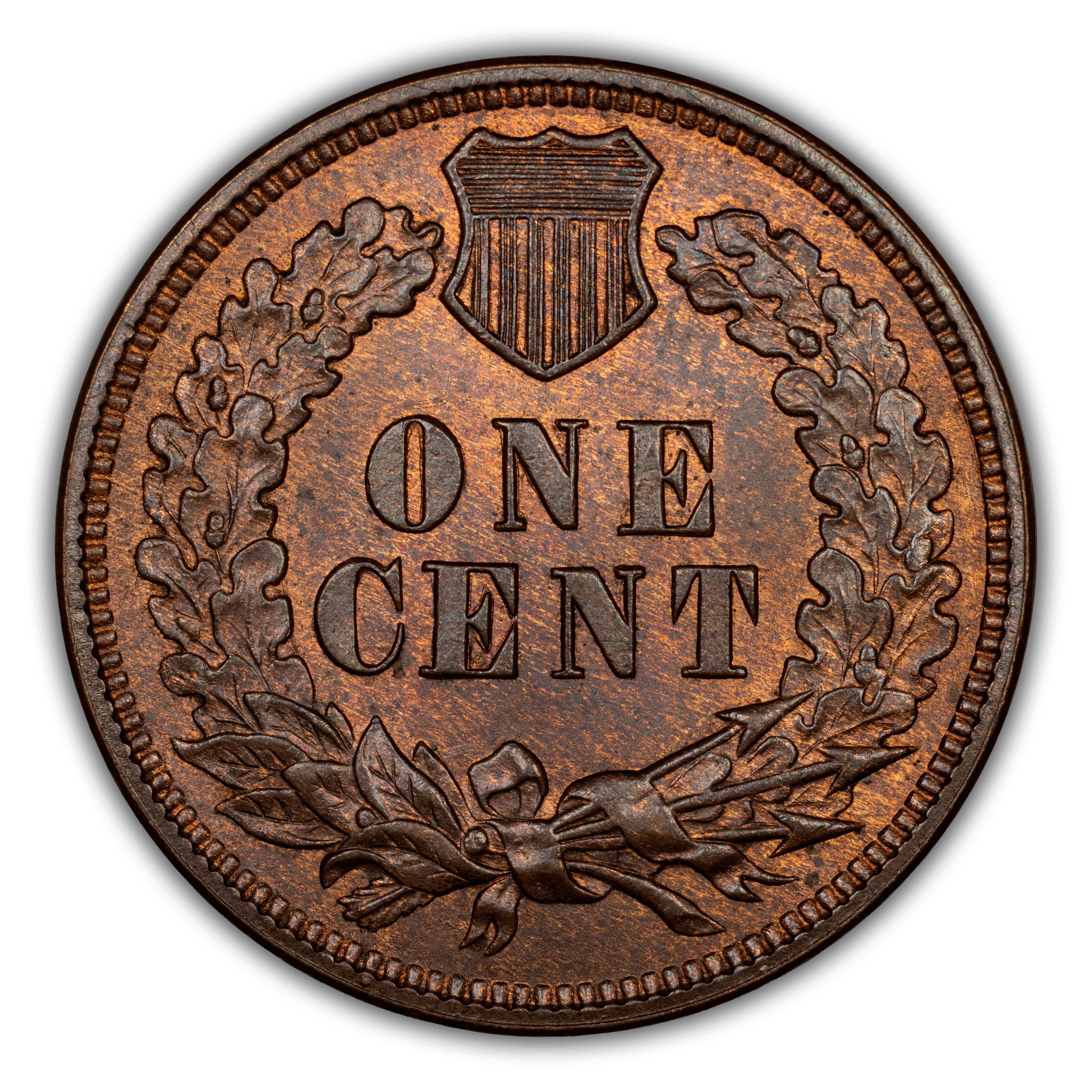 Reverse: The reverse bears the denomination of ONE CENT in the center surrounded by a wreath bearing a ribbon with arrows tied in at the bottom center.