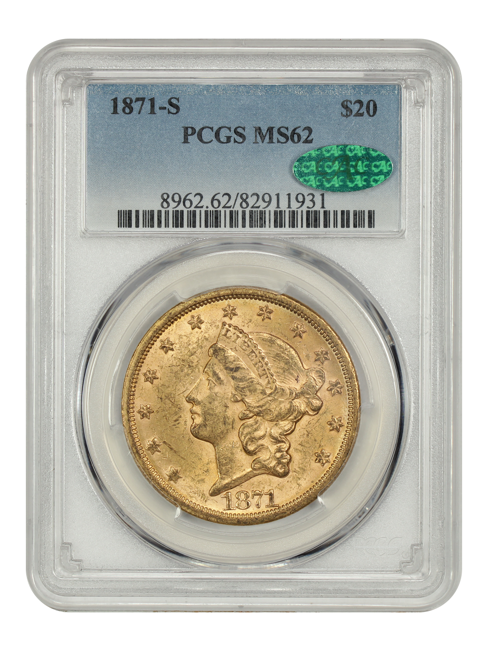 1873 Open 3 $20 CAC MS62