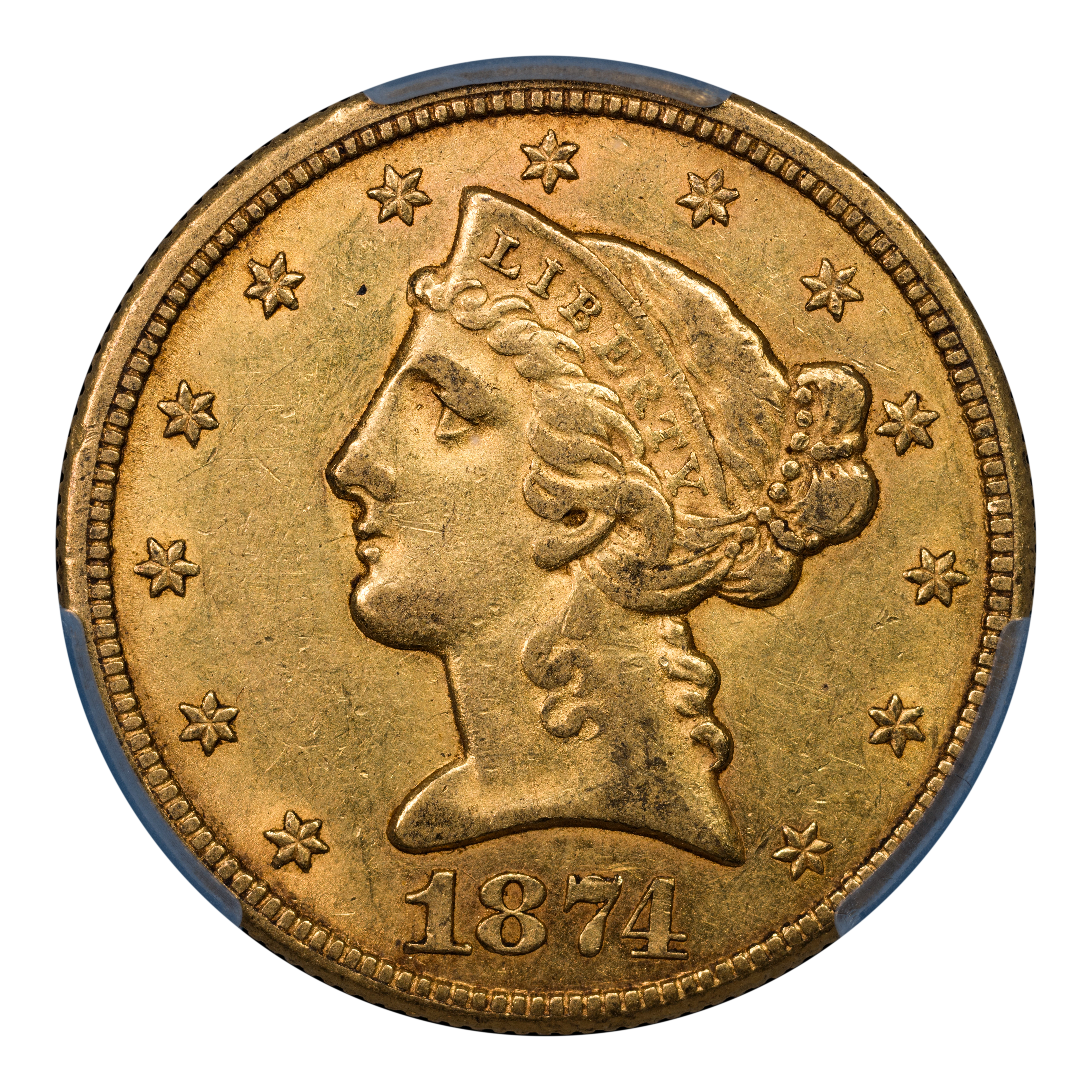 1874-CC $5 PCGS AU55