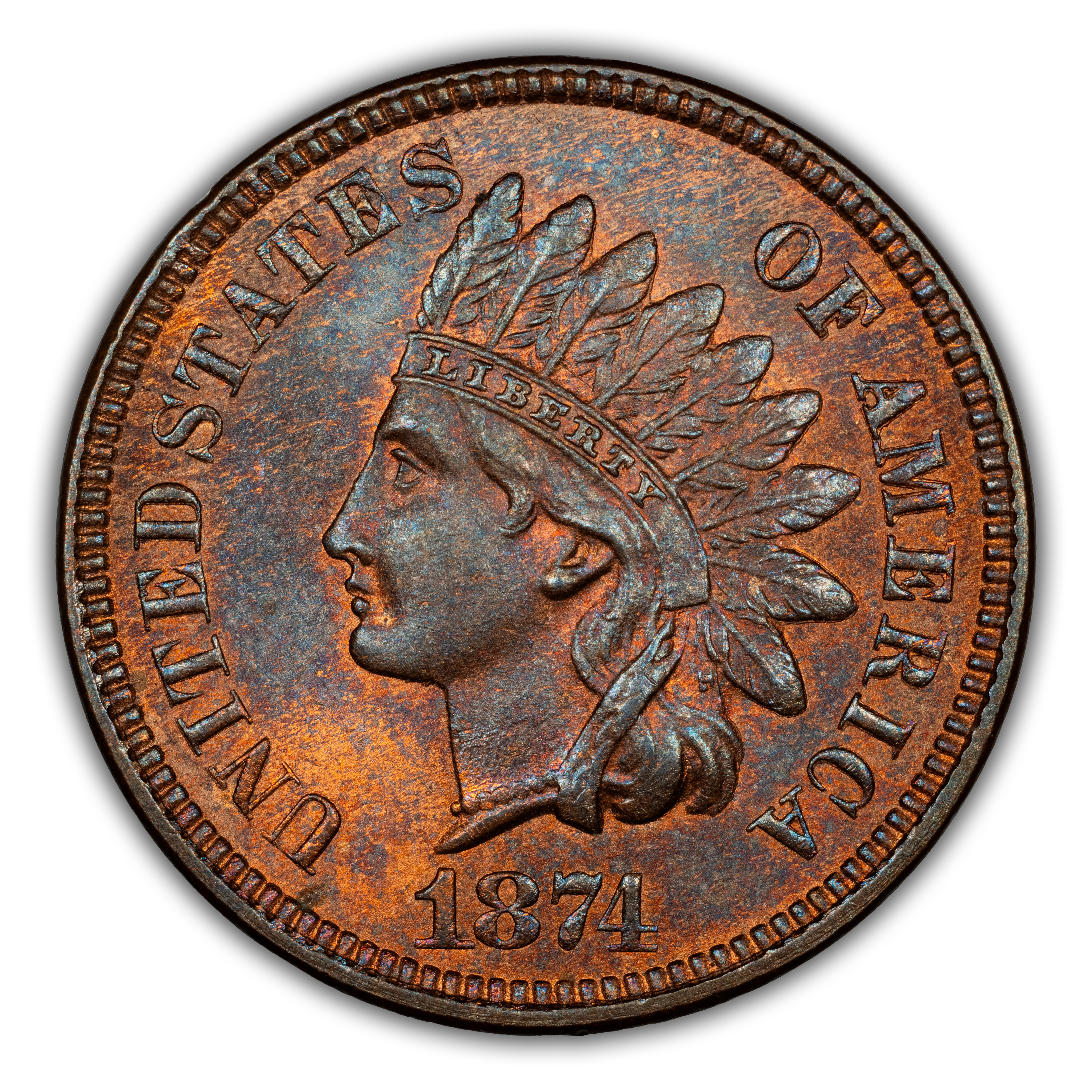 A near semi-key date in the Indian Cent Series in which very few have been saved, explains the scarcity of the 1874. Most of the surviving examples are known in circulated grades. Scarce in Mint State as the value gradually increases with more red color. High-end red gems are extremely rare.