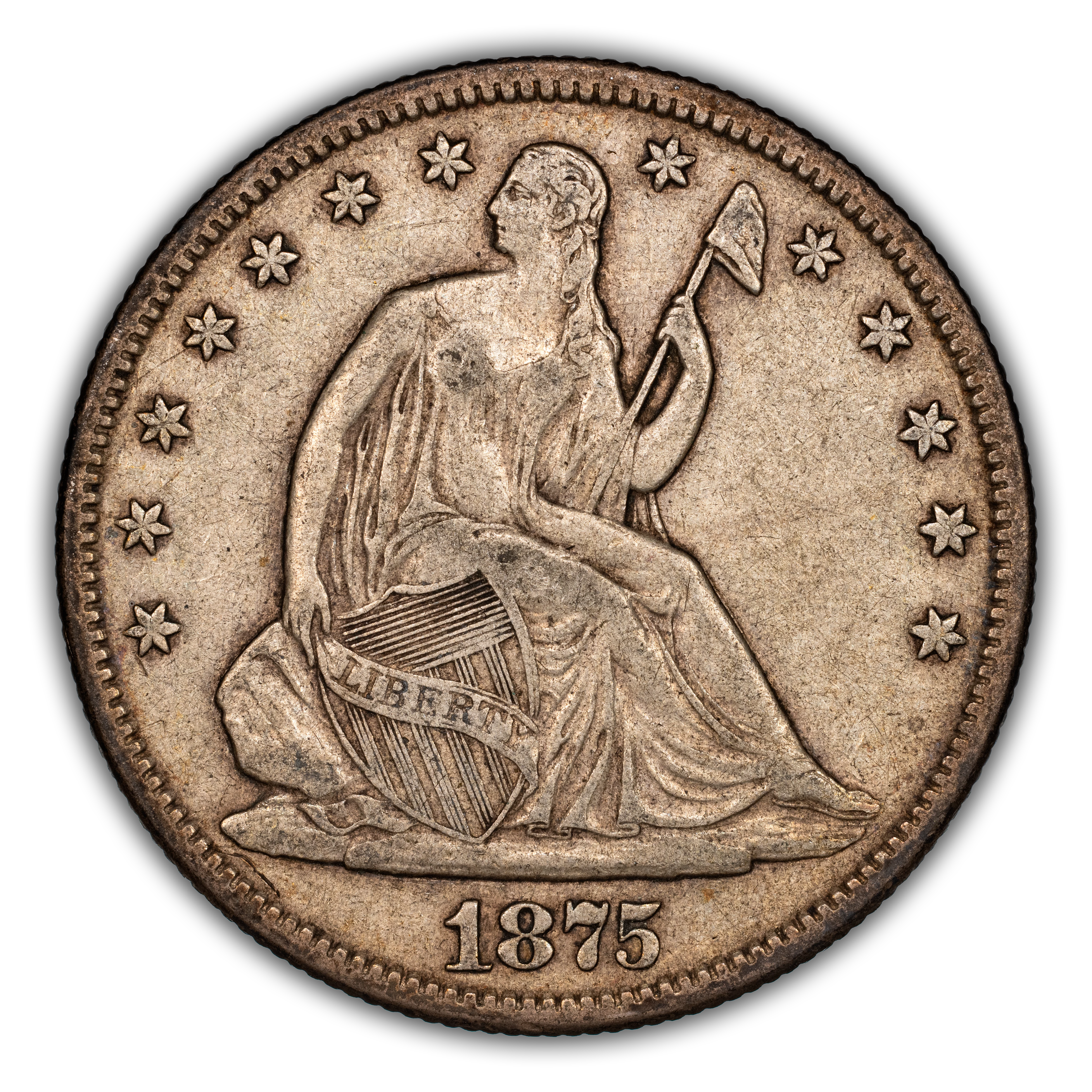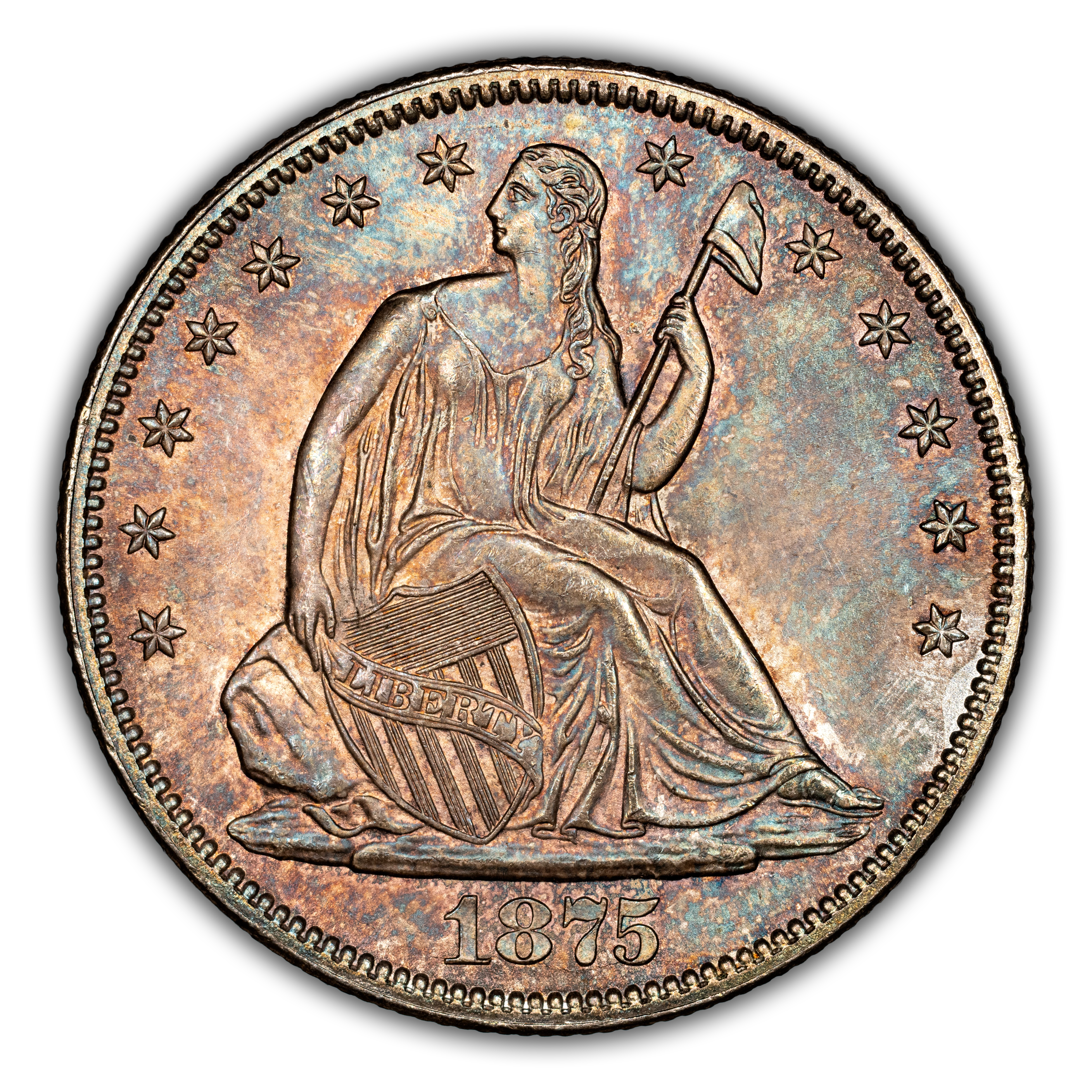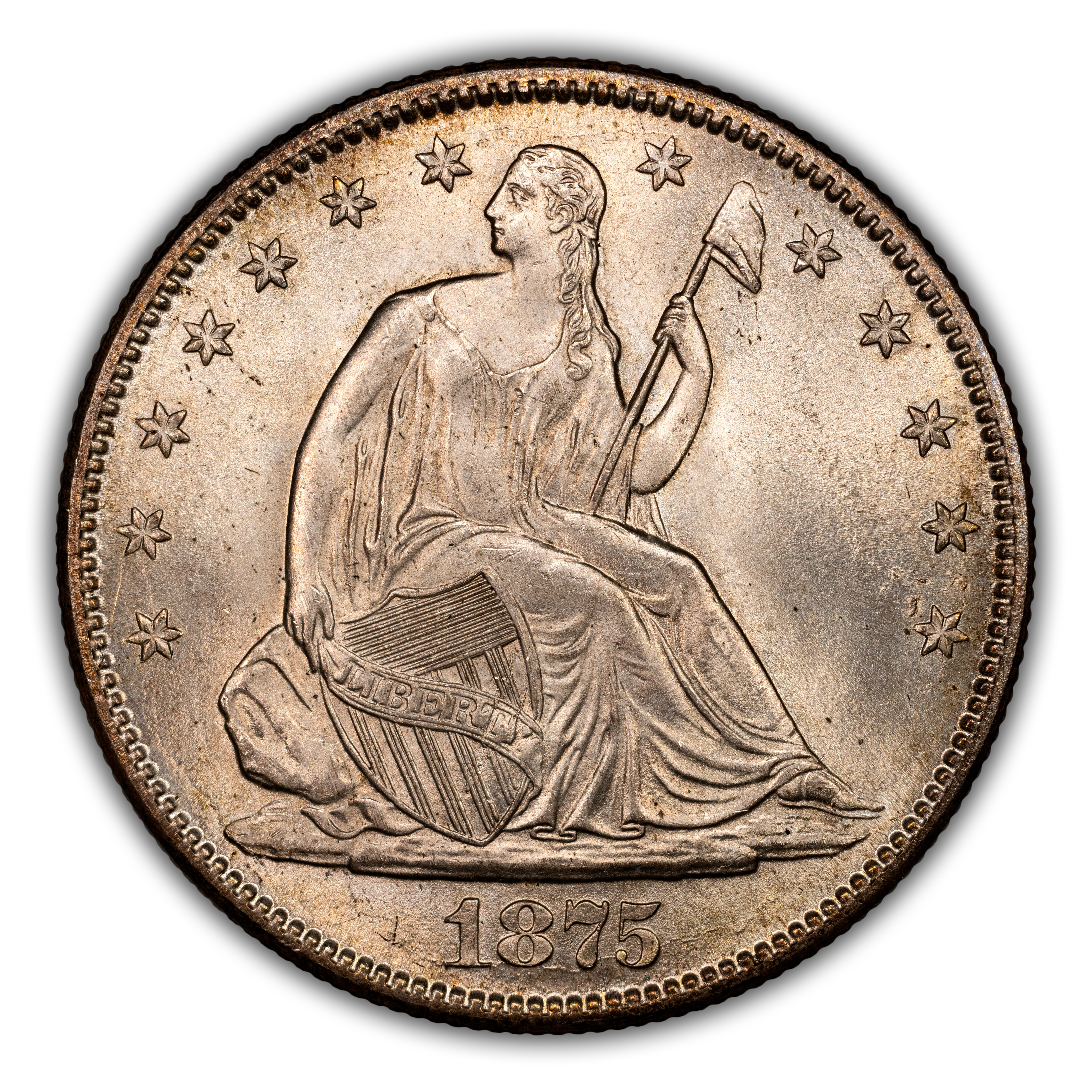 1875-S 50C AU58 PCGS. CAC. PCGS Population: (43/279 and 1/11+). NGC Census: (32/181 and 0/4+). CDN: $275 Whsle. Bid for NGC...