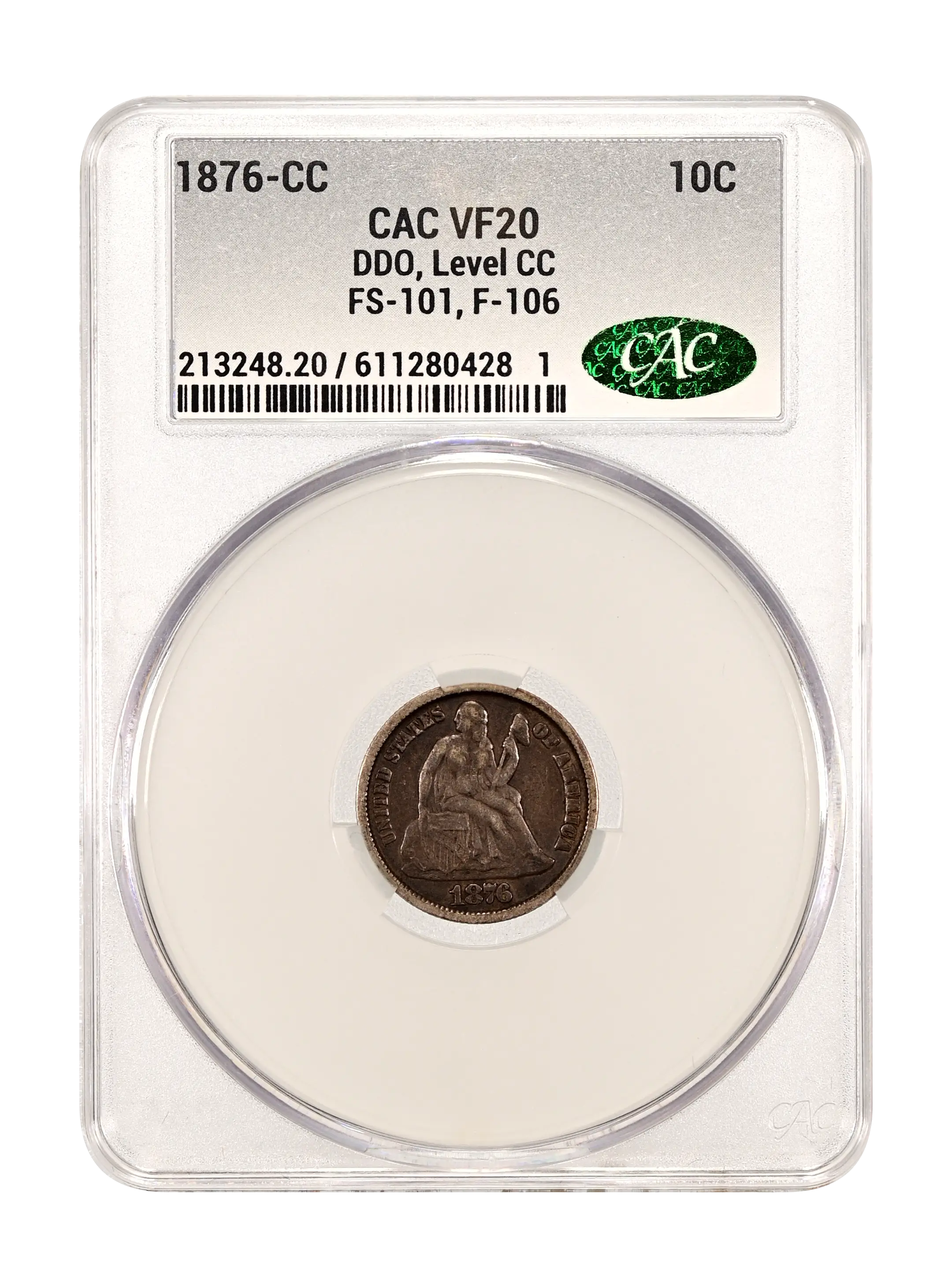 1876-CC DDO, Level CC 10c FS-101, F-106 CAC VF20