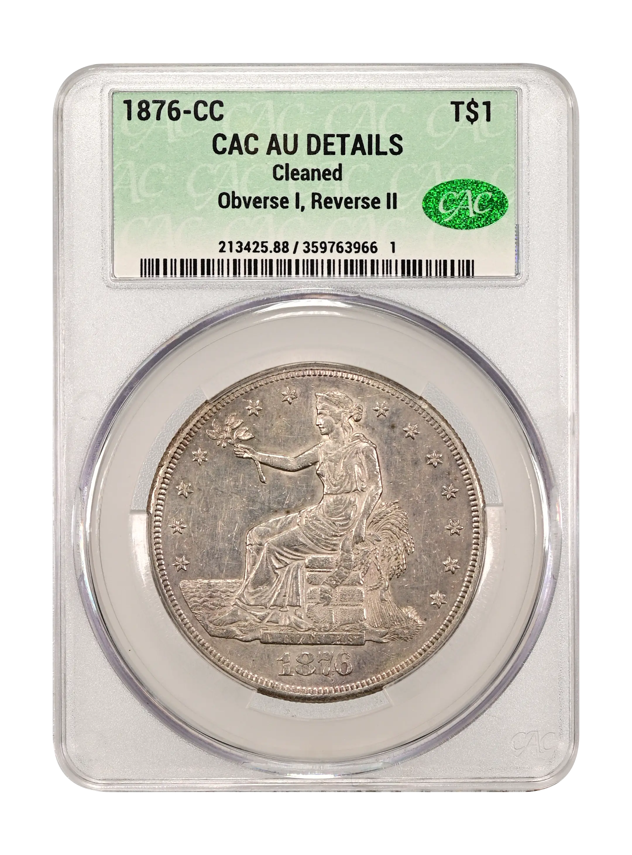 1876-CC Obverse I, Reverse II T$1 CAC AU DETAILS